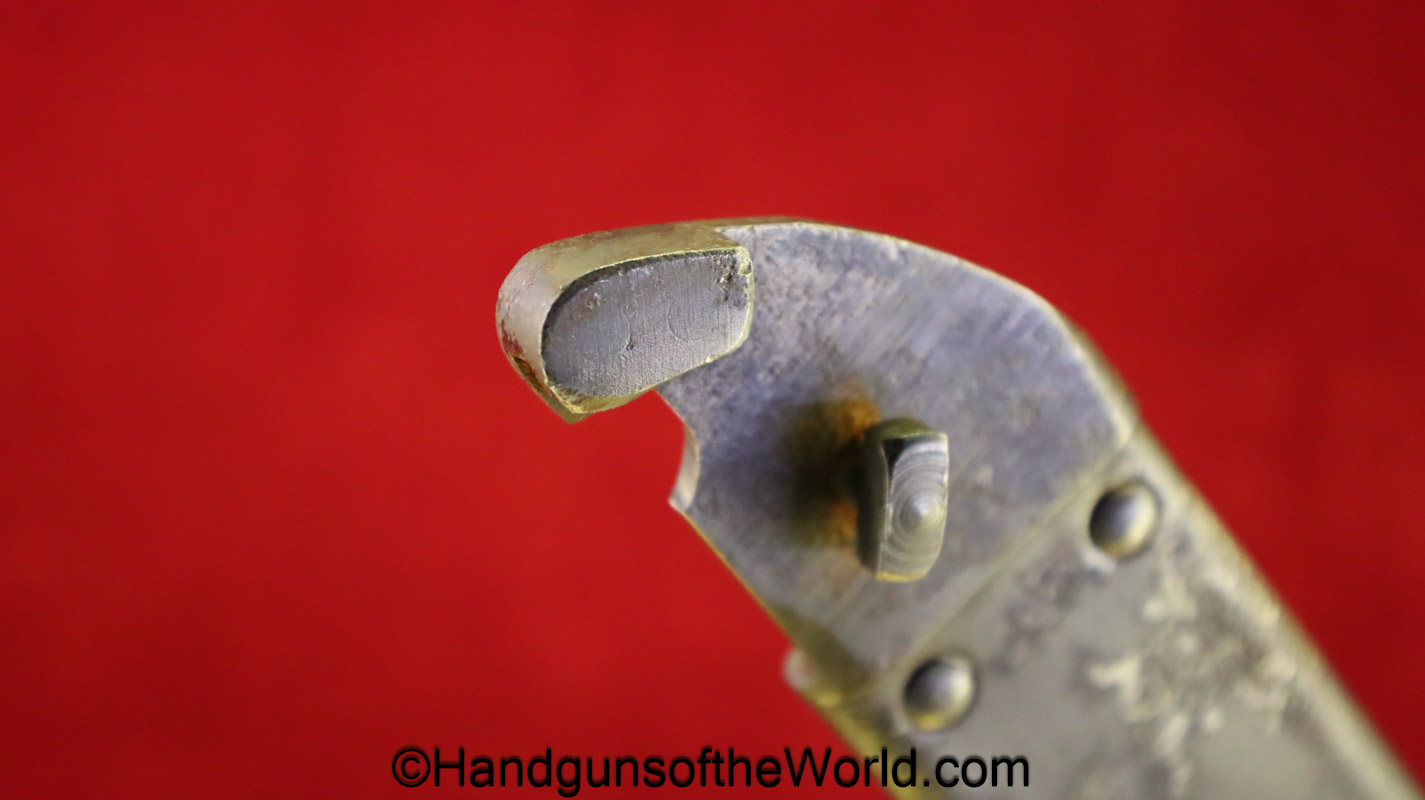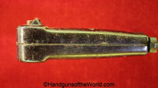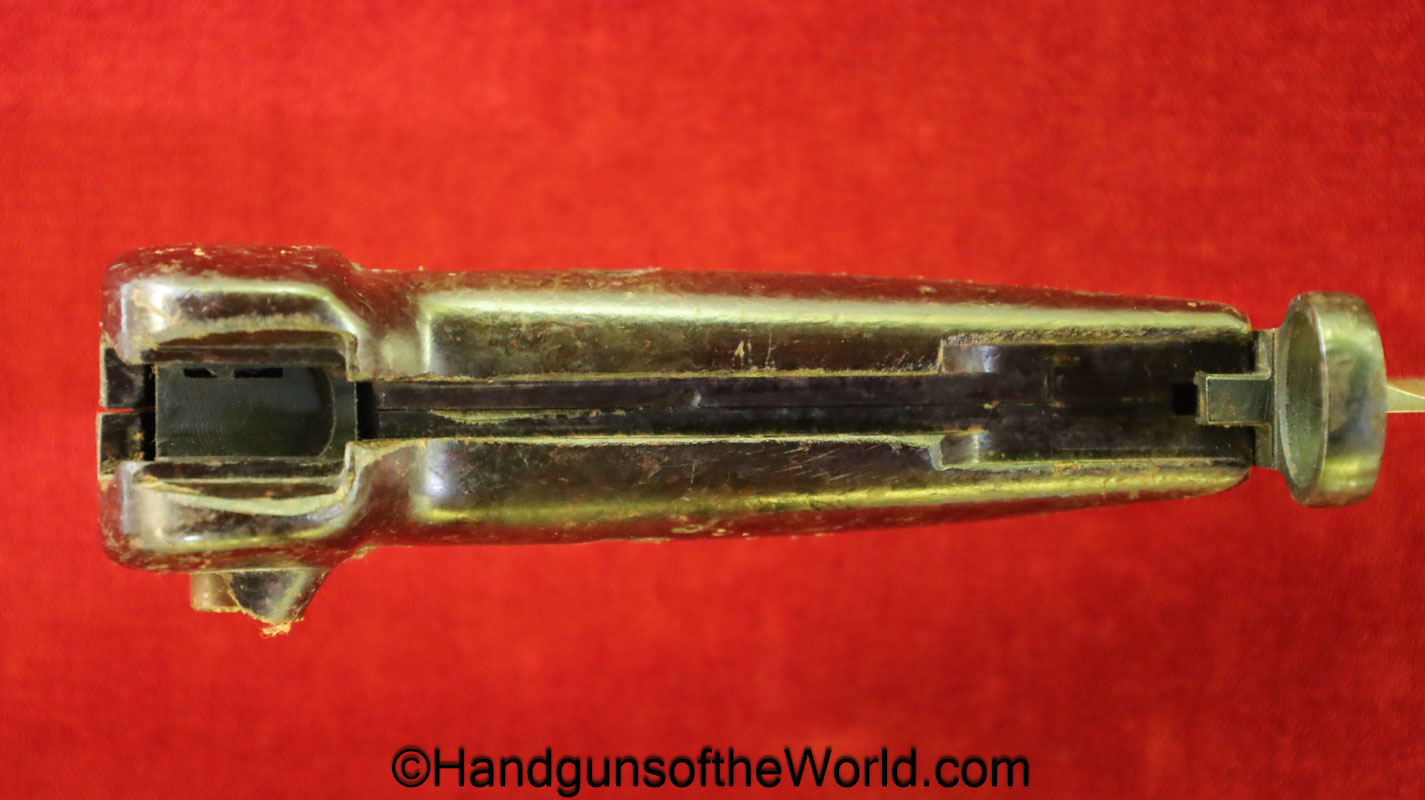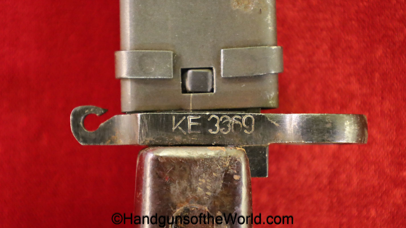 Original AK-47 Bayonet. Romanian contract with a red Bakelite grip. This has a matching scabbard and a nice blade. Overall VG-VG+.