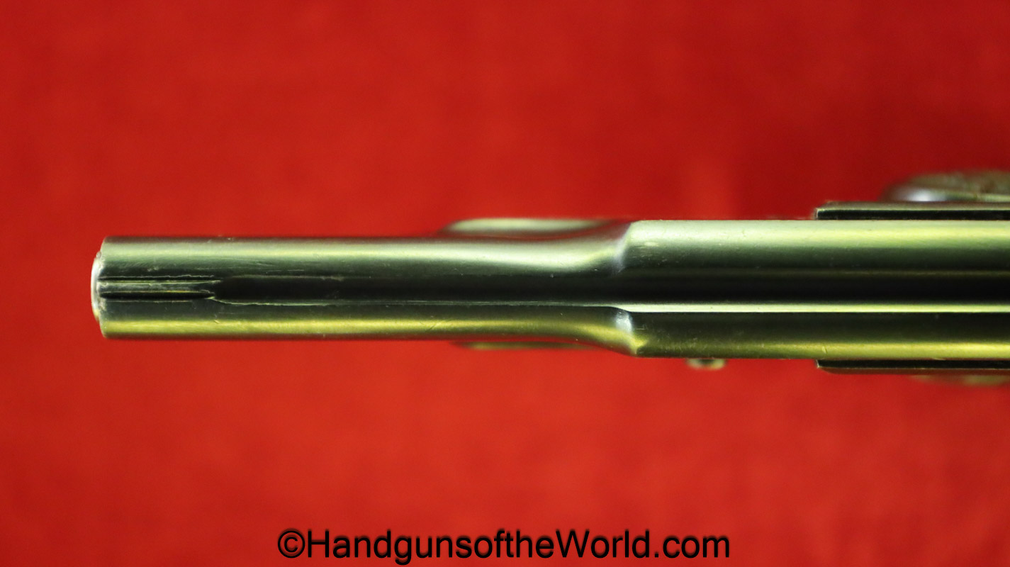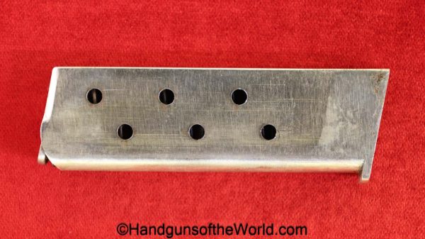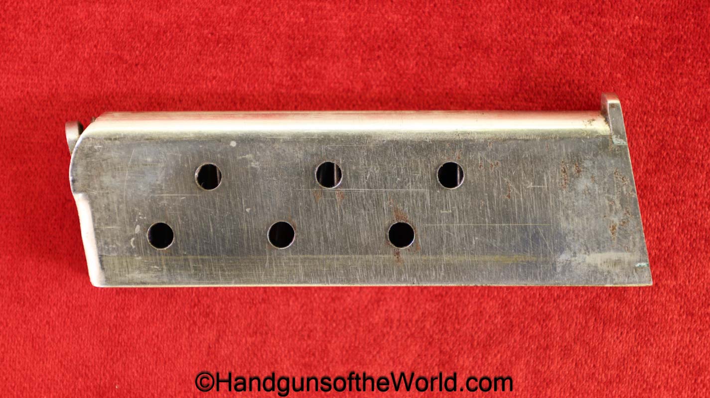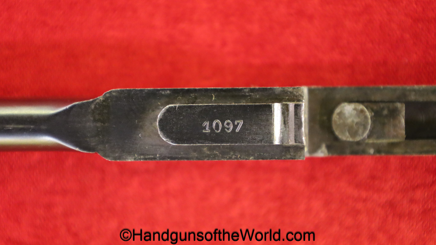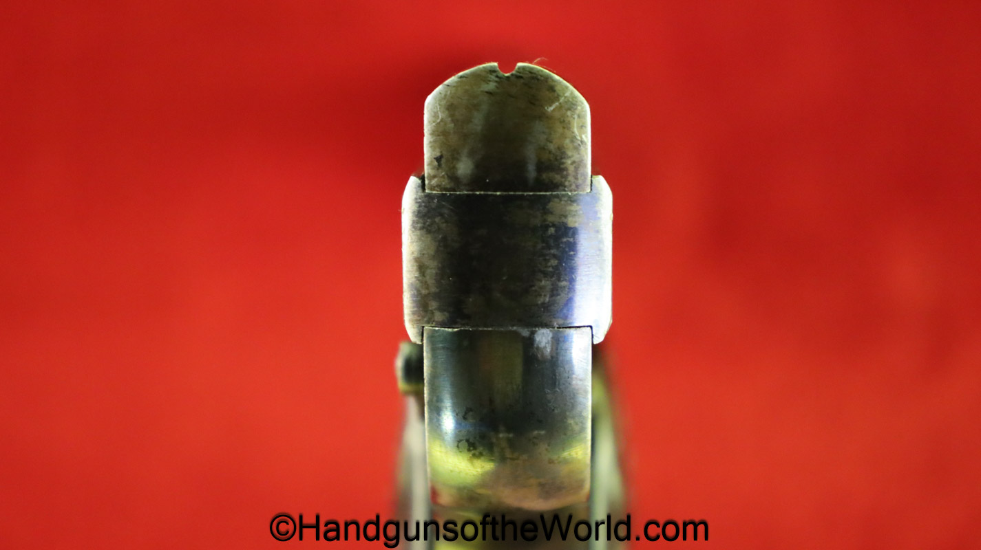 Armand Gavage Pocket, 7.65mm. This is Belgium proofed on the frame, slide and barrel, and has safety markings in French-Surete-Tir. This has the AG logo horn grips. The blue rates about 98% and the bore is VG+.