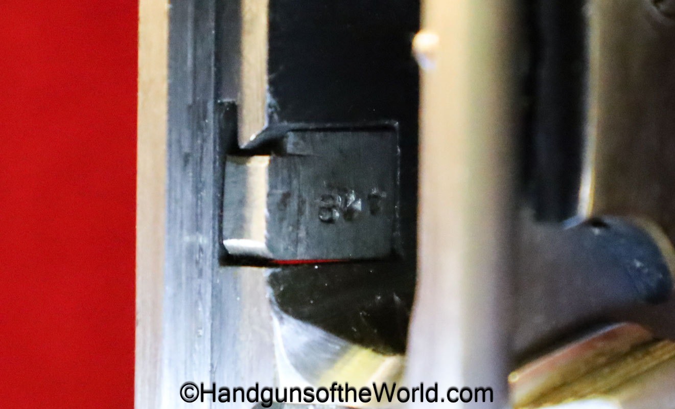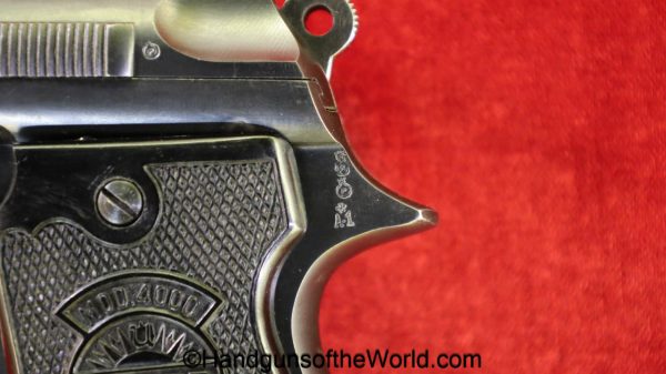 Astra 4000 Falcon 7.65mm. Built in 1979 this has the late plain black plastic grips. This is import marked on the bottom of the trigger guard. This has all matching serial numbers, about 99% blue and the bore is excellent.