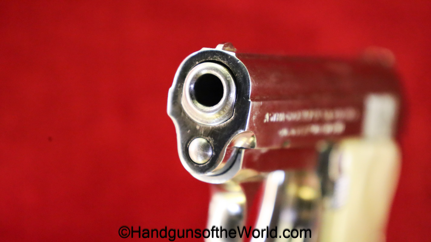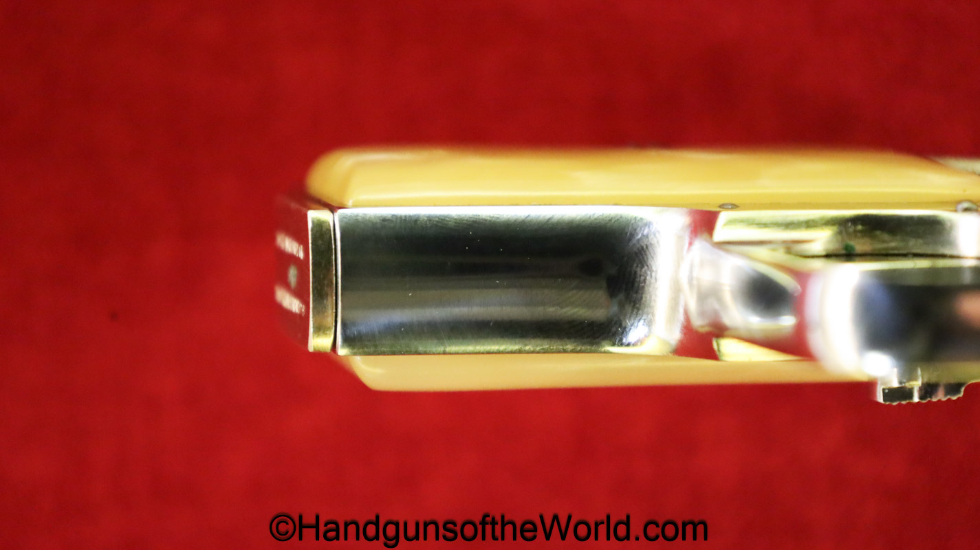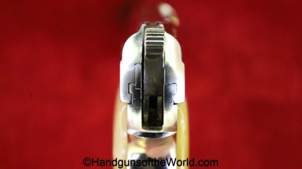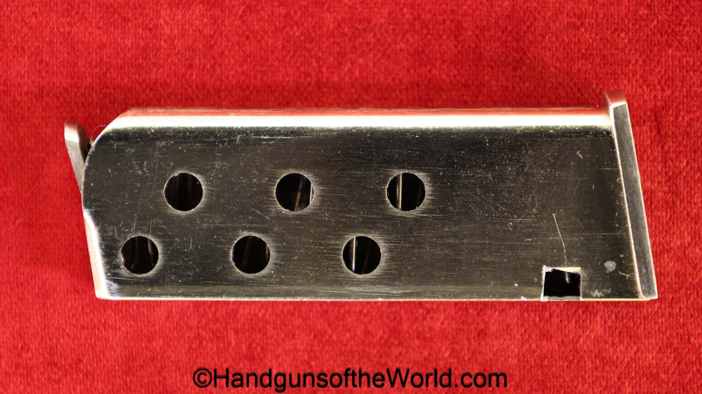 Astra Cub, 6.35mm. This is Spanish proof/dated 1966 under the white pearlite grips. This retains 99% factory nickel finish and the bore is excellent. This comes with an original cardboard box, numbered to a different pistol, with manual.