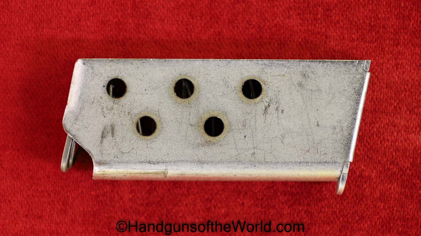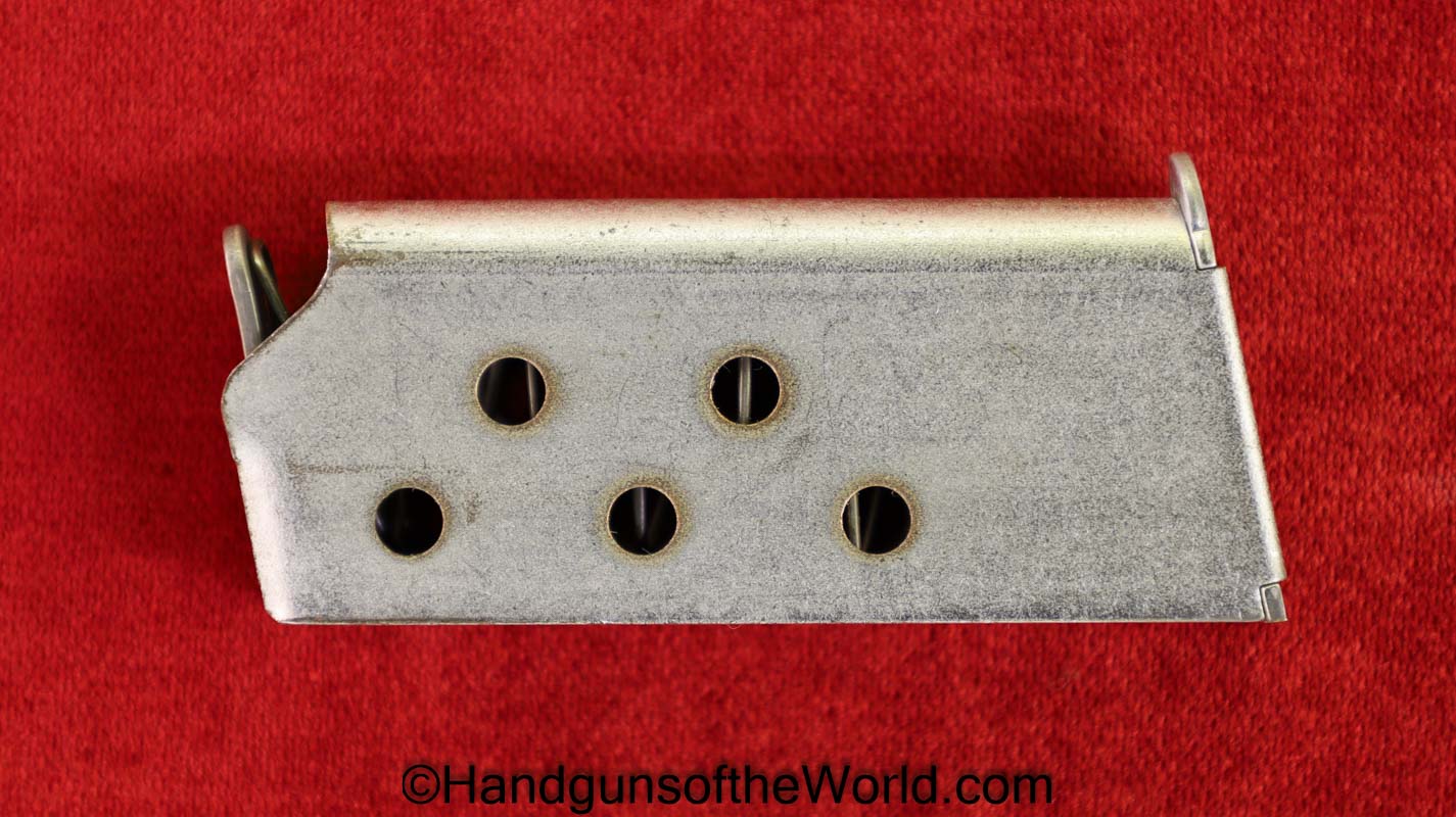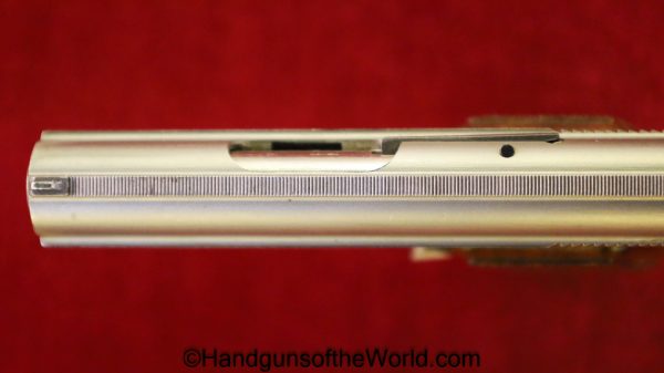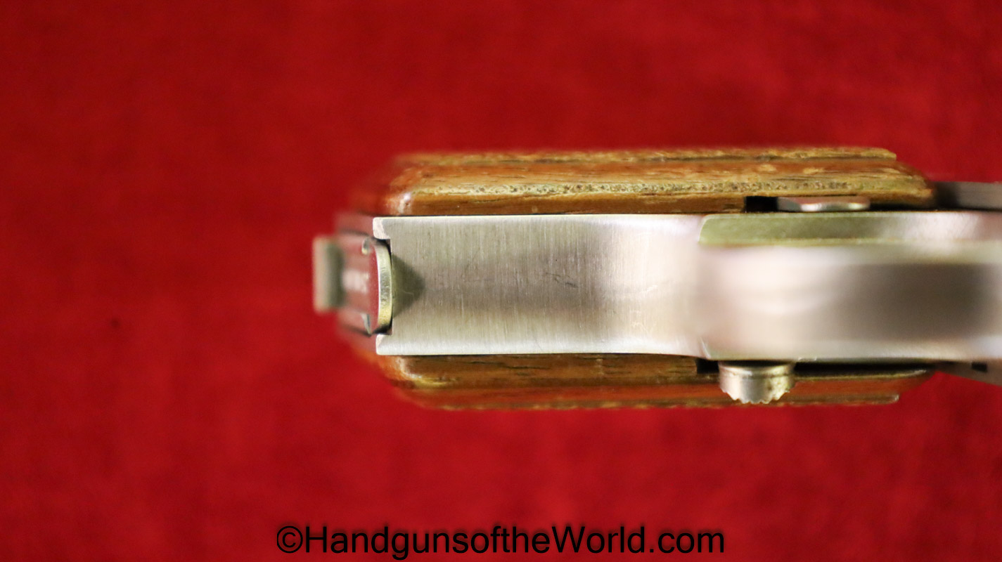 Bauer Firearms Bauer Automatic, .25 caliber. This is full stainless with checkered walnut grips. This is excellent overall and is in an original box numbered to a different pistol, and the manual is included.