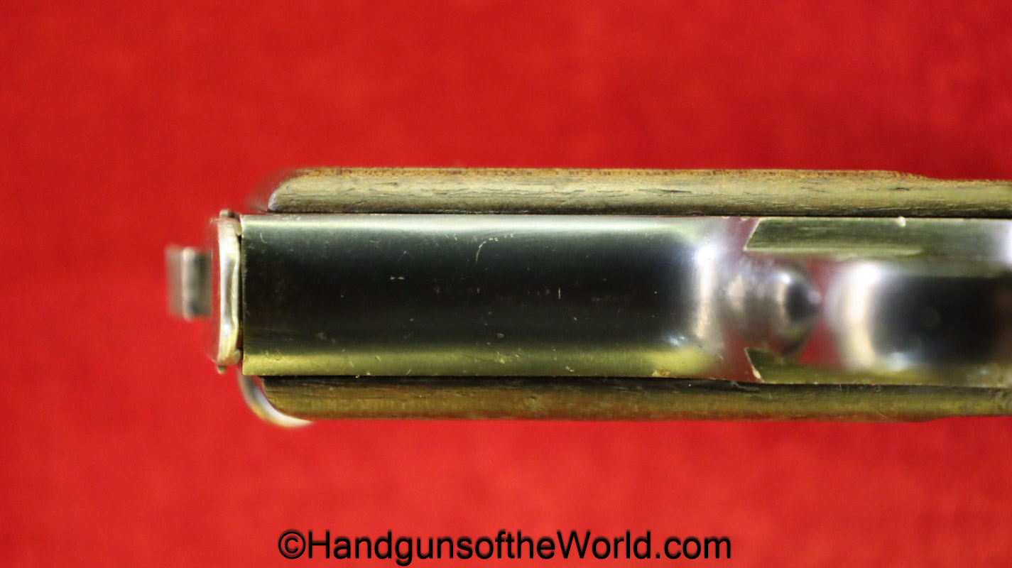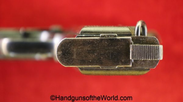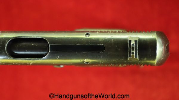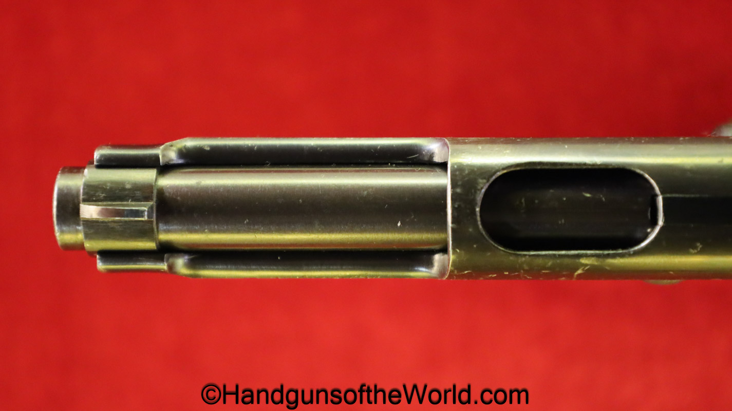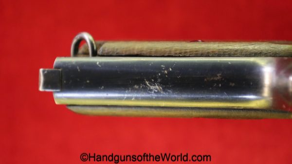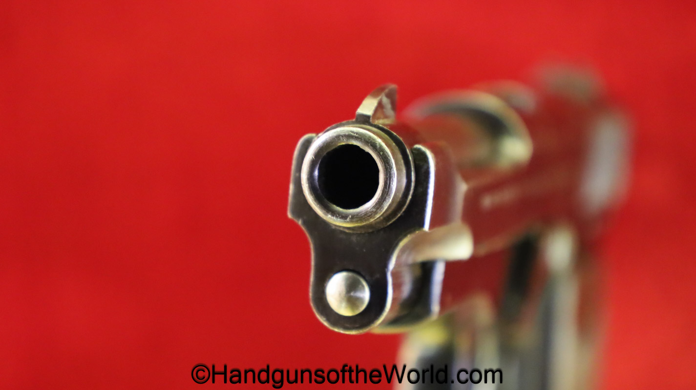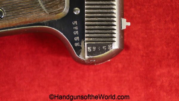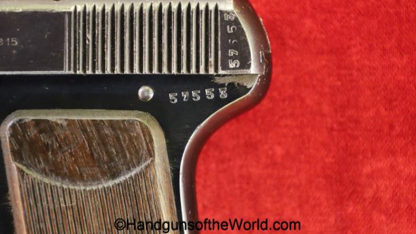 Beretta 1915, 7.65mm. This has the early lined walnut grips with PB logo at the top. This has all matching numbers and is un-proofed. The blue rates a strong 98% and the bore is excellent.