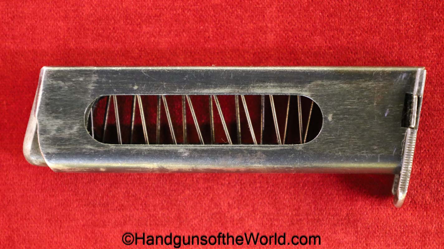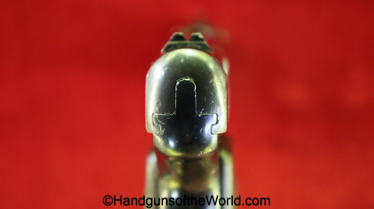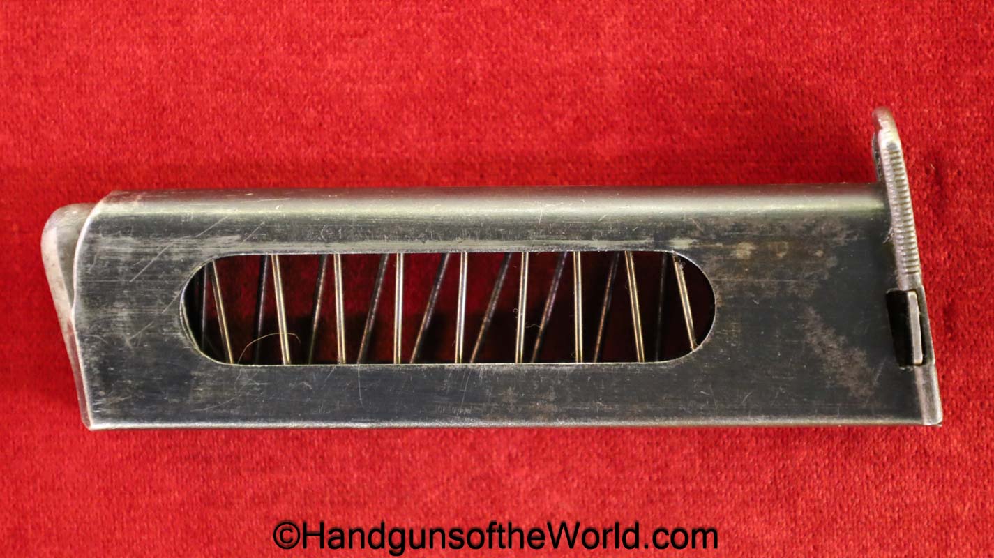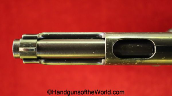 Beretta 1915, 7.65mm. This has the early lined walnut grips with PB logo at the top. This has all matching numbers and is un-proofed. The blue rates a strong 98% and the bore is excellent.