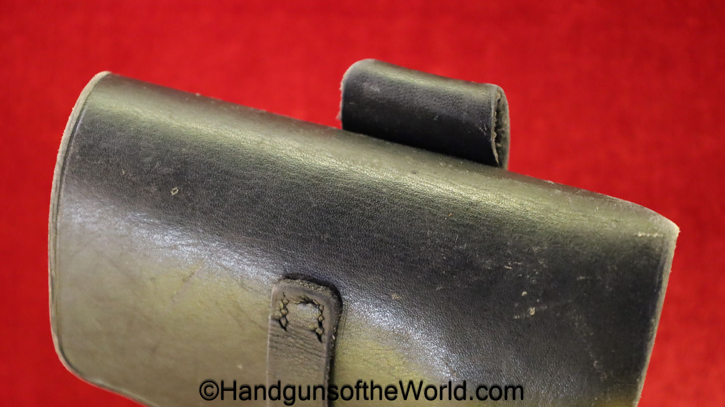 Original Beretta 1934 or 1935 Pistol Holster. This is a green leather, dyed black, full flap pattern. This is a WWII era Holster, unmarked and Ex overall.
