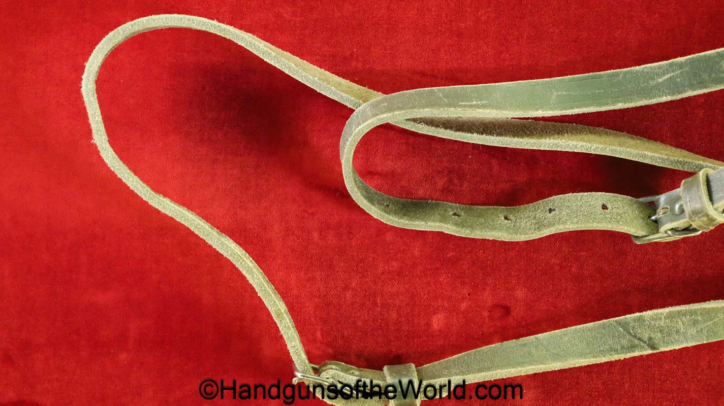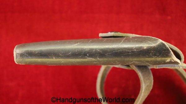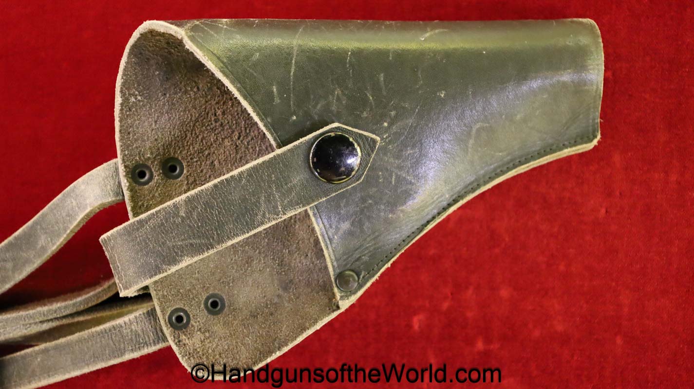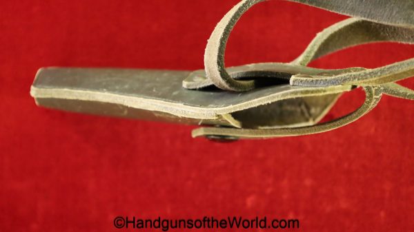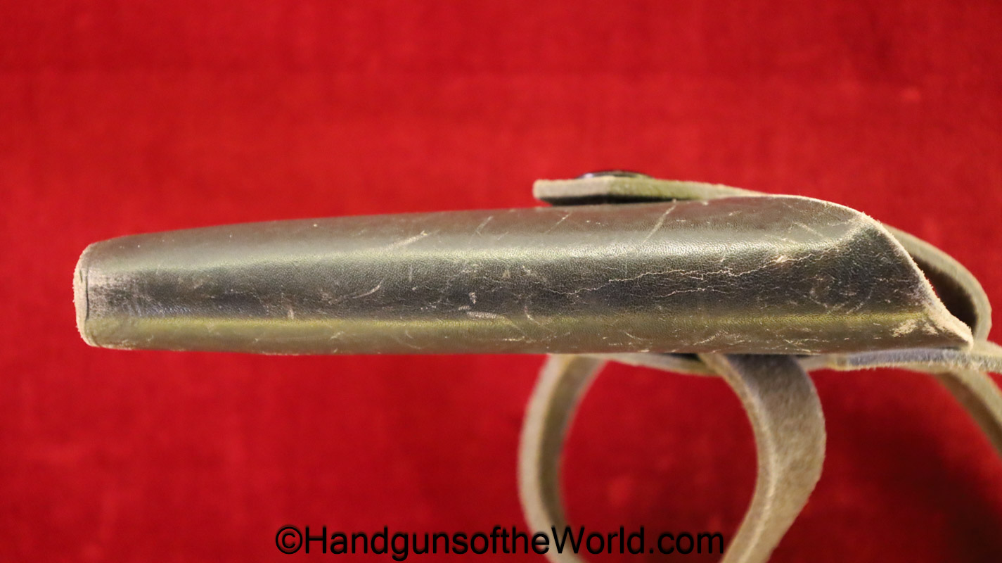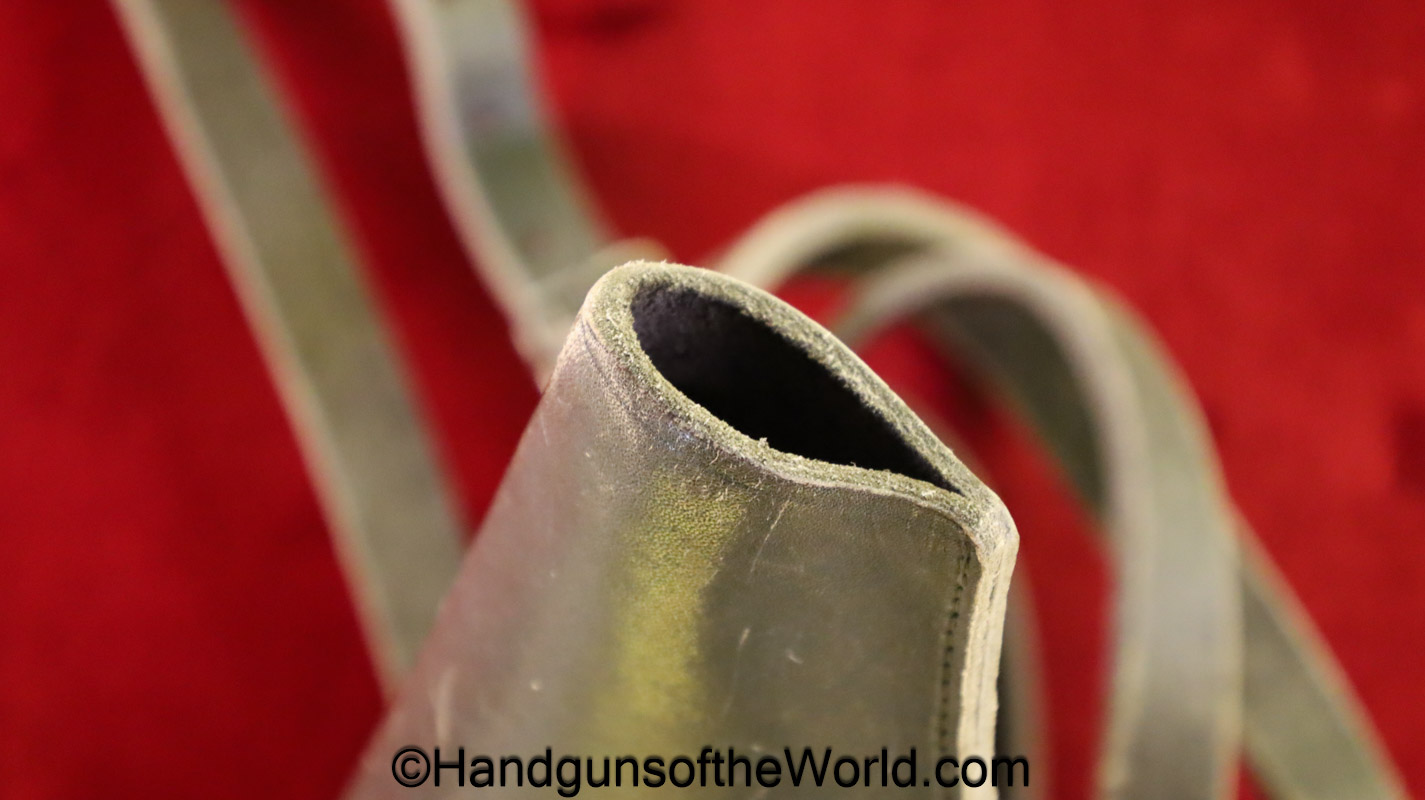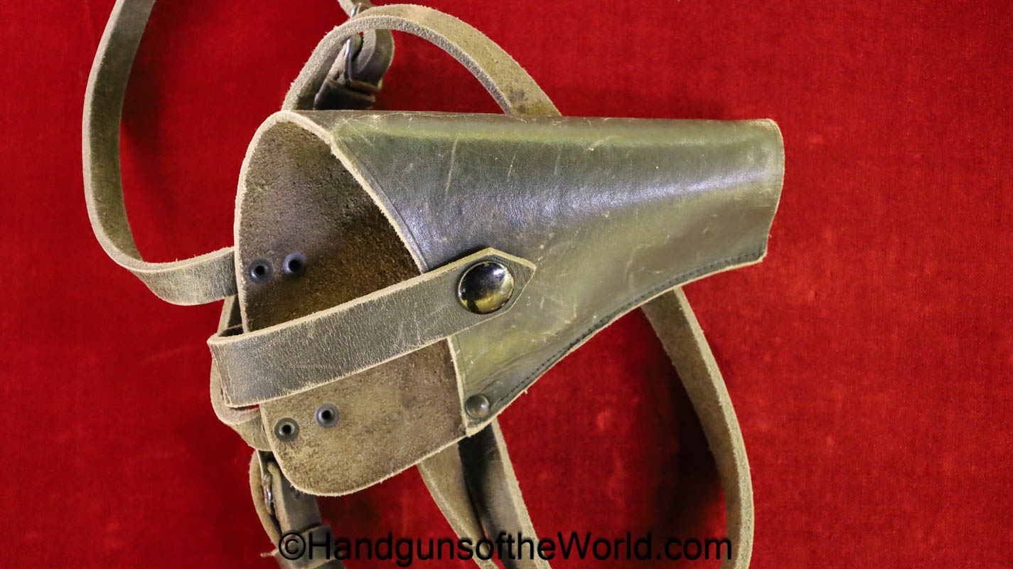 Beretta 1934/1935 Pistol Holster. This is an unmarked WWII era, green leather, shoulder pattern. This has the shoulder strap and waist belt straps intact. Overall VG+.