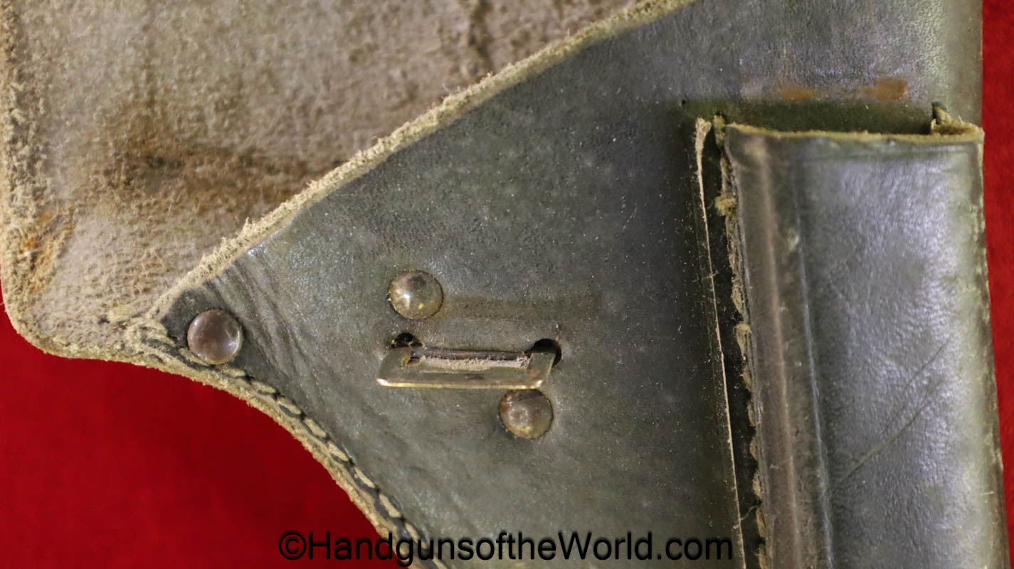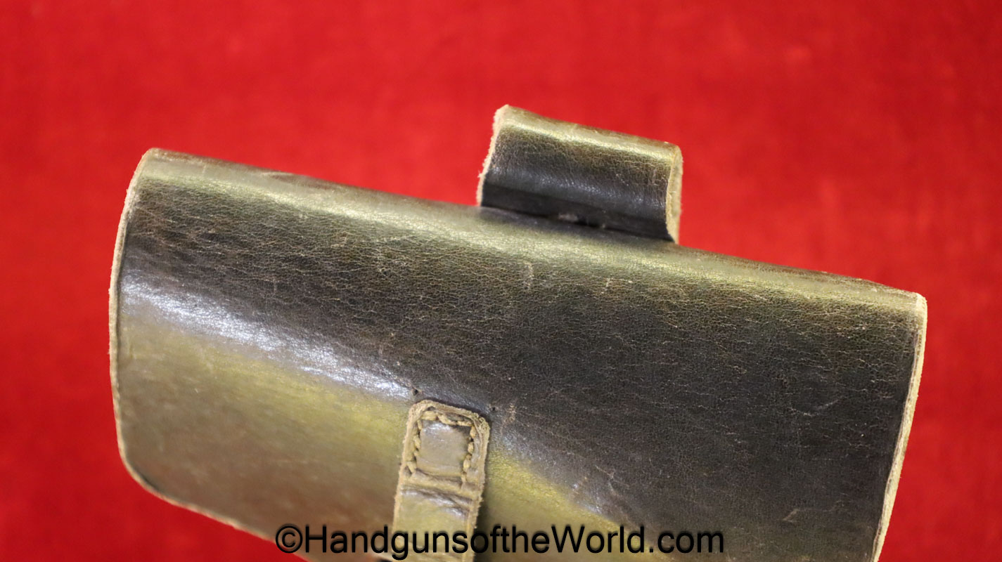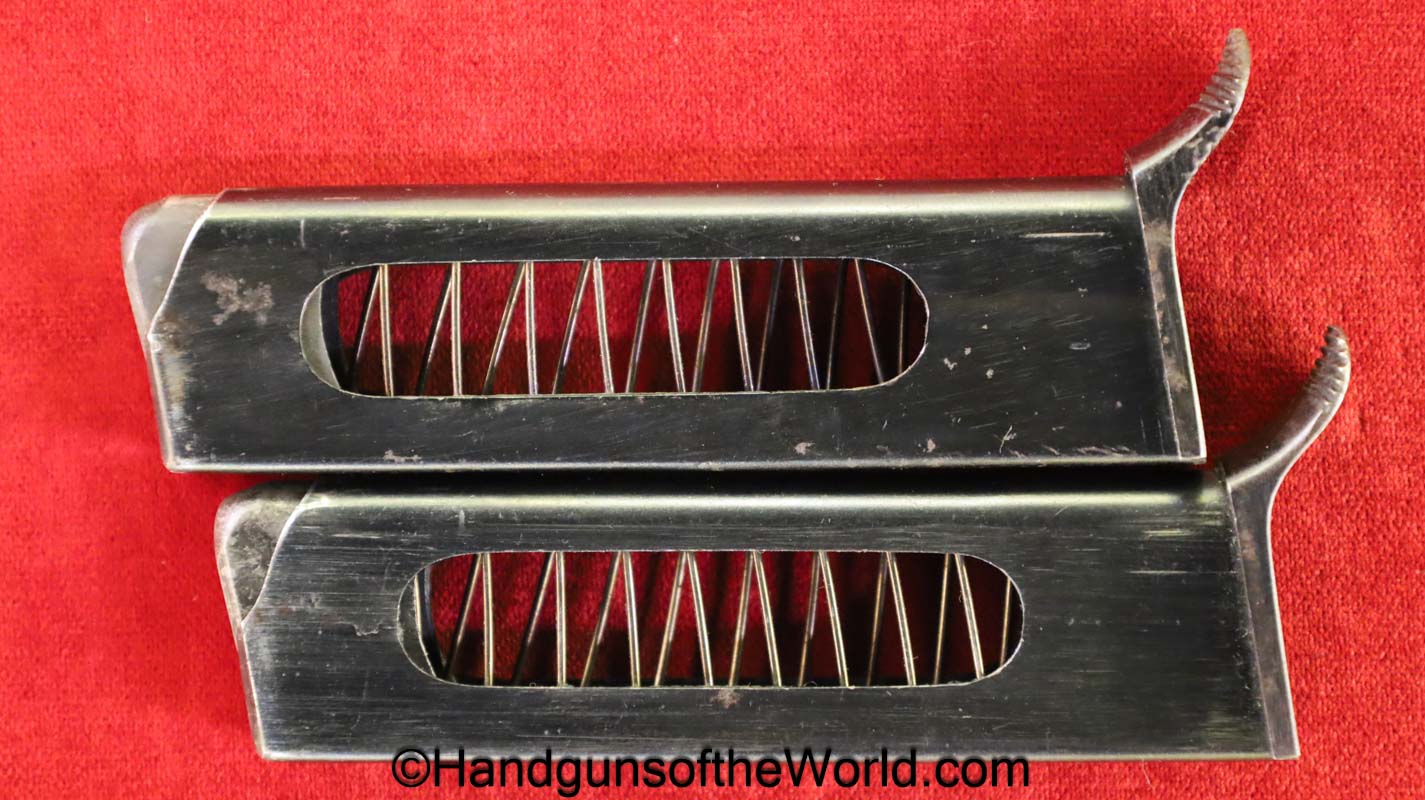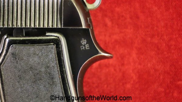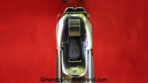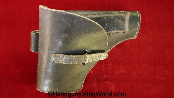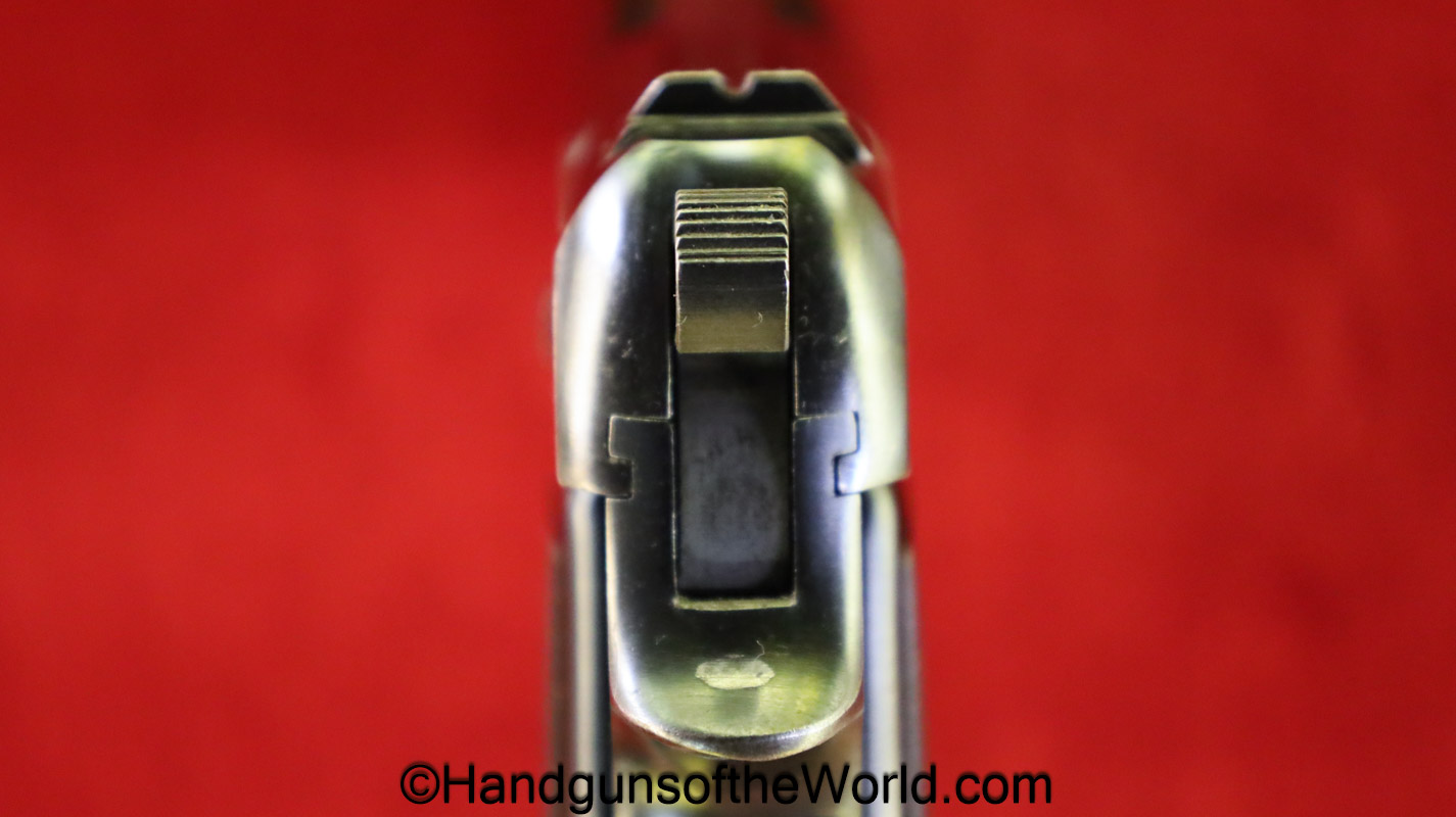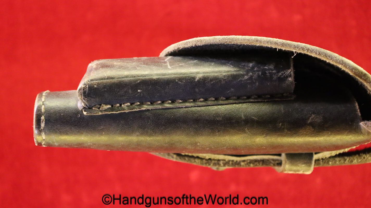 Beretta 1934, .380 caliber. This has the full slide legend and is dated 1940-XVIII. This is Italian Military Crown RE proofed on the left rear tang. This has all matching numbers, about 95% blue and an excellent bore. This full rig includes a green leather full flap holster, a spare magazine and WWII Capture paper from the Army Air Force Base, North African Division-Air Transport Command.
