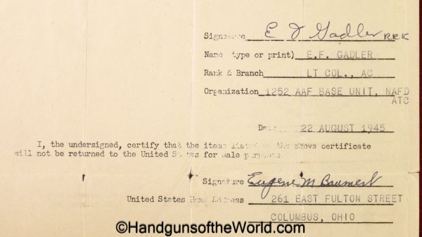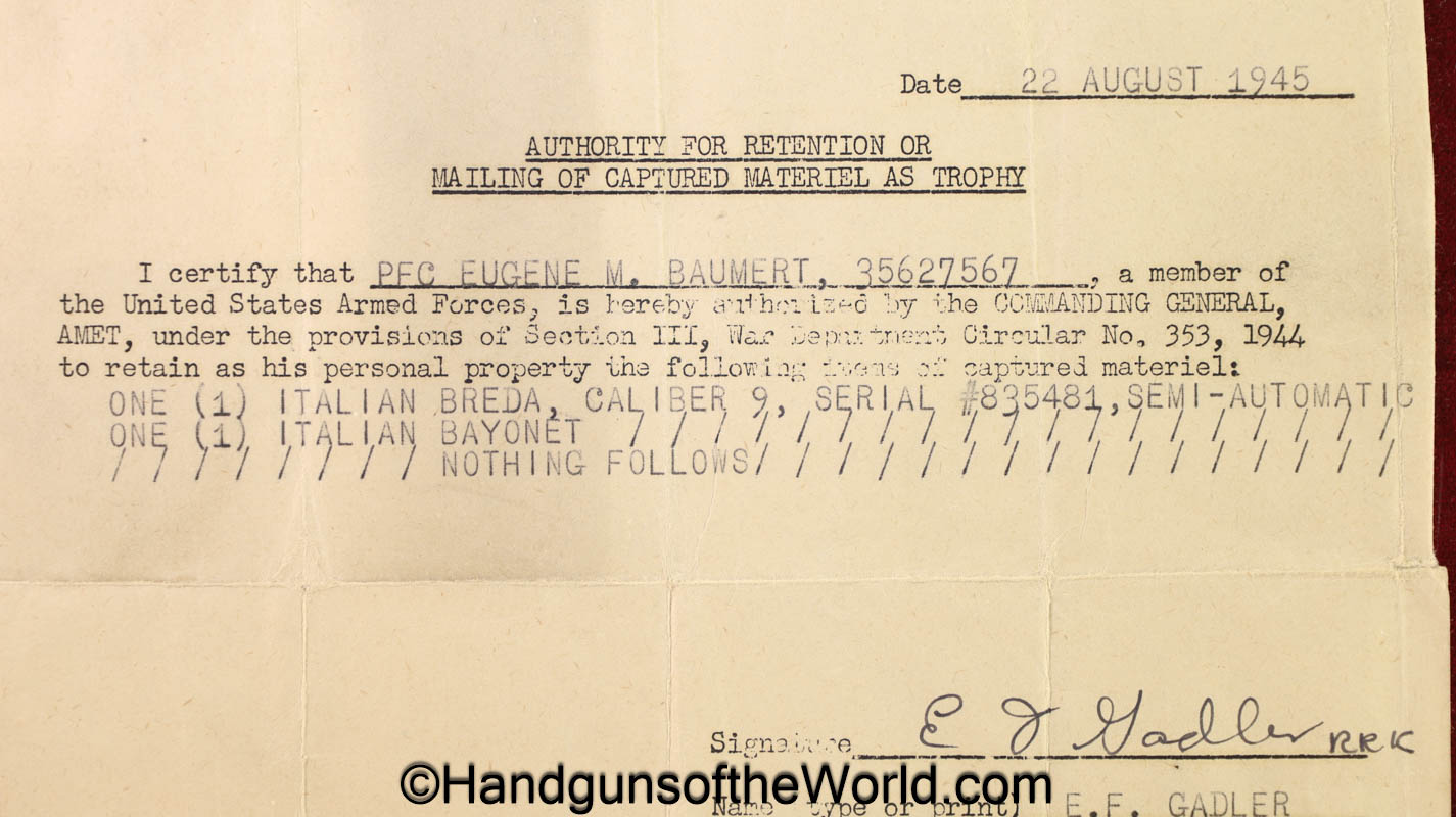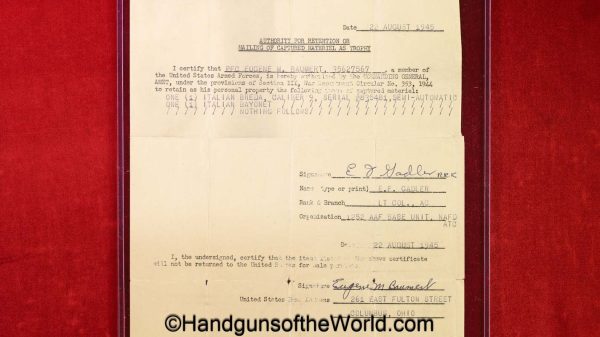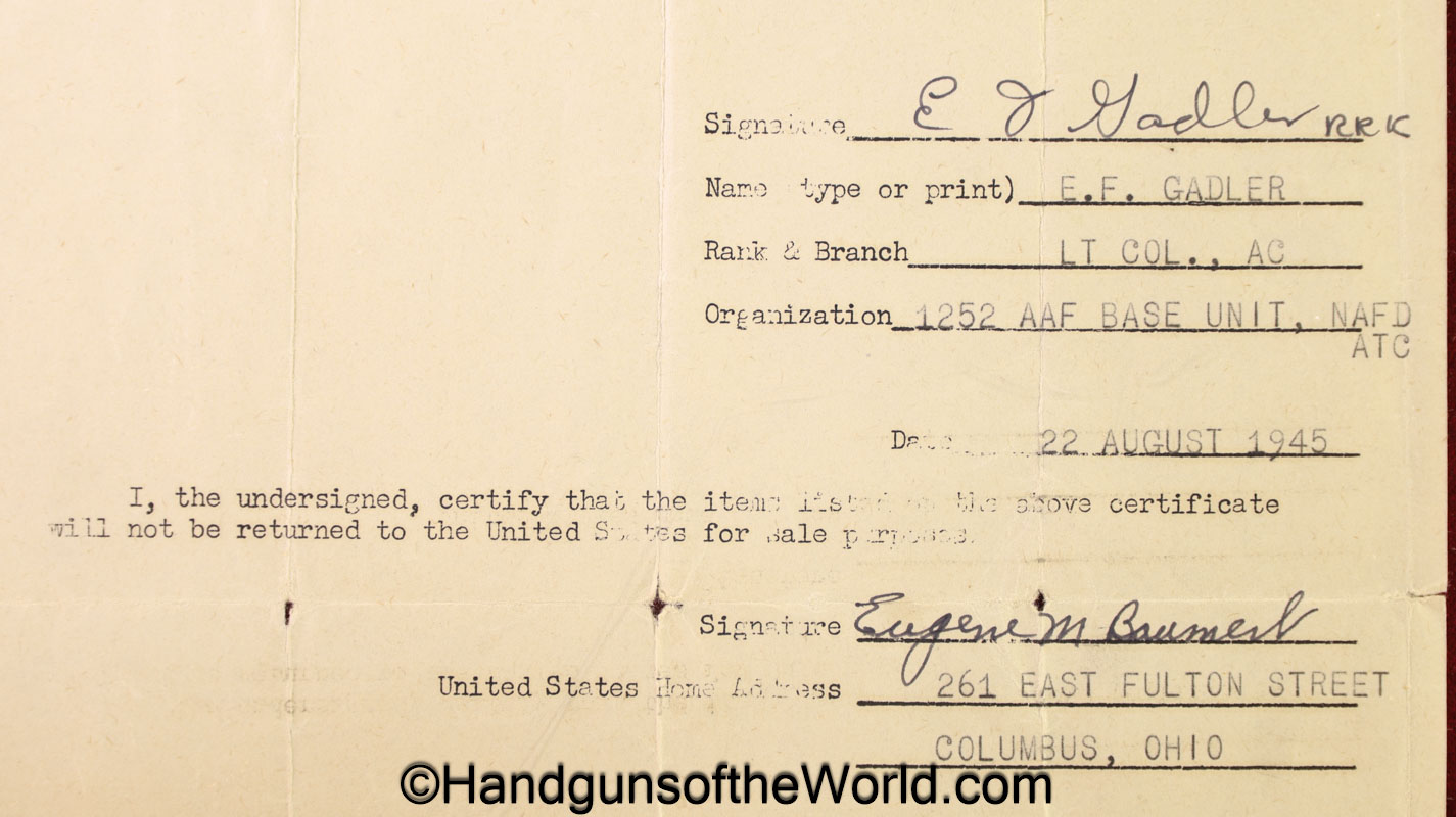 Beretta 1934, .380 caliber, Full Rig with WWII Airforce Capture Paper