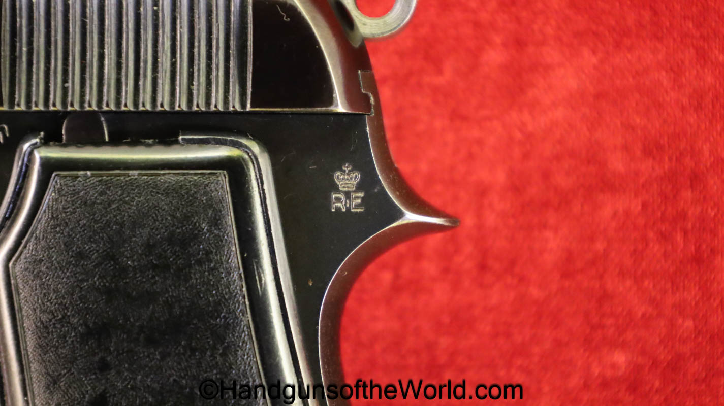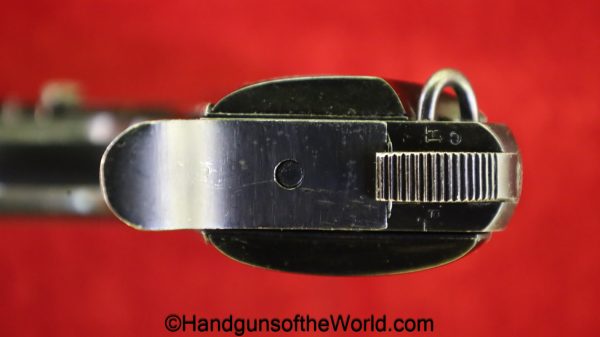 Beretta 1934, .380 caliber. This is Italian Crown RE proofed on the left rear tang and is marked with an unknown Crown G.de.C by the lanyard loop=Groupe de combattimento??? possibly. This has correct black Bakelite grips, and the full slide legend is dated 1937-XV. This has all matching numbers, about 97% blue and the bore is excellent.