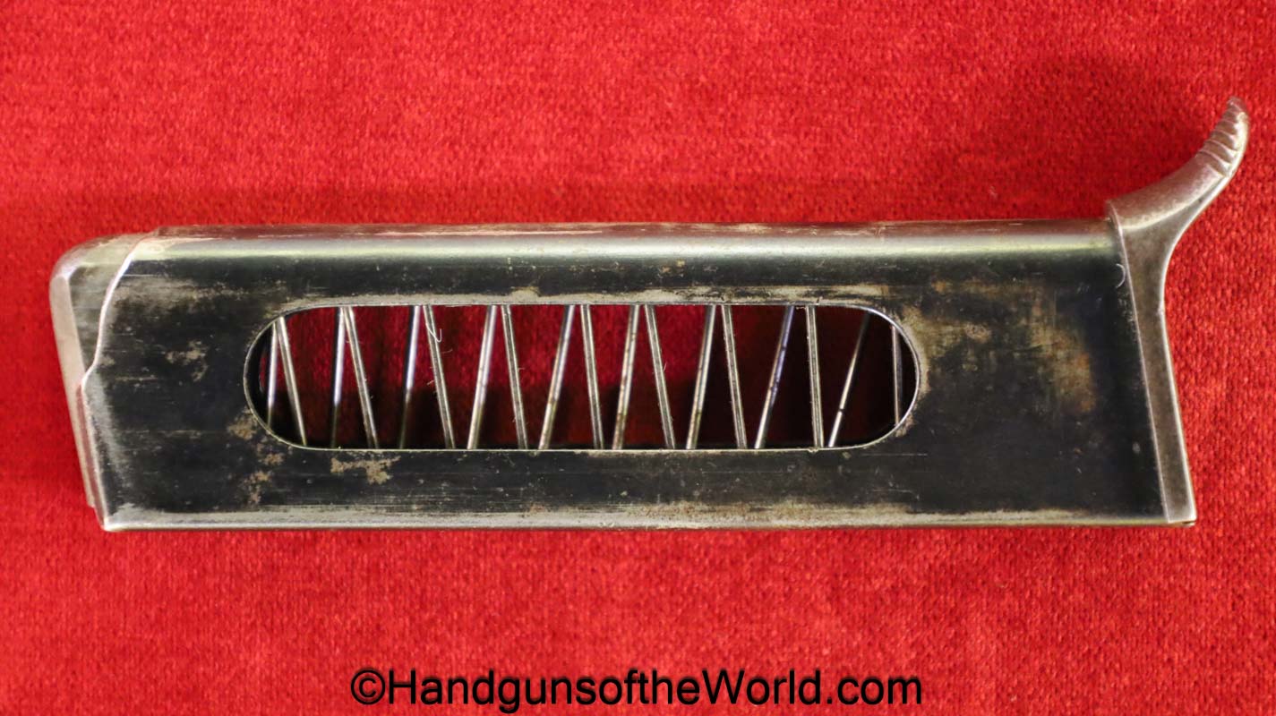 Beretta 1934, 7.65mm. This transition model has the slide marked 1915-1919-Mo,1934 and XII-1934. The left rear tang is Italian proof/dated 1934. This has correct black Bakelite grips with metal backings. This has all matching numbers, about 95% blue and the bore is VG.
