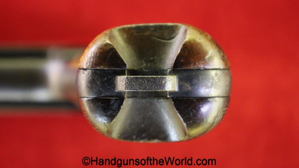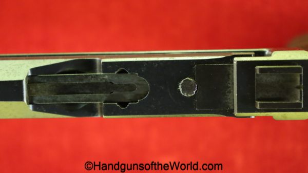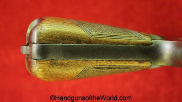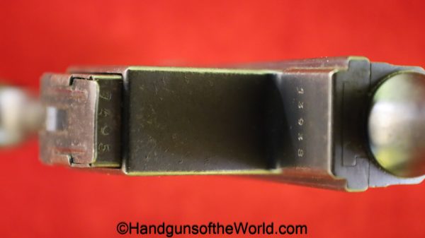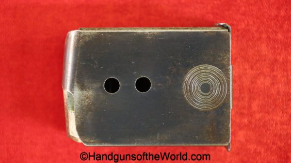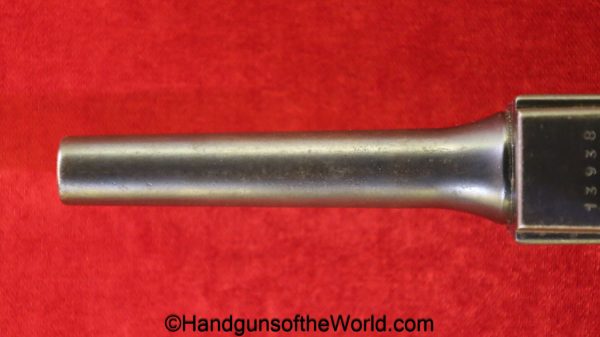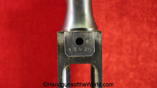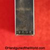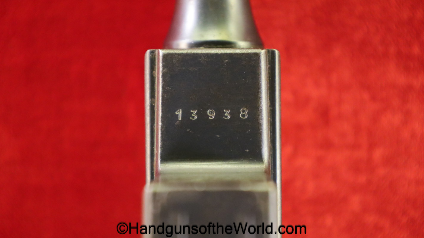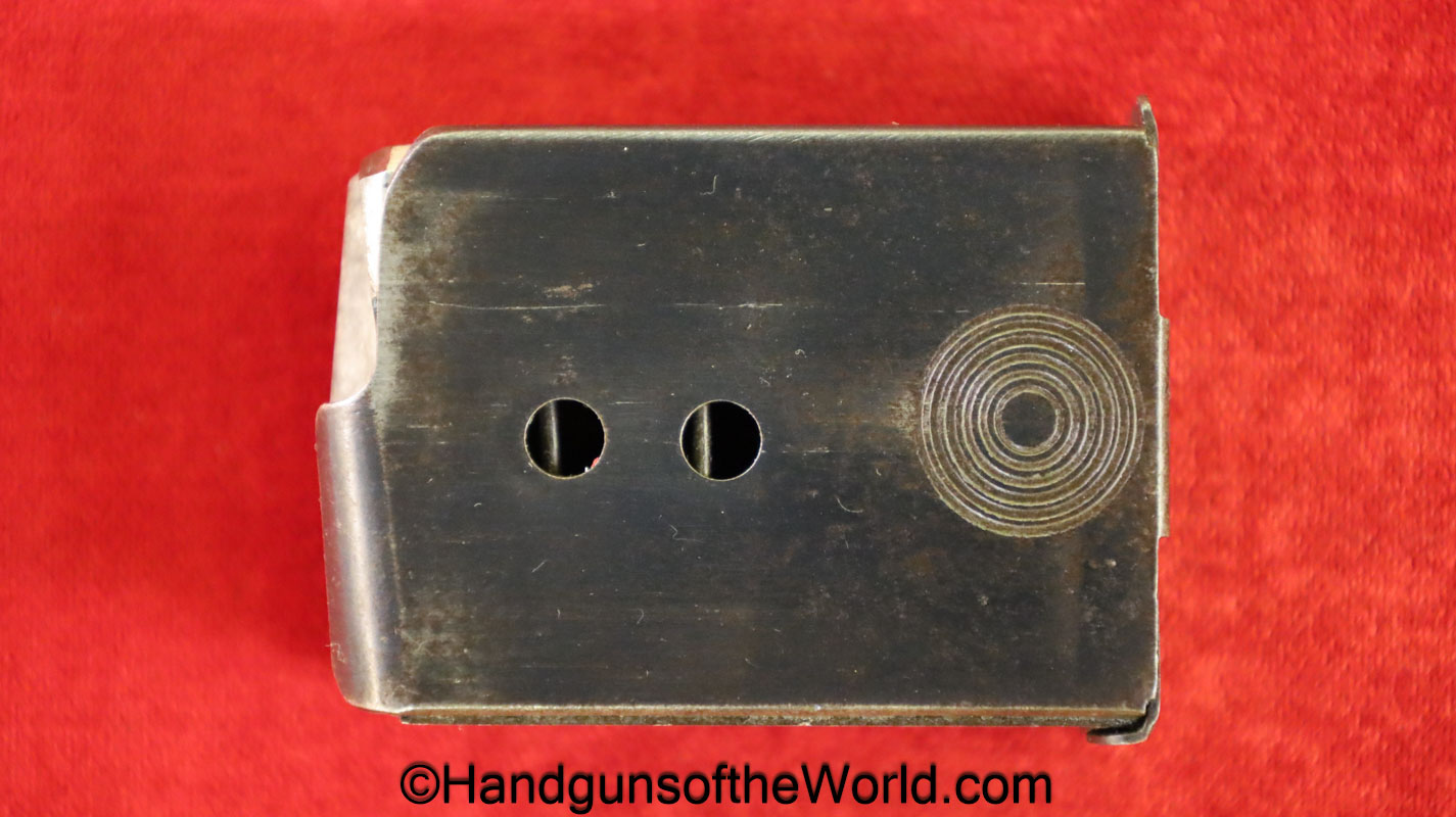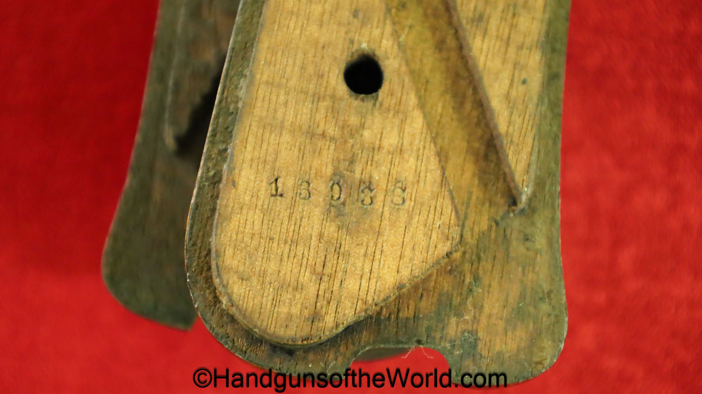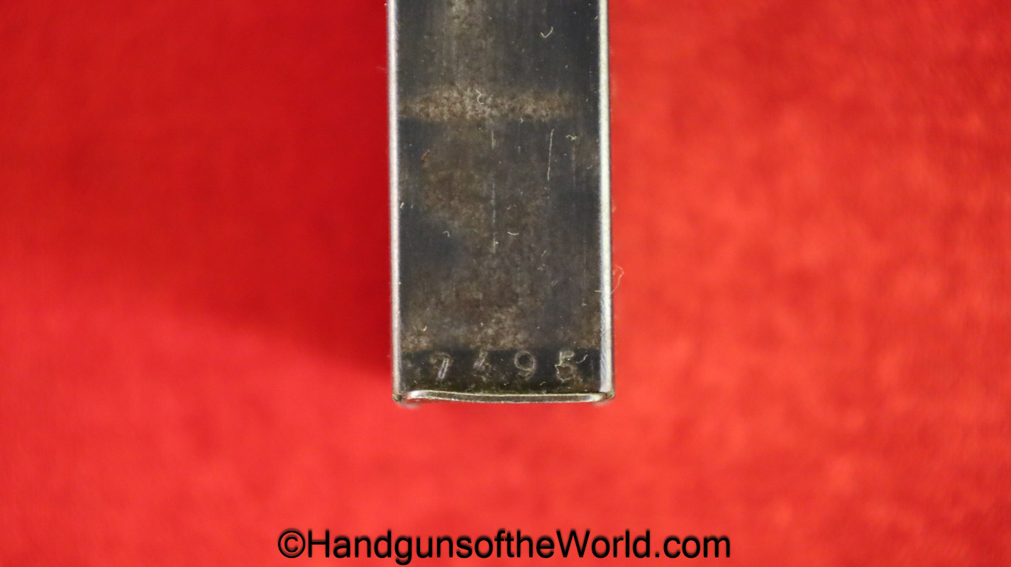 Bergmann Bayard 1908, 9mm. This has the proper checkered walnut grips. The blue rates about 60% and the bore is VG+. The magazine is from a 1910 era model.