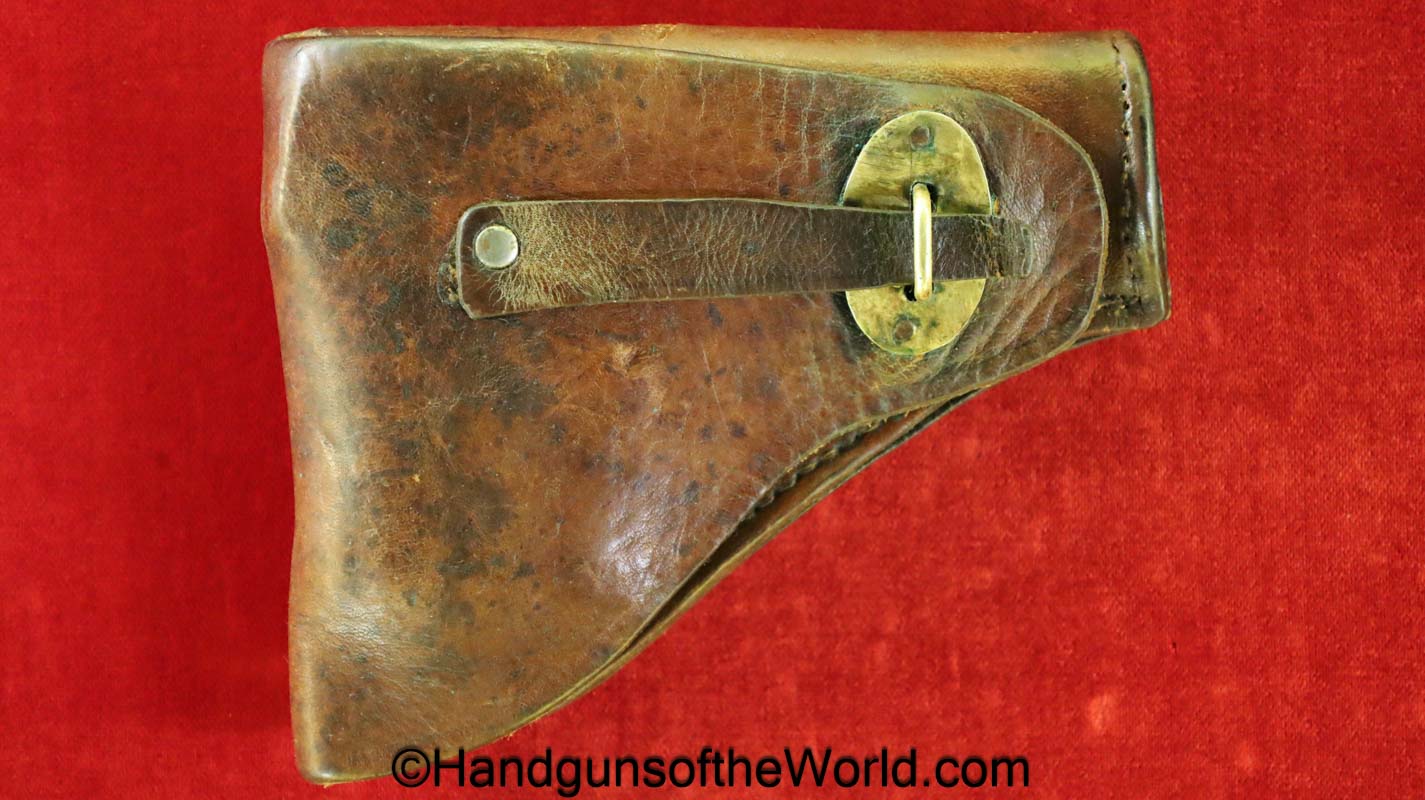 Original FN Browning 1906 Pistol Holster. Brown leather full flap with brass fittings. Unmarked, overall VG-VG+.
