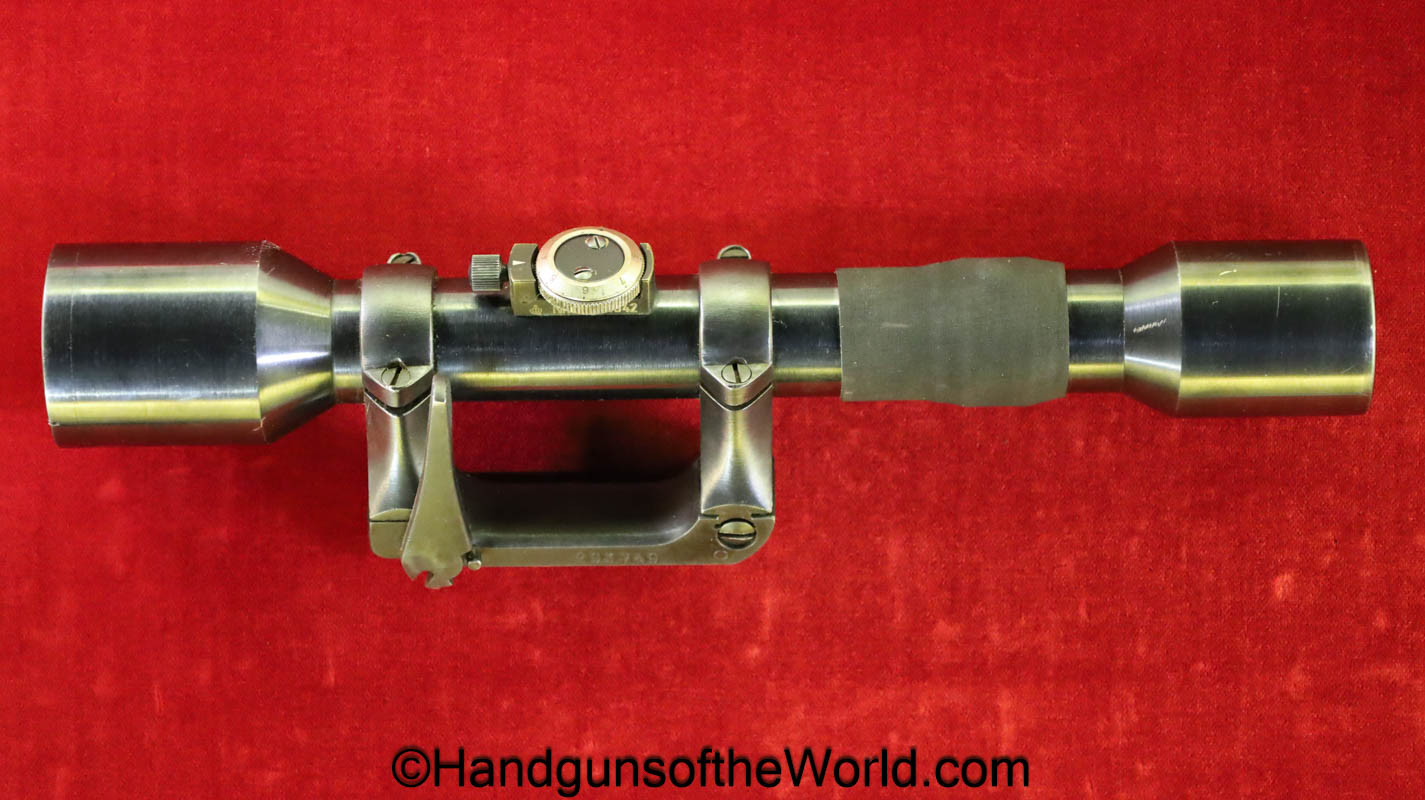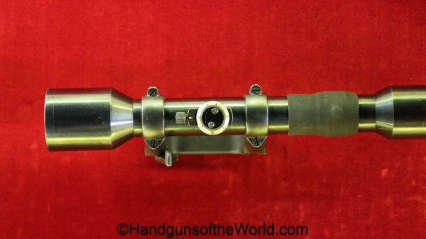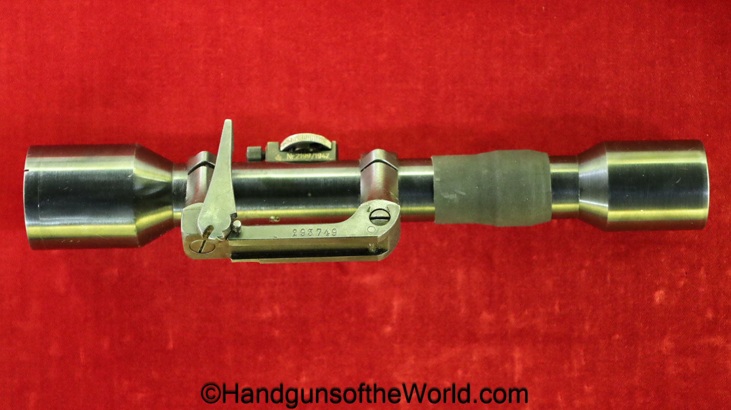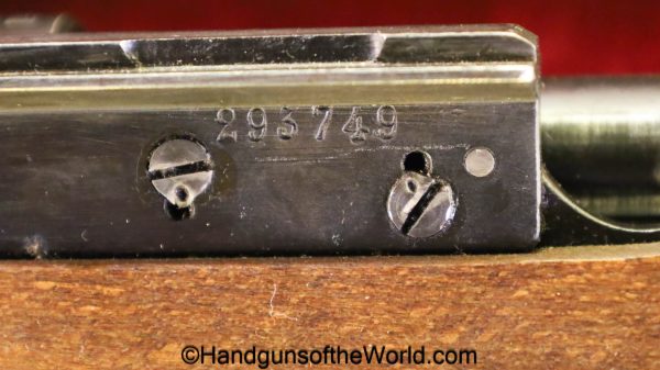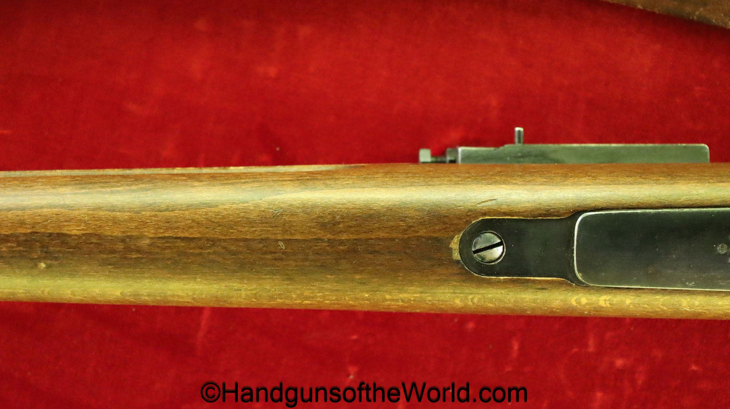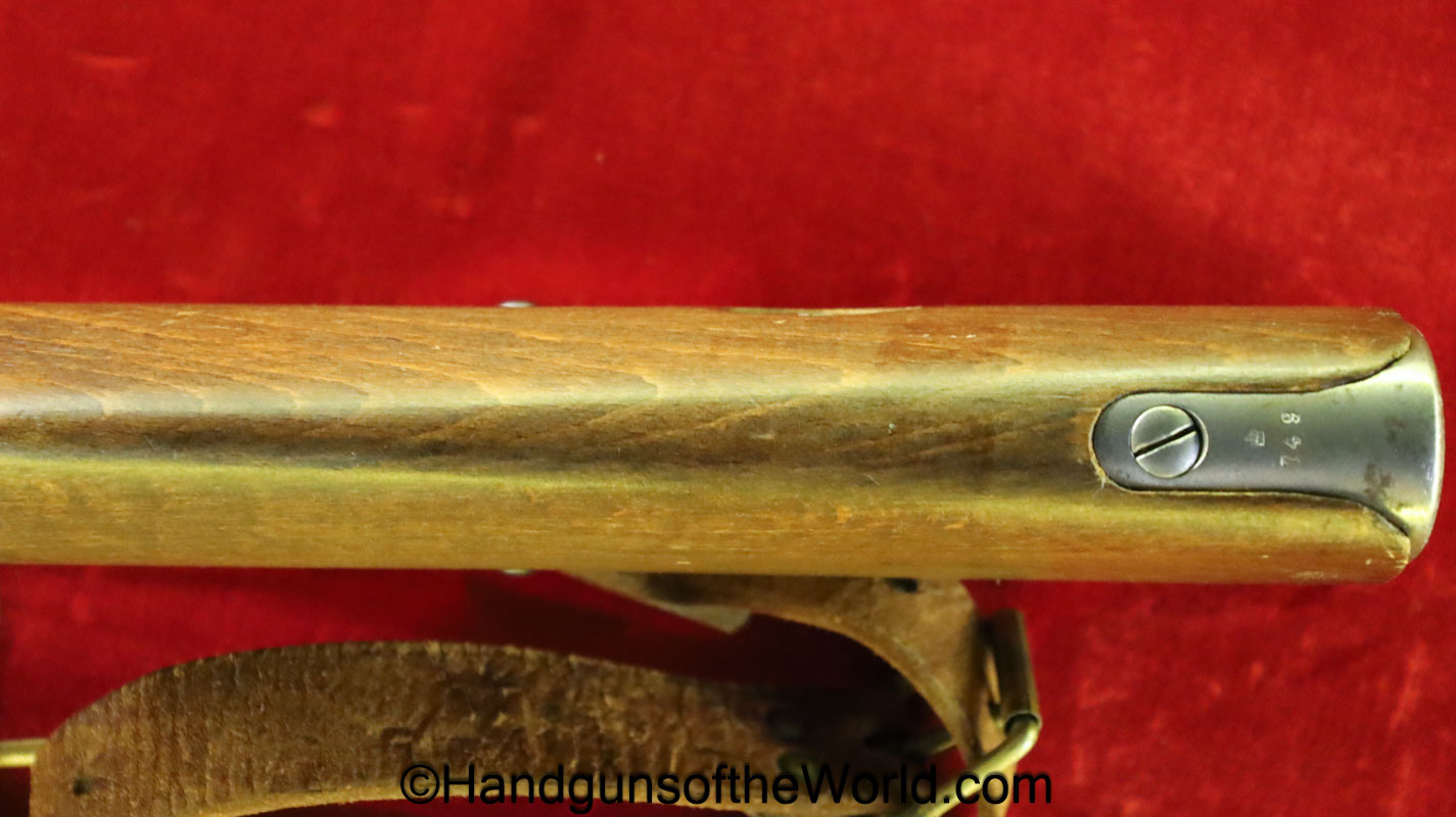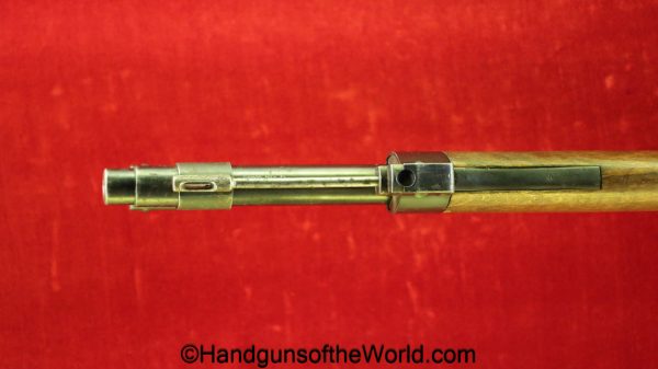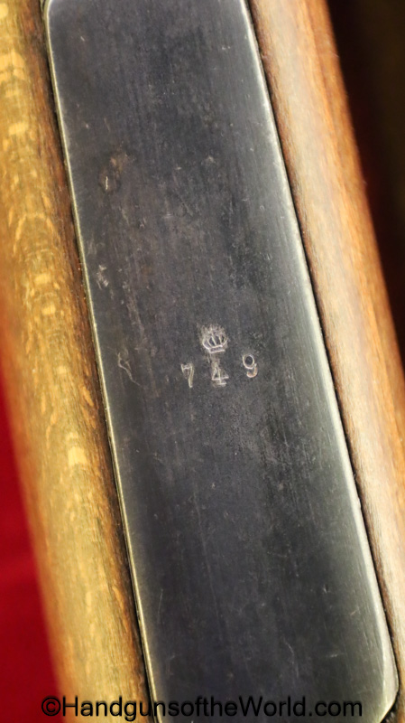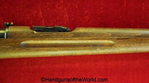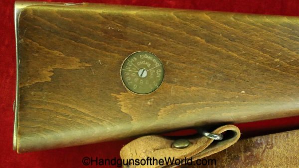 Carl Gustafs Swedish M41B, 6.5mm. This sniper is an arsenal conversion from an M96 Rifle, and is chamber dated 1911. This has a matching Ajack 4×90 scope mount, dated 1942. This has an excellent wooden stock, with an import mark on the barrel, and all matching serial numbers. The blue rates about 98% and the bore is excellent. Included will be the proper matching aluminum scope can with shoulder straps, a scope cover, sling and cleaning rod.