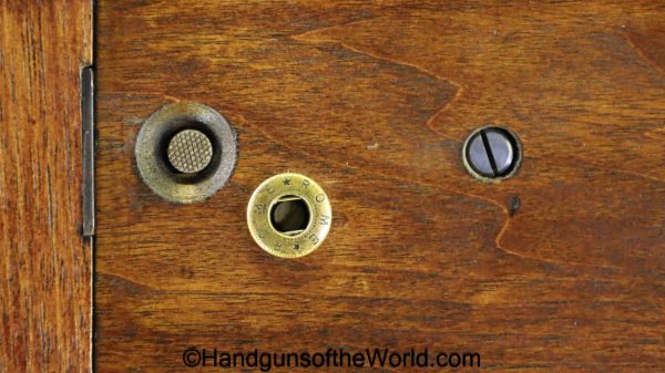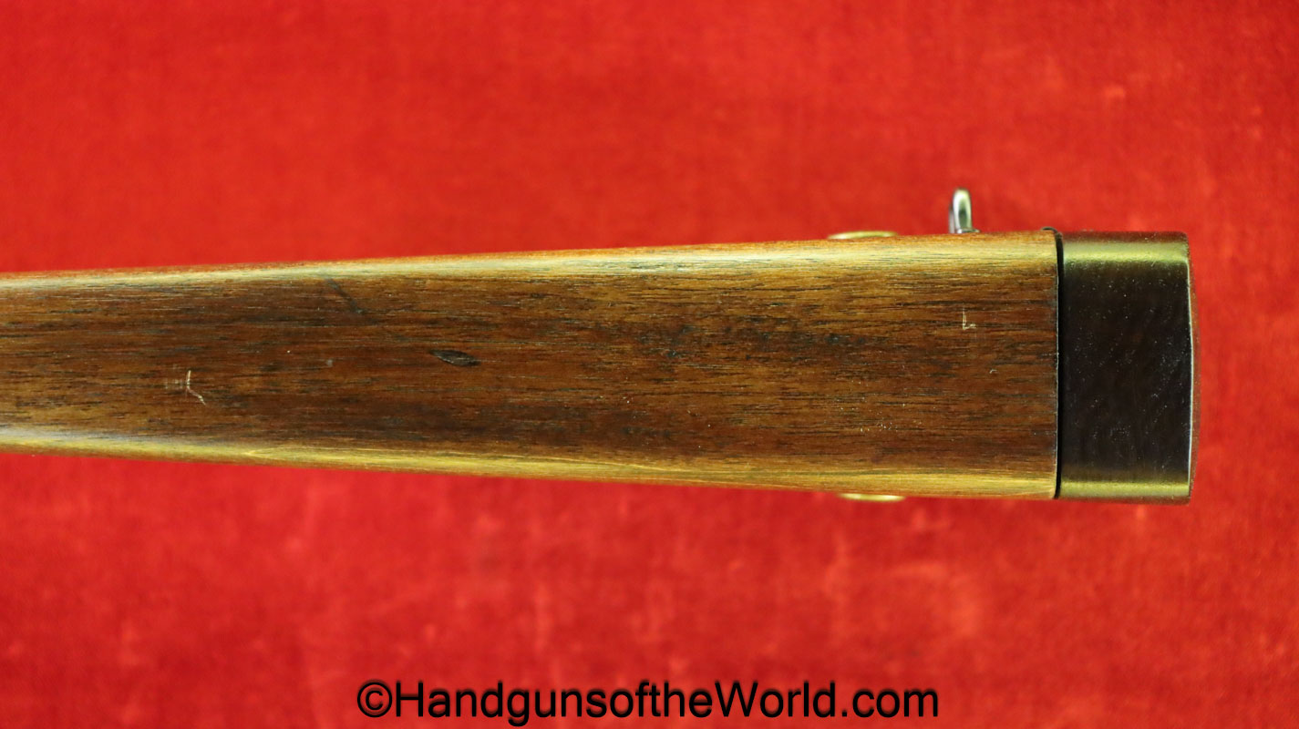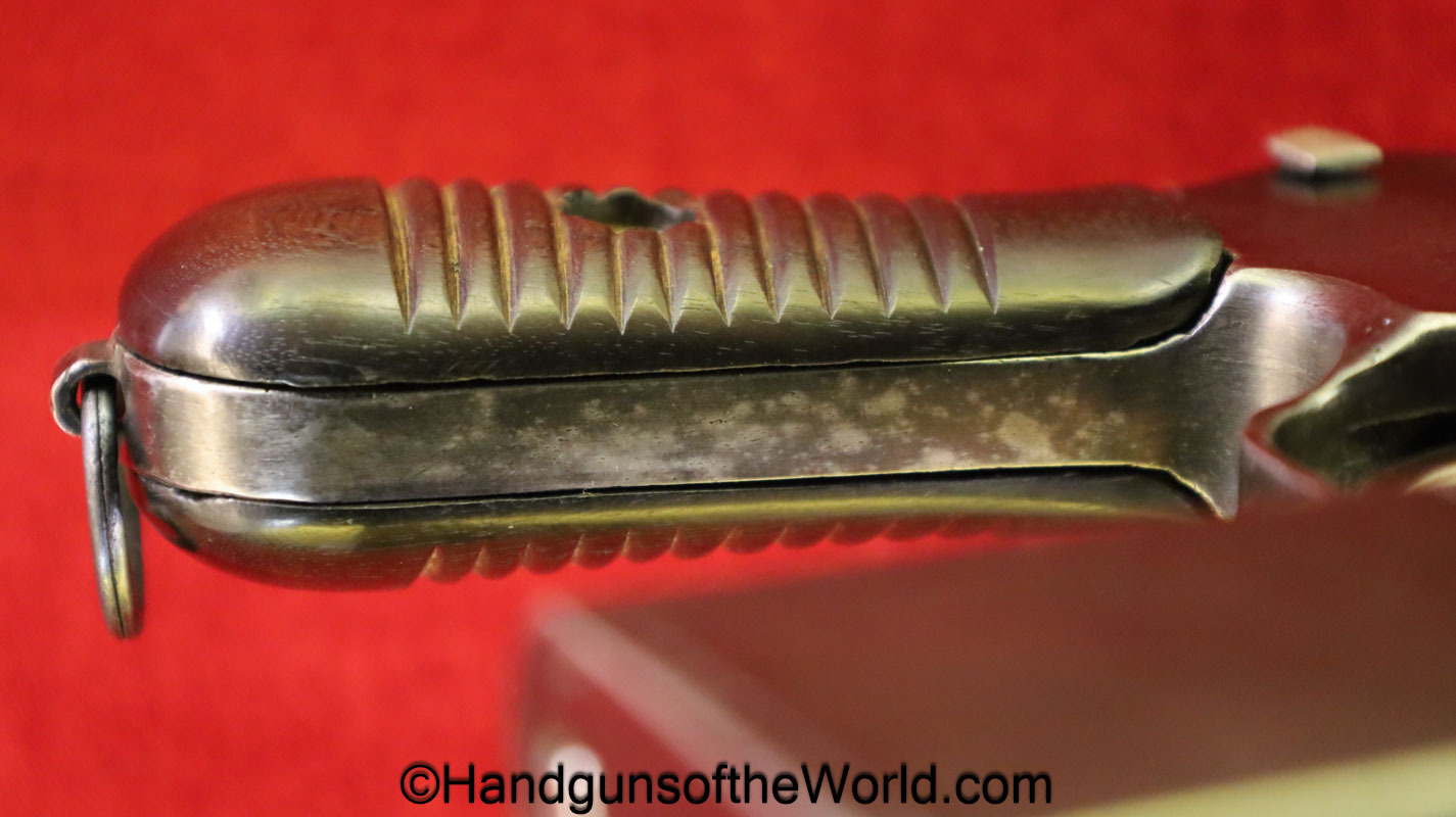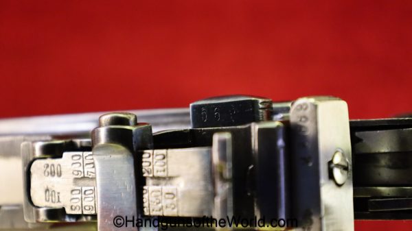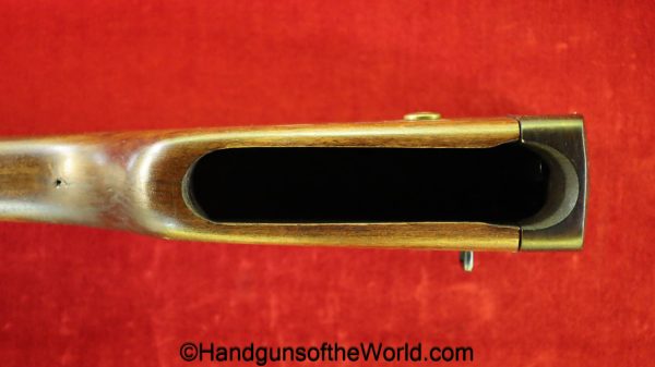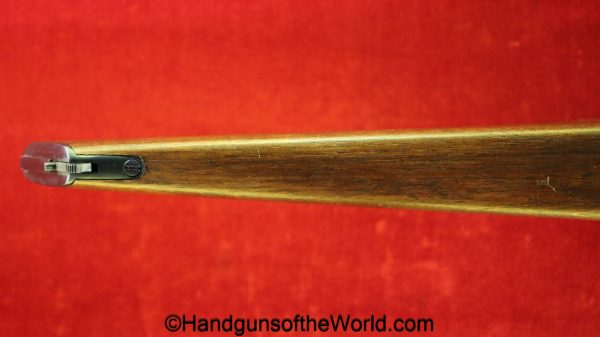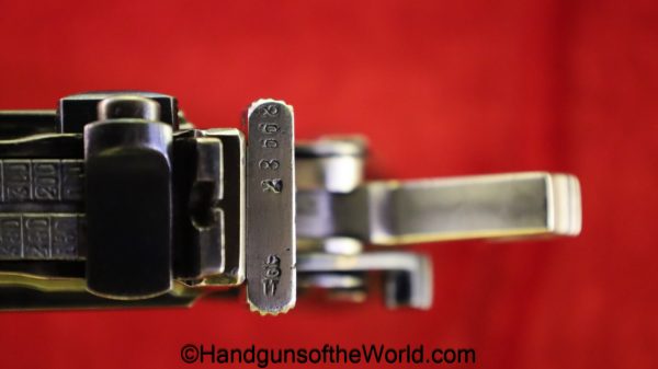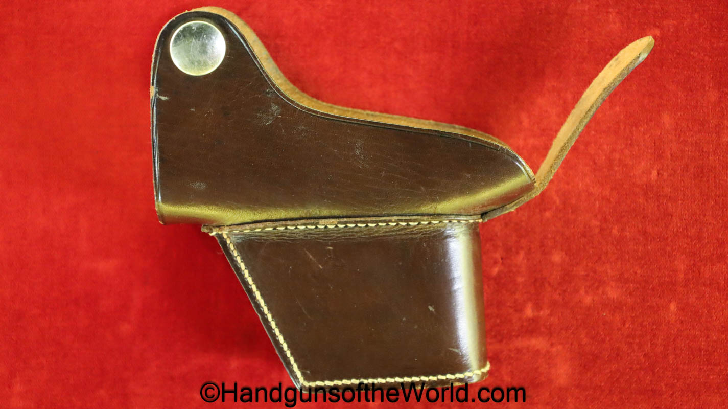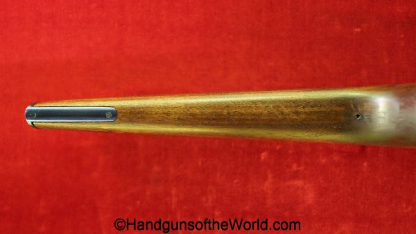 Chinese 1896 Broomhandle, 7.63mm. This is a flat side pattern with a large ring hammer. This appears to be an old, non factory conversion to 20 shot. This has new made lined walnut grips. This has 99% of an old refinish and a Vg-VG+ bore. This comes with a Chinese Pattern wooden holster shoulder stock converted to accept the 20 shot magazine with a leather boot for the extension. This will need some help mechanically, as the follower does not rise to the chamber.