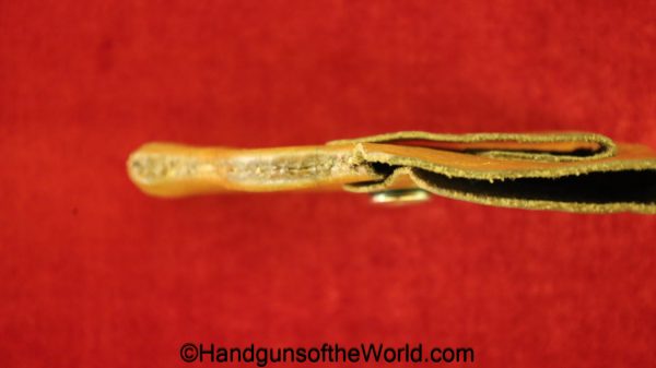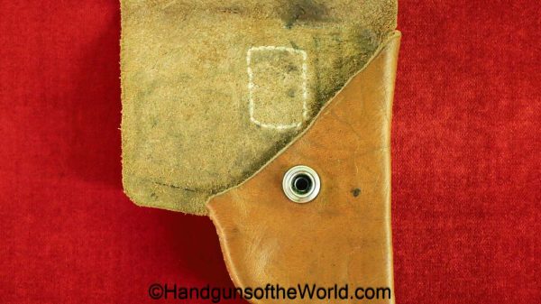 Period Clement 1907 Pistol. This is unmarked, soft brown leather with a snap closure. Overall VG-VG+.