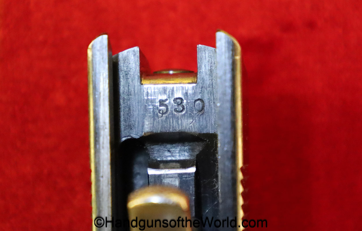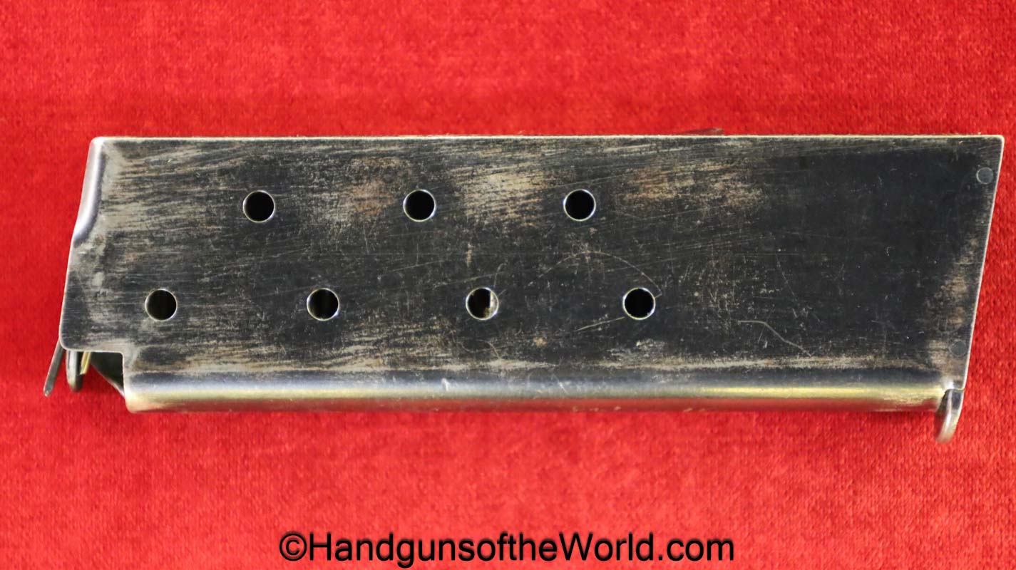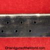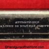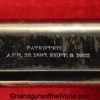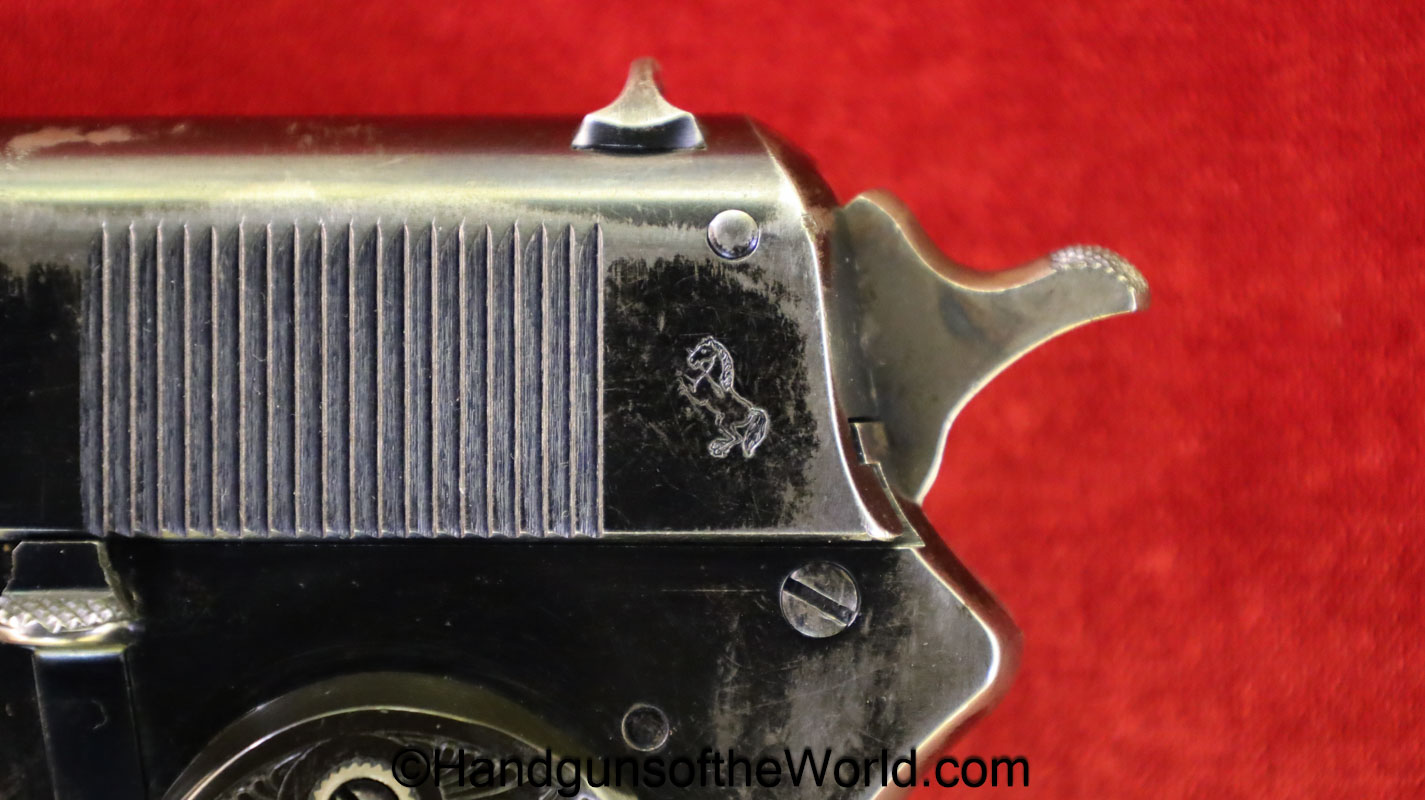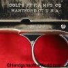 Colt 1902 Military, .38 Caliber. Built in 1909 with a spur hammer and hard rubber grips with the Colt logo. The slide is from a different pistol. The high polish blue rates about 70% and the bore is VG++.