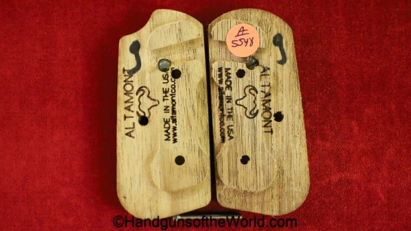 Newer production, Colt authorized 1903-1908 Pistol Grips. Checkered walnut with gold Colt medallions. These are Altamont maker marked on the backs. Overall Excellent.