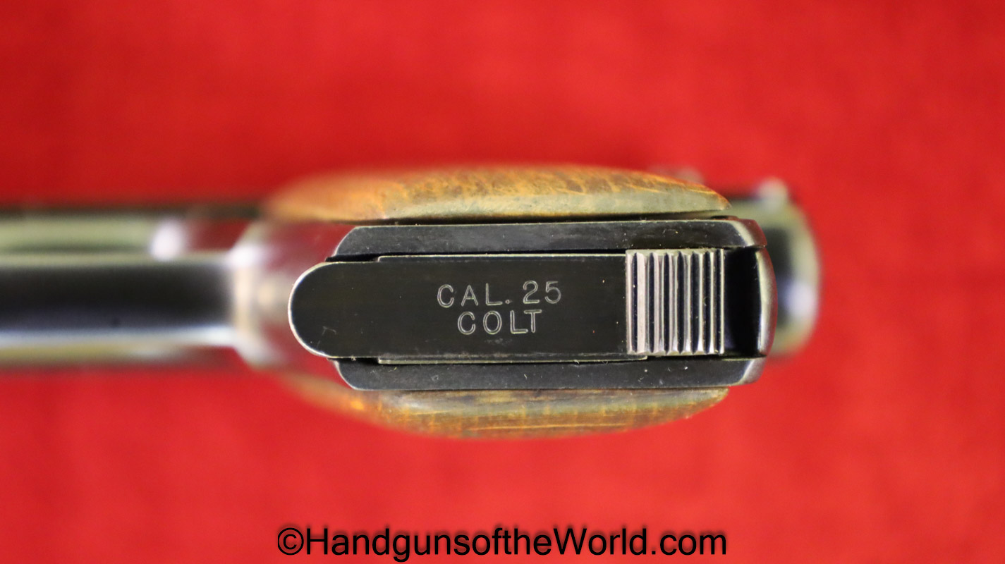 Colt 1908, .25 caliber. built in 1920 this has non factory smooth walnut grips. This has 99+% of a nice refinish and the bore is excellent.