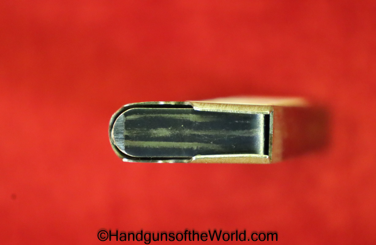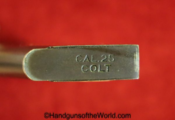 Original Colt 1908 Pistol Magazine. Marked on the base “Cal 25 Colt” About 80% two-tone blue remains.