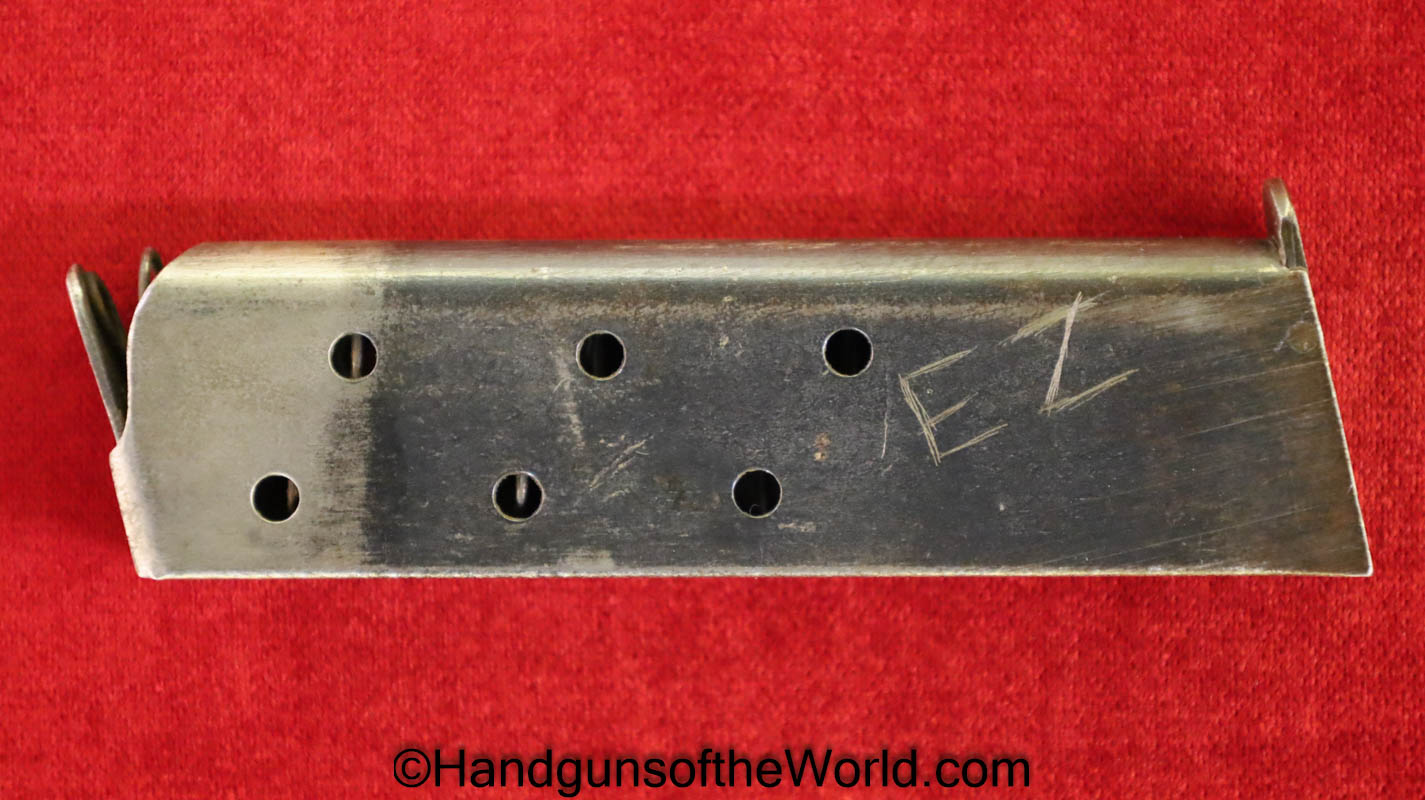 Original Colt 1908 Pistol magazine. Marked on the Base “Calibre 380”, and has a EZ scratched on the side. About 90% blue remains.