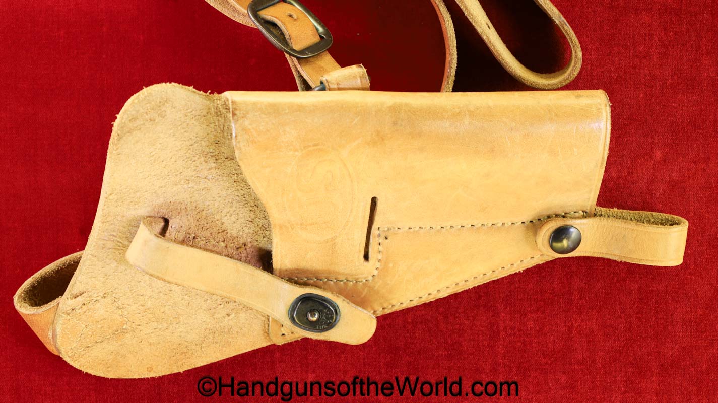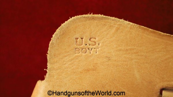 Original Colt 1911A1 Pistol Shoulder Holster. This is tan leather with US embossed on the front, and marked US Boyt on the Back. unissued-excellent.