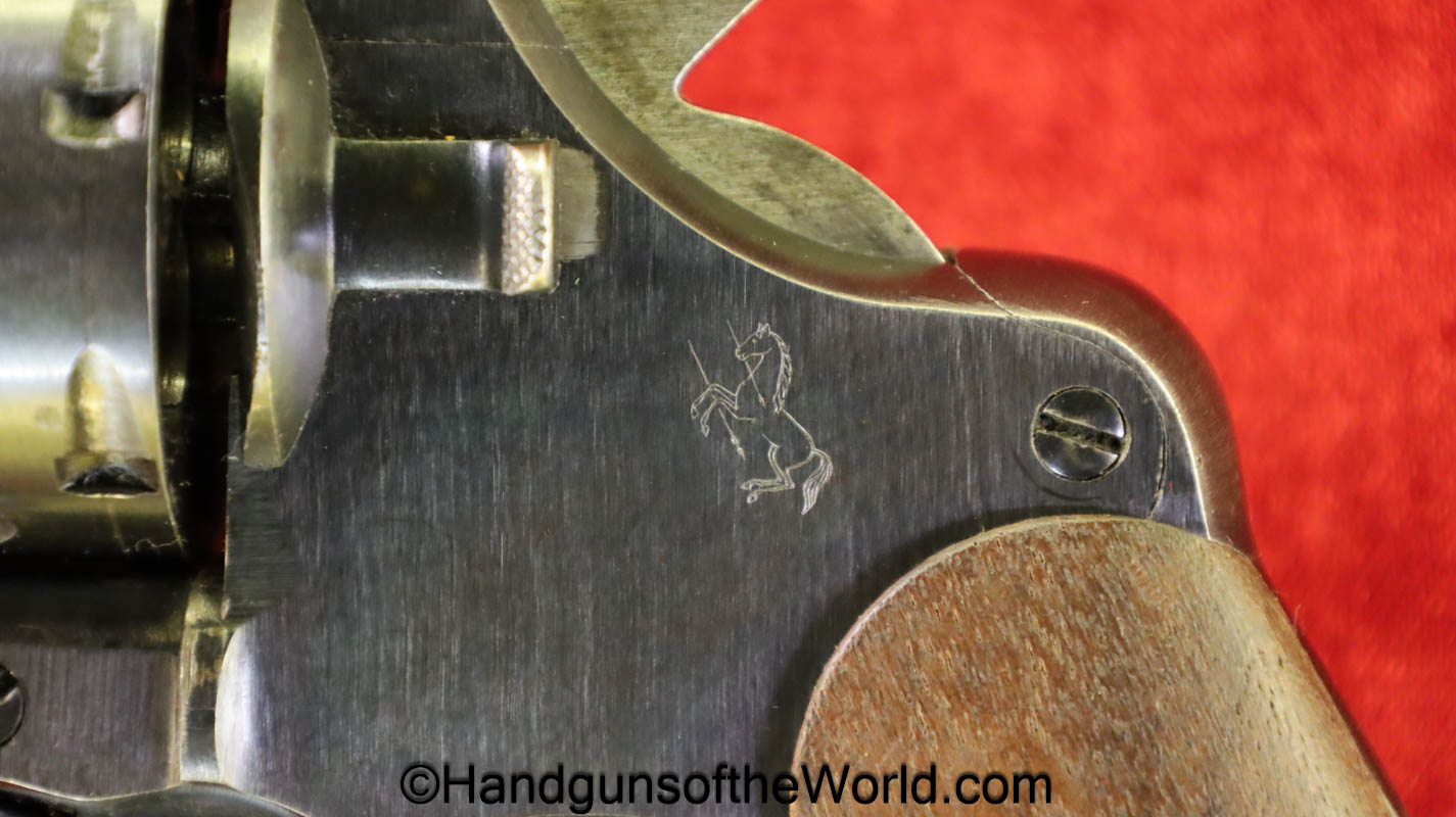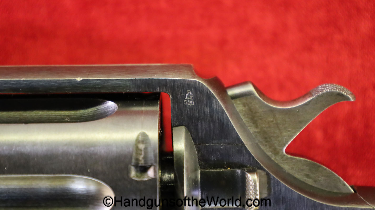 Colt 1917 Revolver, .45acp. This is marked US Army Model 1917 on the butt, and United Staes Property under the barrel. This also has the S20 Military inspection mark on the left side of the frame. This has proper smooth walnut grips with 99% blue and an excellent bore.