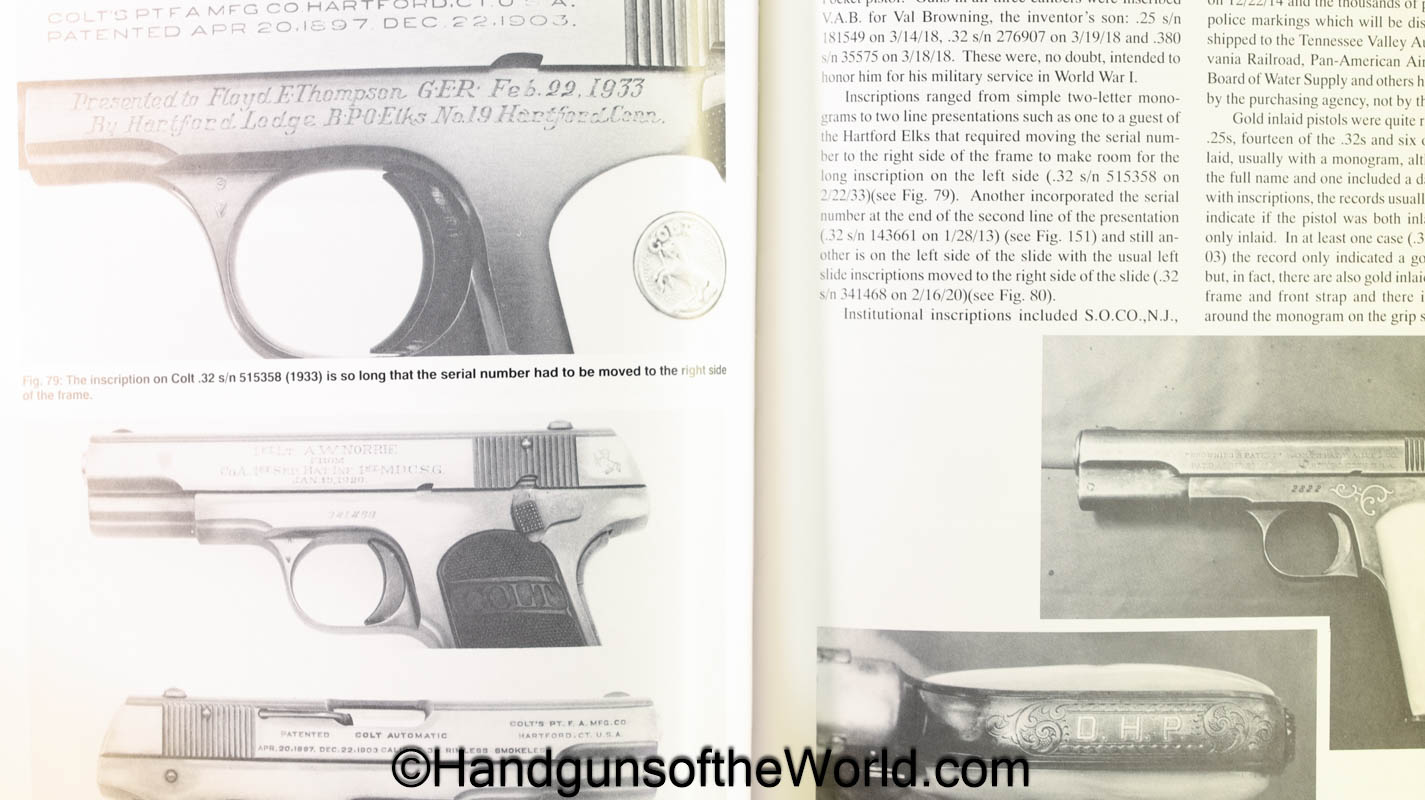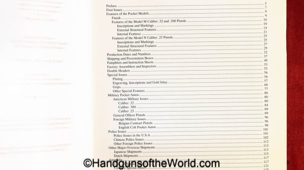 Colt Pocket Hammerless Automatic Pistols Book by John W Brunner, Volume 1, 224 pages, 8×11 hardbound with dust cover. Autographed. Excellent.