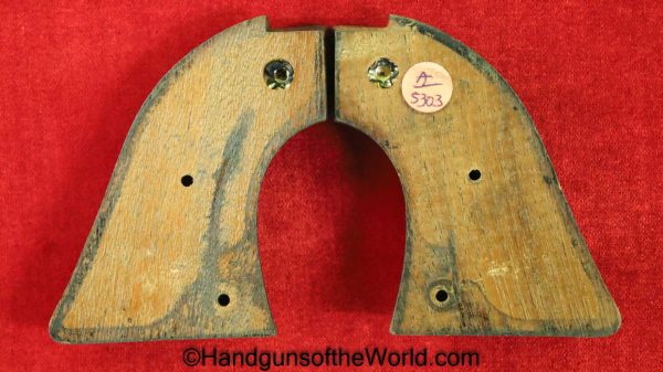 Original Colt Scout Revolver Grips. These are stained black, roughened walnut with gold Colt medallions. Overall VG+.