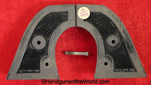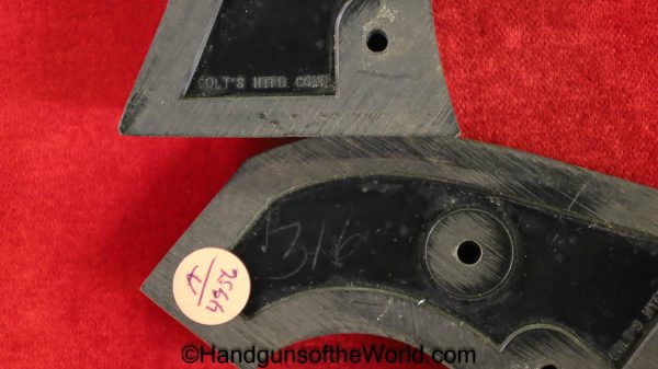 Original Colt Single Action Army revolver Grips. These are for the 3rd Generation, black plastic with the eagle Motif on each side. #316 on the backs. Overall Excellent.