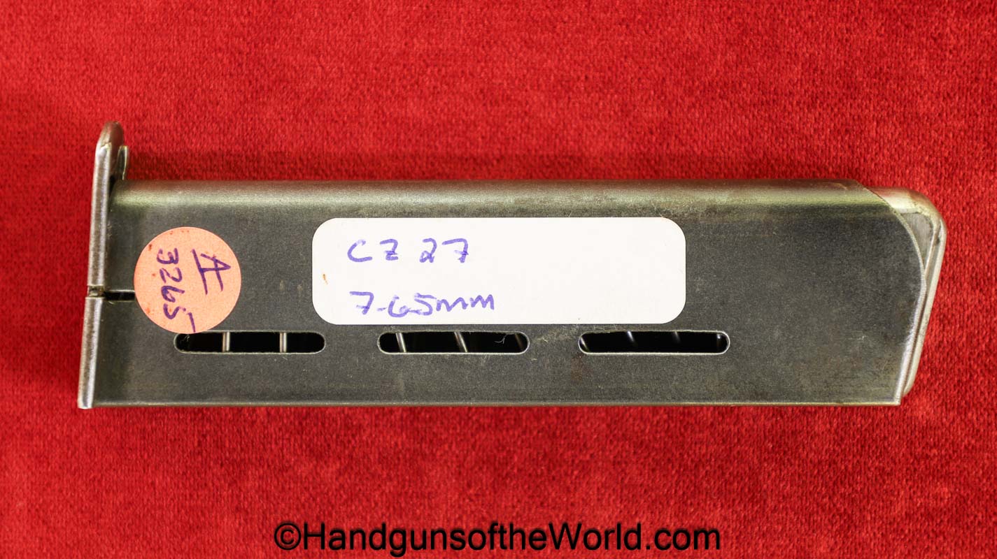 Original CZ-27, 7.65mm Pistol Magazine. Marked on the base “P.Mod 27” About 90% blue remains.