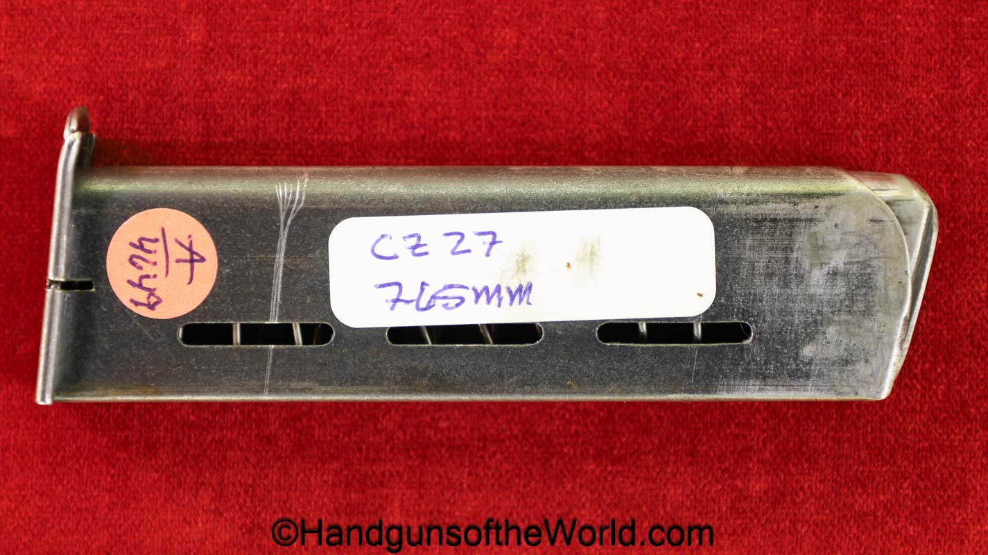 Original CZ-27, 7.65mm Pistol Magazine. Marked on the base “P.Mod.27” About 95% finish remains.