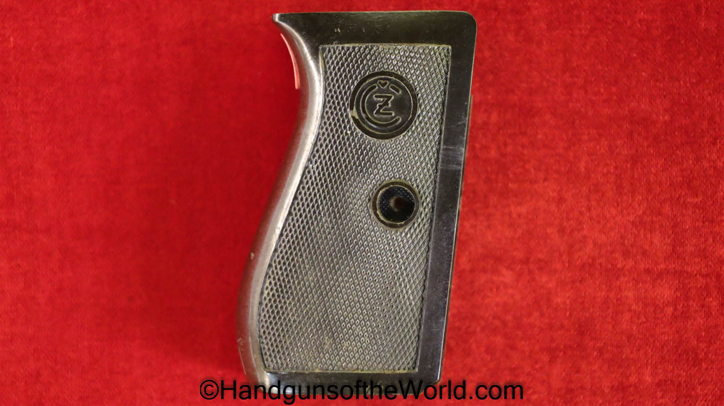 Original CZ-27 Pistol Grips. 1 Piece brown Bakelite with the CZ logo. The toes show minor chips. Otherwise, VG+.