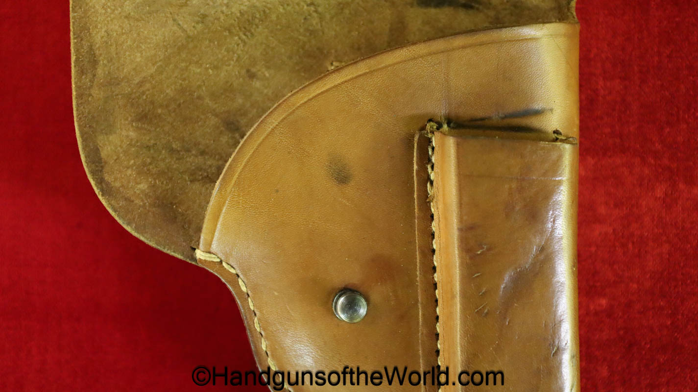 Original CZ-27 WWII Pistol Holster. This is tan leather marked P.Mod 27-1942-WaA76-CZ logo on the back. Overall VG+.