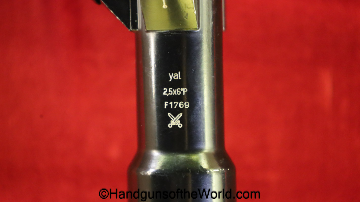 Czech VZ-54 Sniper, 7.62mm. This is chamber marked SHE 56, and is Czech proof/dated 1992 on the barrel. There are No importer markings. This an excellent pistol grip wooden stock, with all matching numbers to include the sniper scope, marked YAL 2.5 x 6P-F1769. This retains about 98% blue and the bore is excellent. This includes a canvas scope cover and sight hood.
