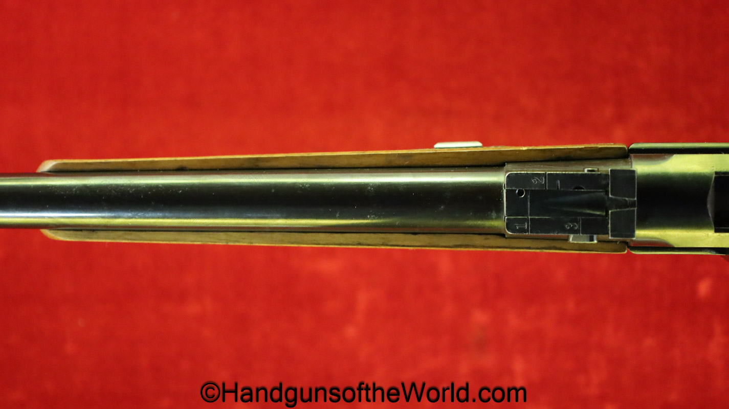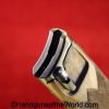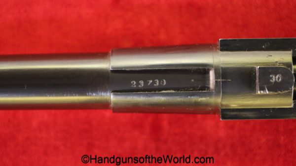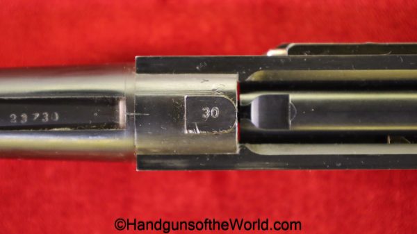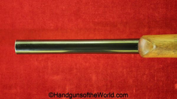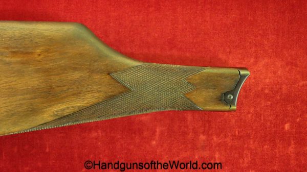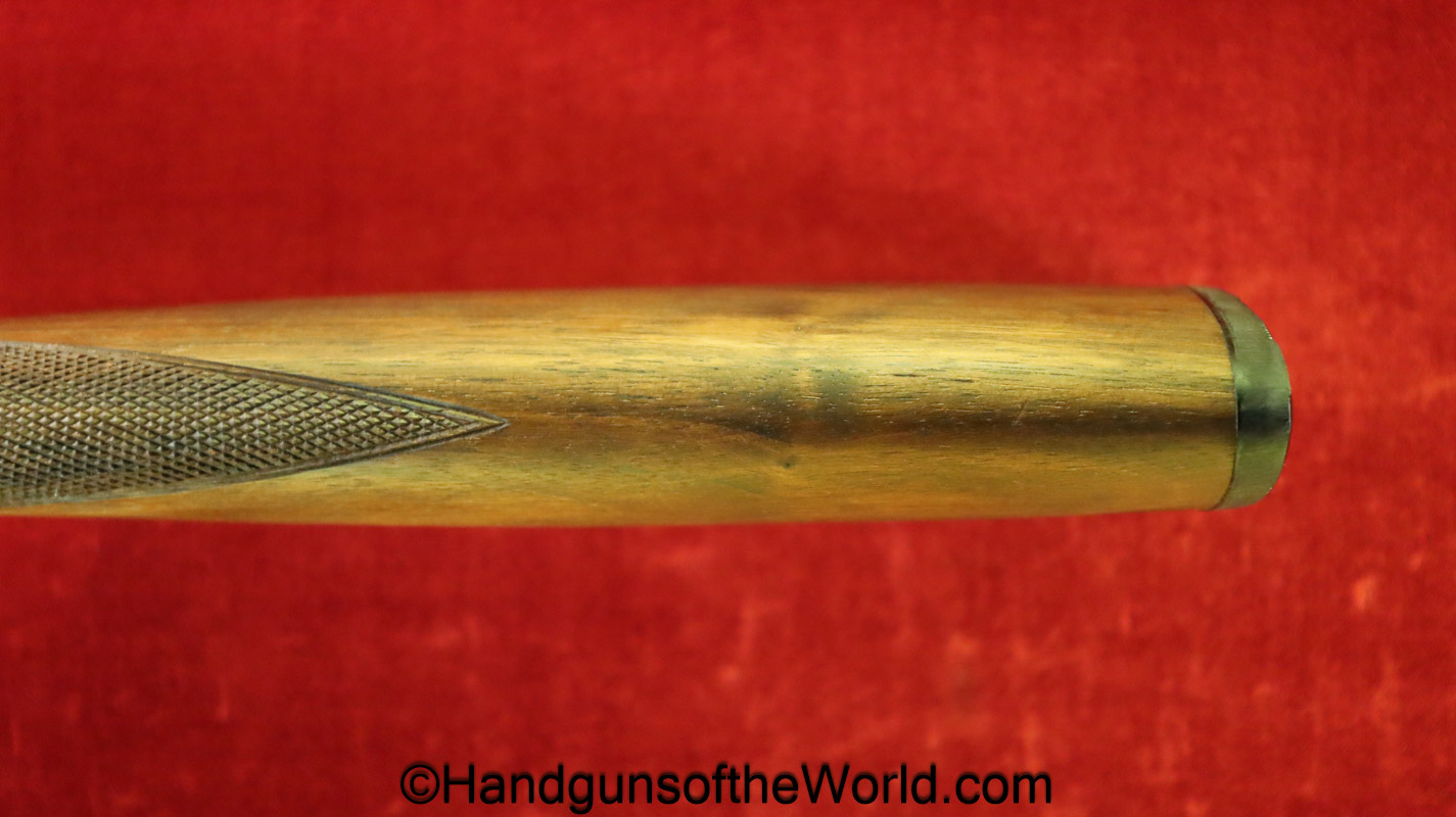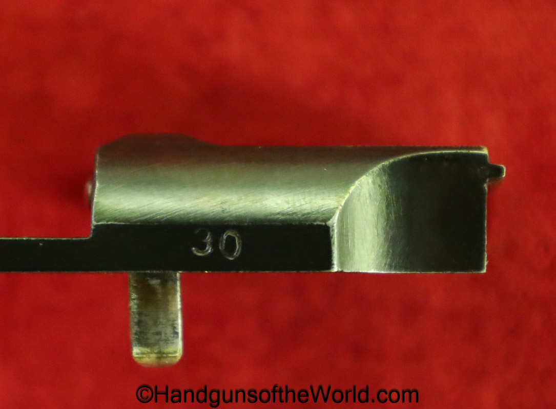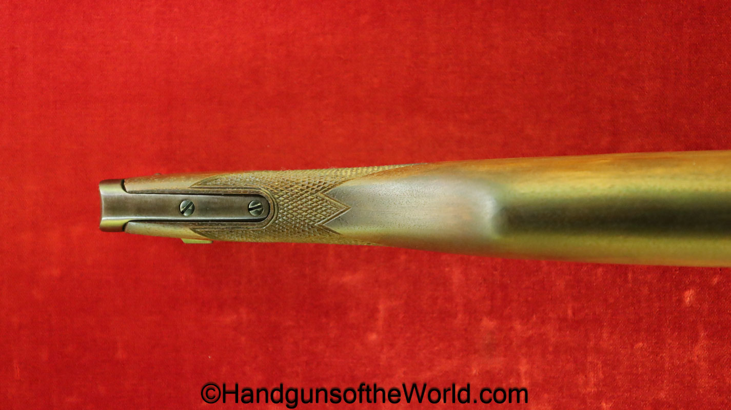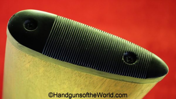 DWM 1902 Old model Carbine. 7.65 Parabellum (30 caliber). This has an 11 7/8″ barrel, and has all matching numbers with the grip safety renumbered to match. The wooden forearms shows a screw, and has been sanded/repaired. This has 99% of an old refinish and the bore is VG++. A proper style, non factory wooden shoulder stock completes this set.