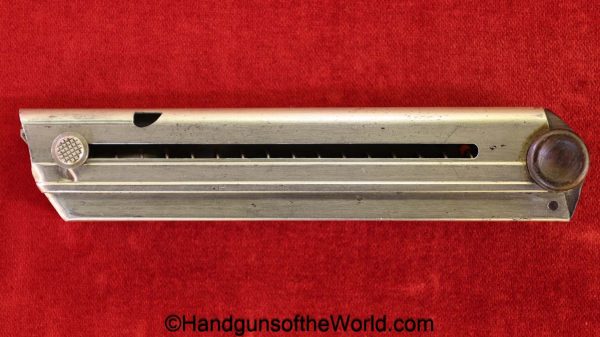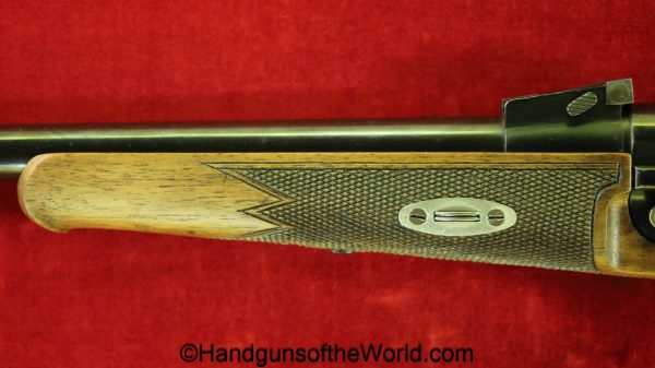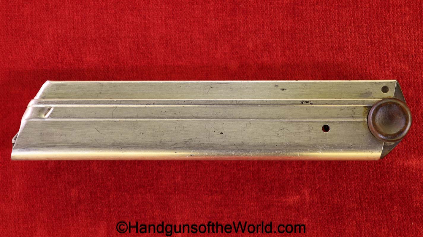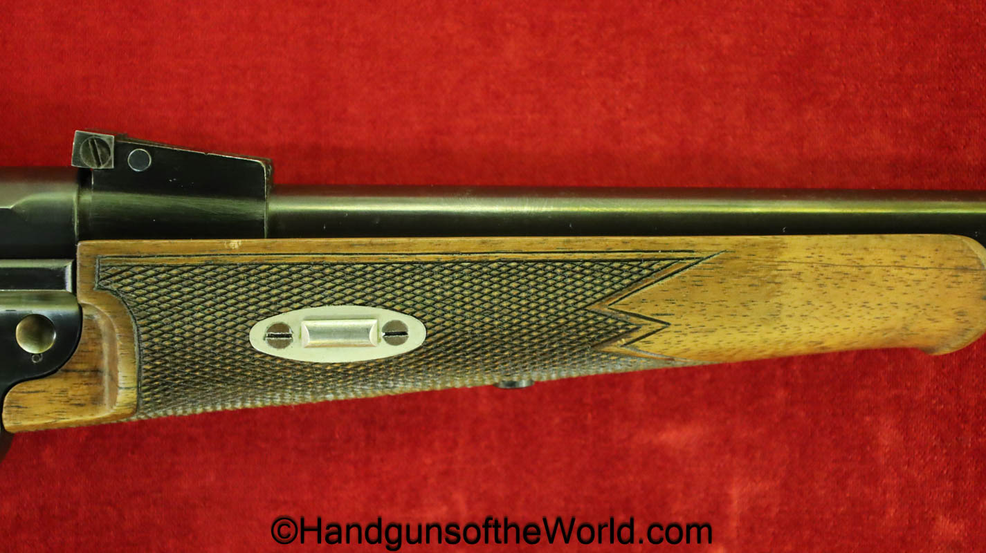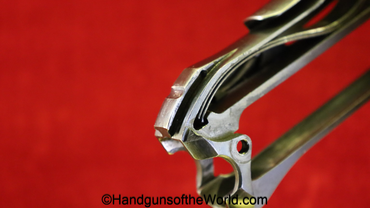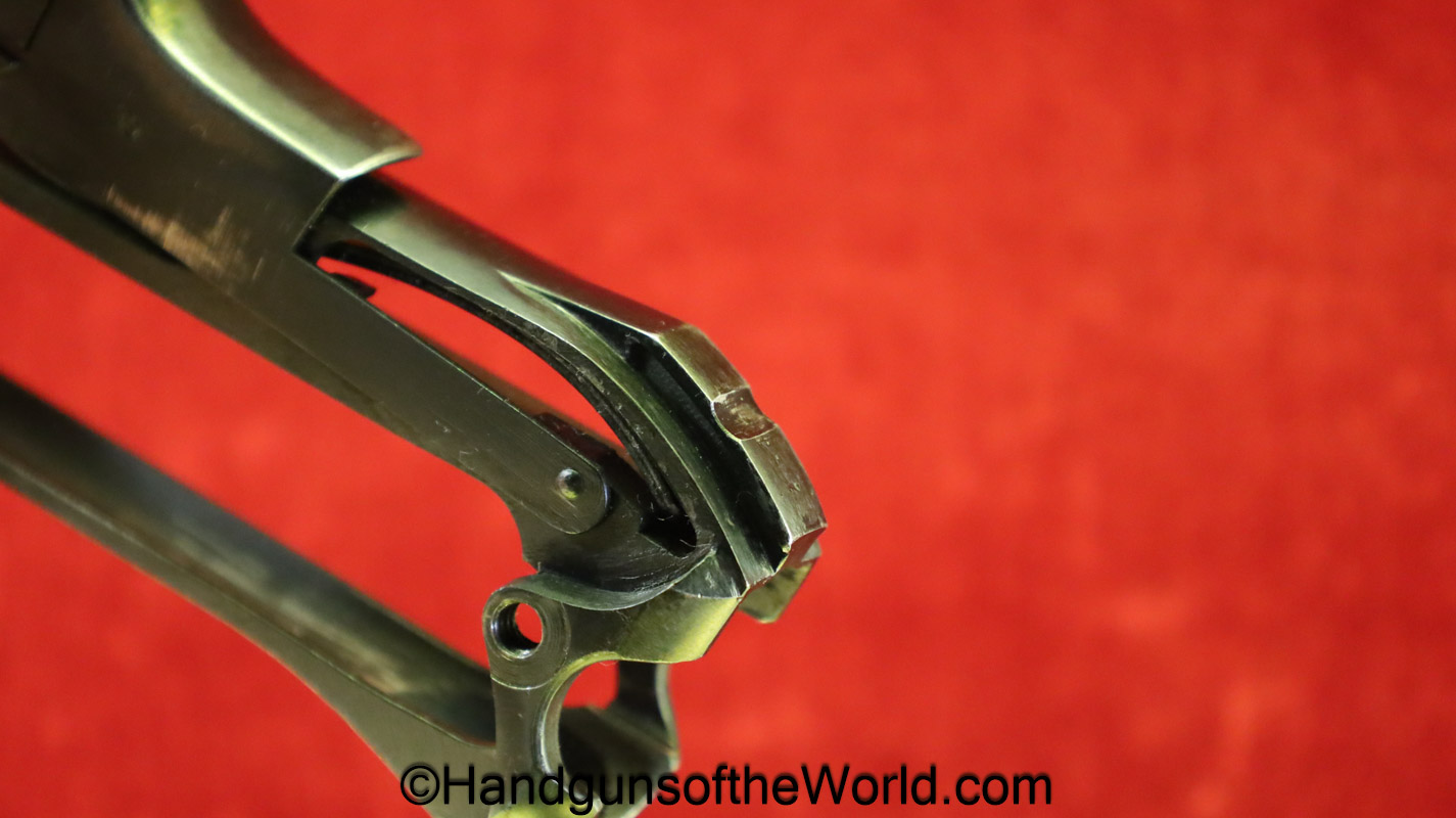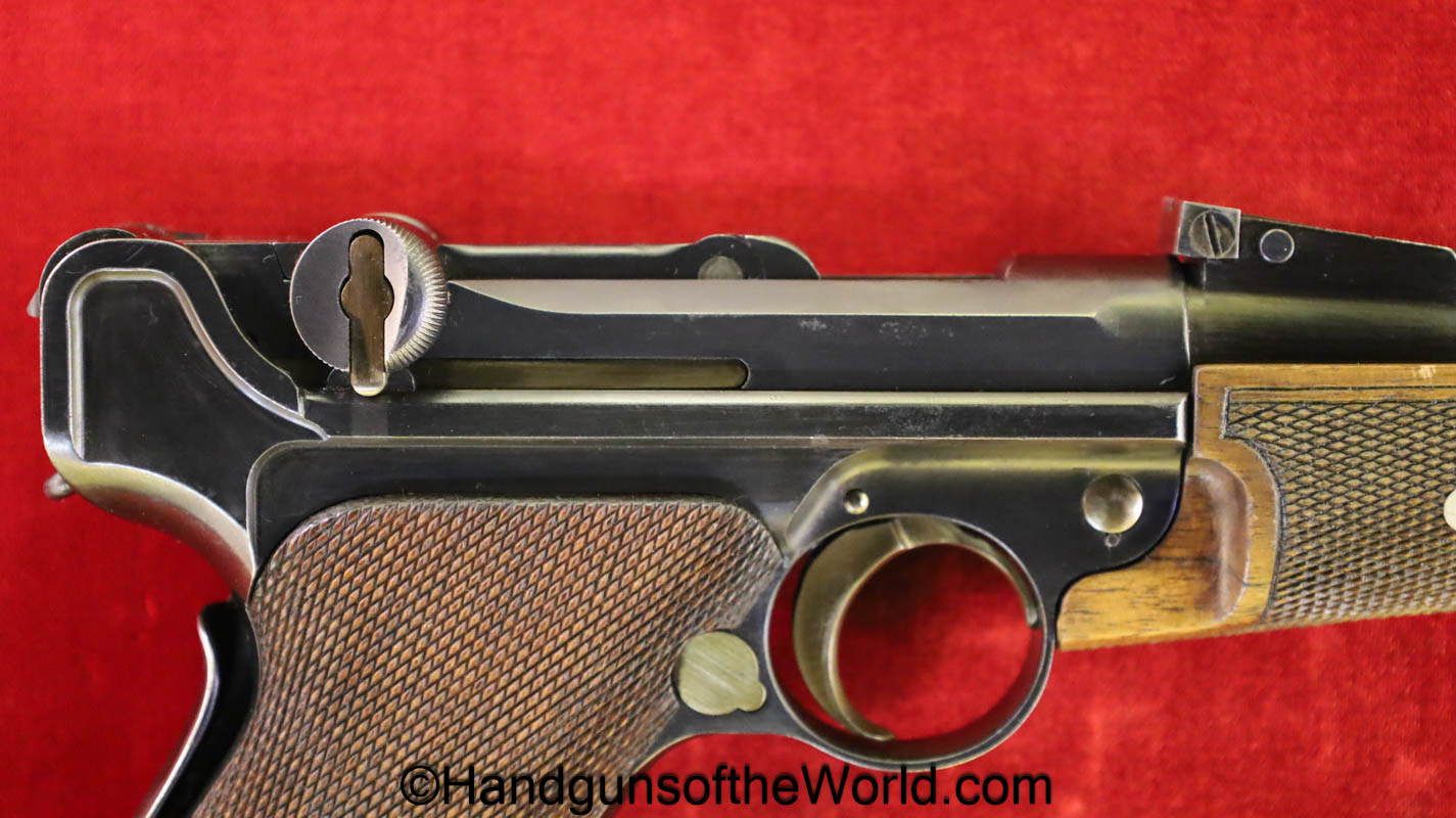 DWM 1902 Old model Carbine. 7.65 Parabellum (30 caliber). This has an 11 7/8″ barrel, and has all matching numbers with the grip safety renumbered to match. The wooden forearms shows a screw, and has been sanded/repaired. This has 99% of an old refinish and the bore is VG++. A proper style, non factory wooden shoulder stock completes this set.