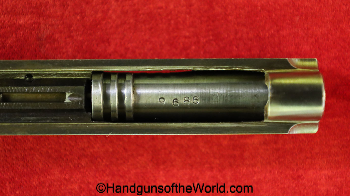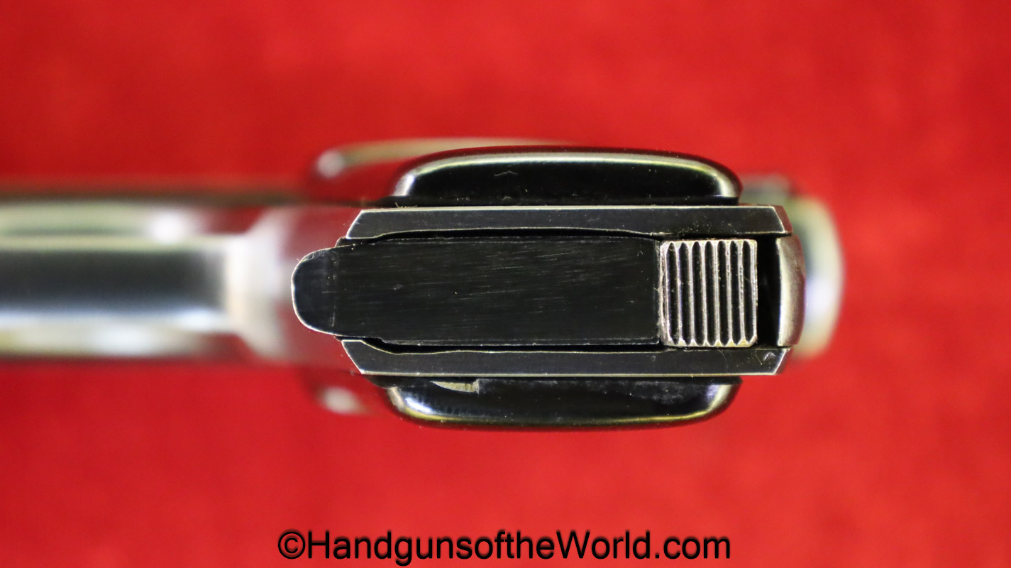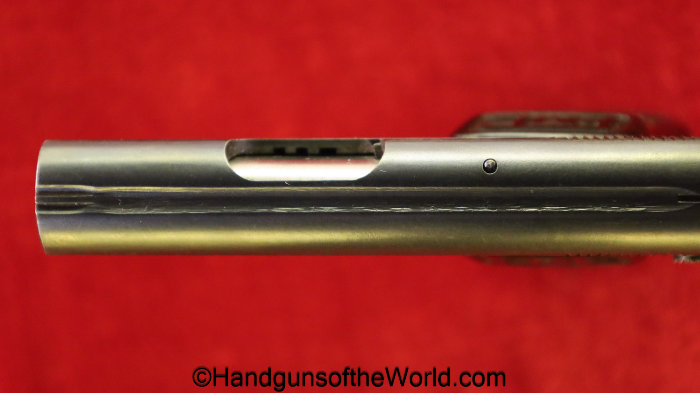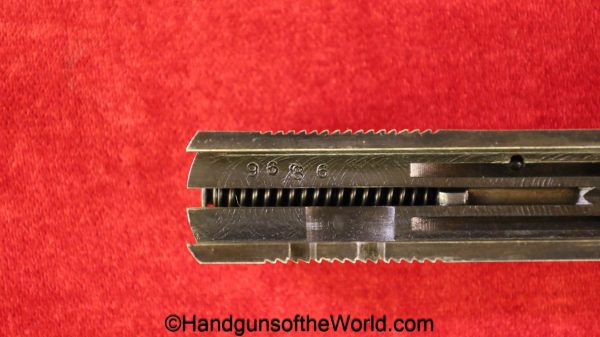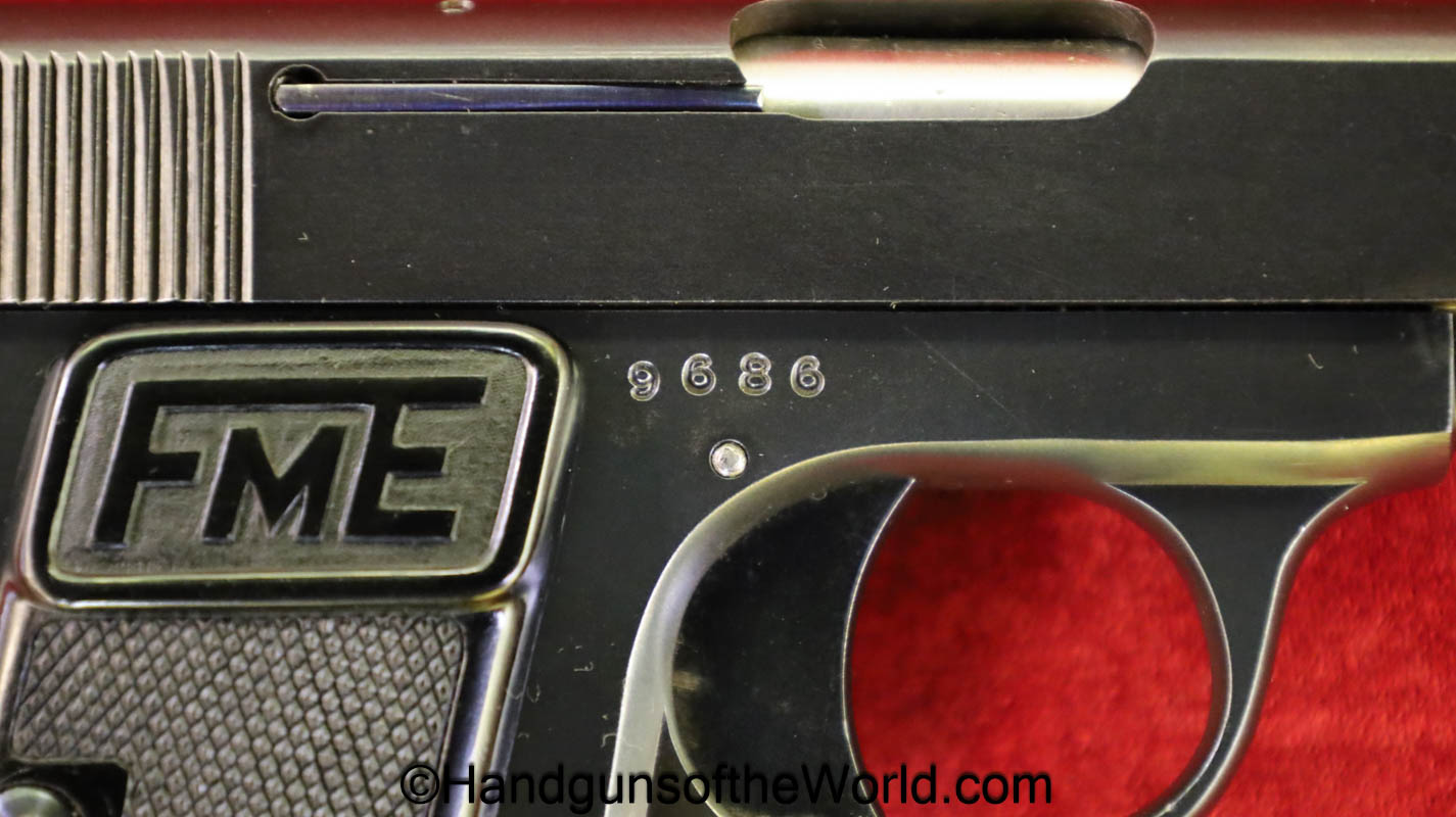 Fabrica De Material De Guerre, VP, 6.35mm. This has proper FME logo black Bakelite grips. This has all matching serial numbers, and 99+% blue with an excellent bore.
