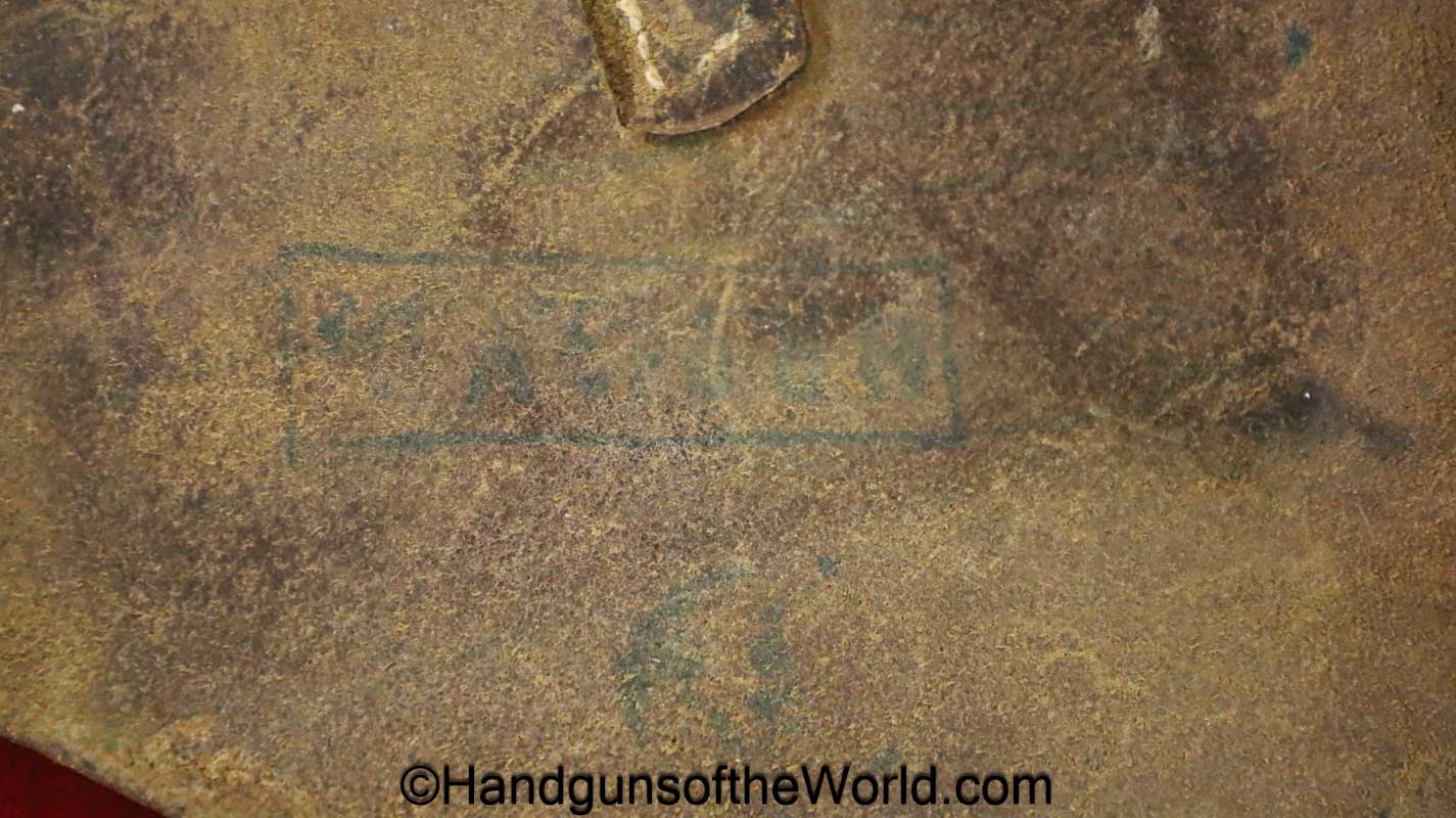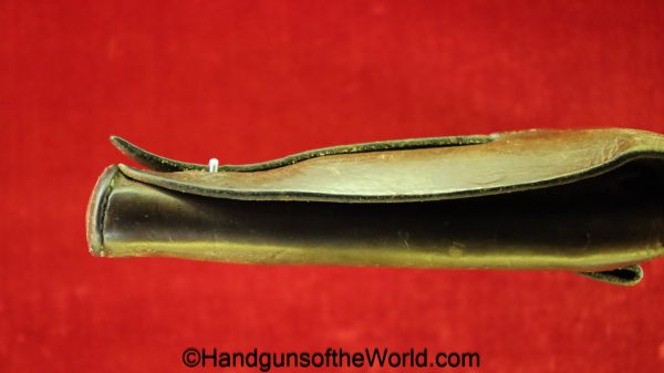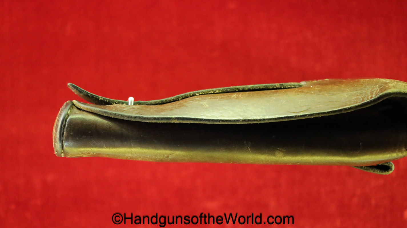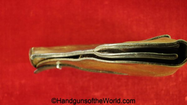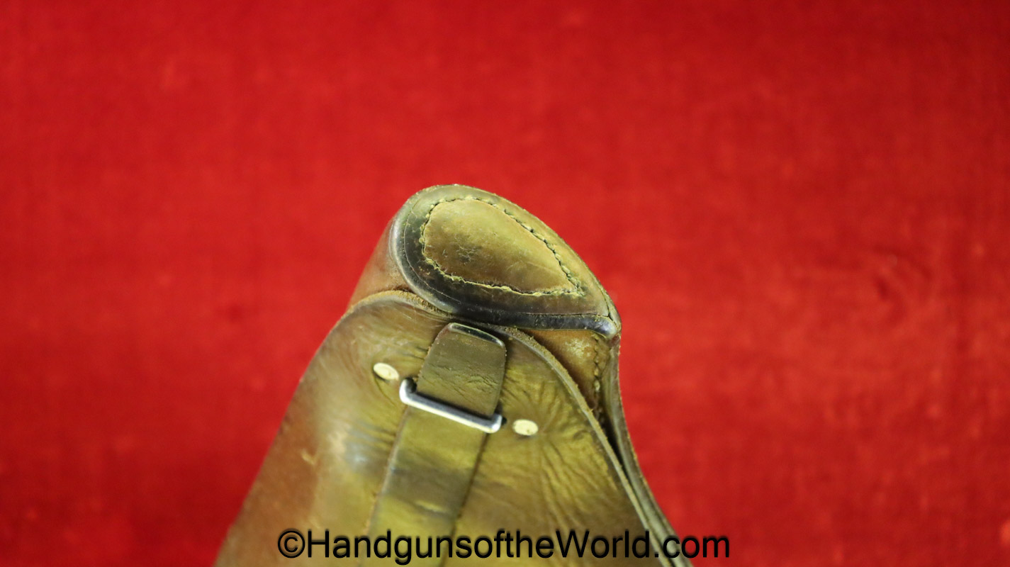 Original Femaru 37M Pistol Holster. This is a Hungarian pattern, brown leather with dual magazine pouches on the front. This has aluminum fittings, and ink stamps inside the lid. Overall VG-VG+.