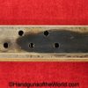 Femaru P.Mod 37, 7.65mm. This is German WWII JHV 43 marked on the left side of the frame above the dark lined walnut grips. This is German WWII WaA173 proofed on the left trigger guard, and has all matching serial numbers to include the finger extension magazine. The blue rates about 80% and the bore is VG+.