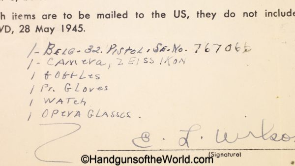 FN 1922 Browning, 7.65mm, German WWII Issue-Full Rig with Capture Paper