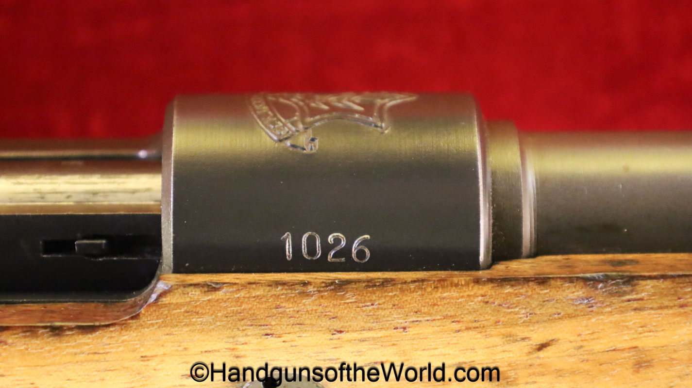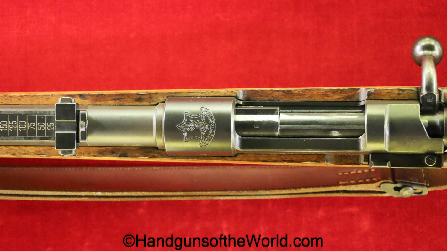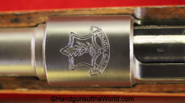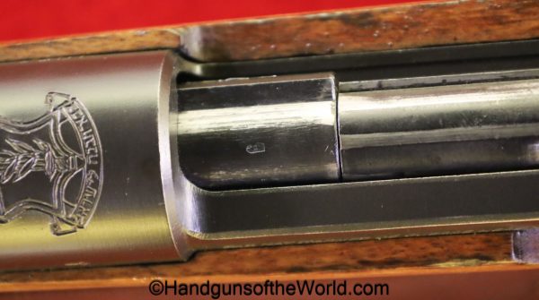 FN Israeli 98K, .22lr. This is a single shot with the Israeli crest on the chamber. The walnut stock has been sanded some, and this has been assembled from many different rifles. About 1000 were built for the IDF. This one has no importer markings with about 98% finish, and the bore is excellent. A sling and sight hood will be included.