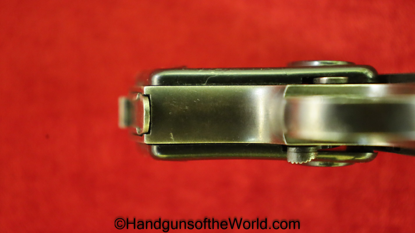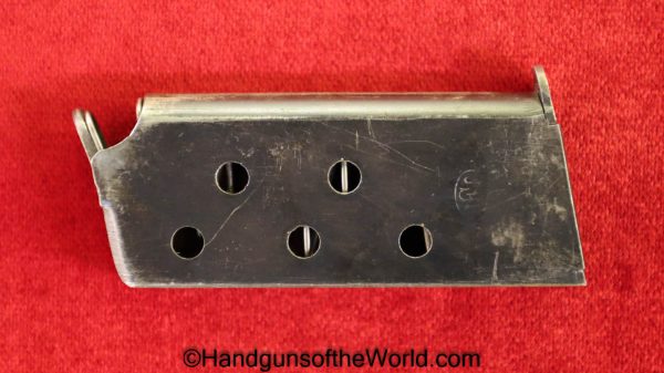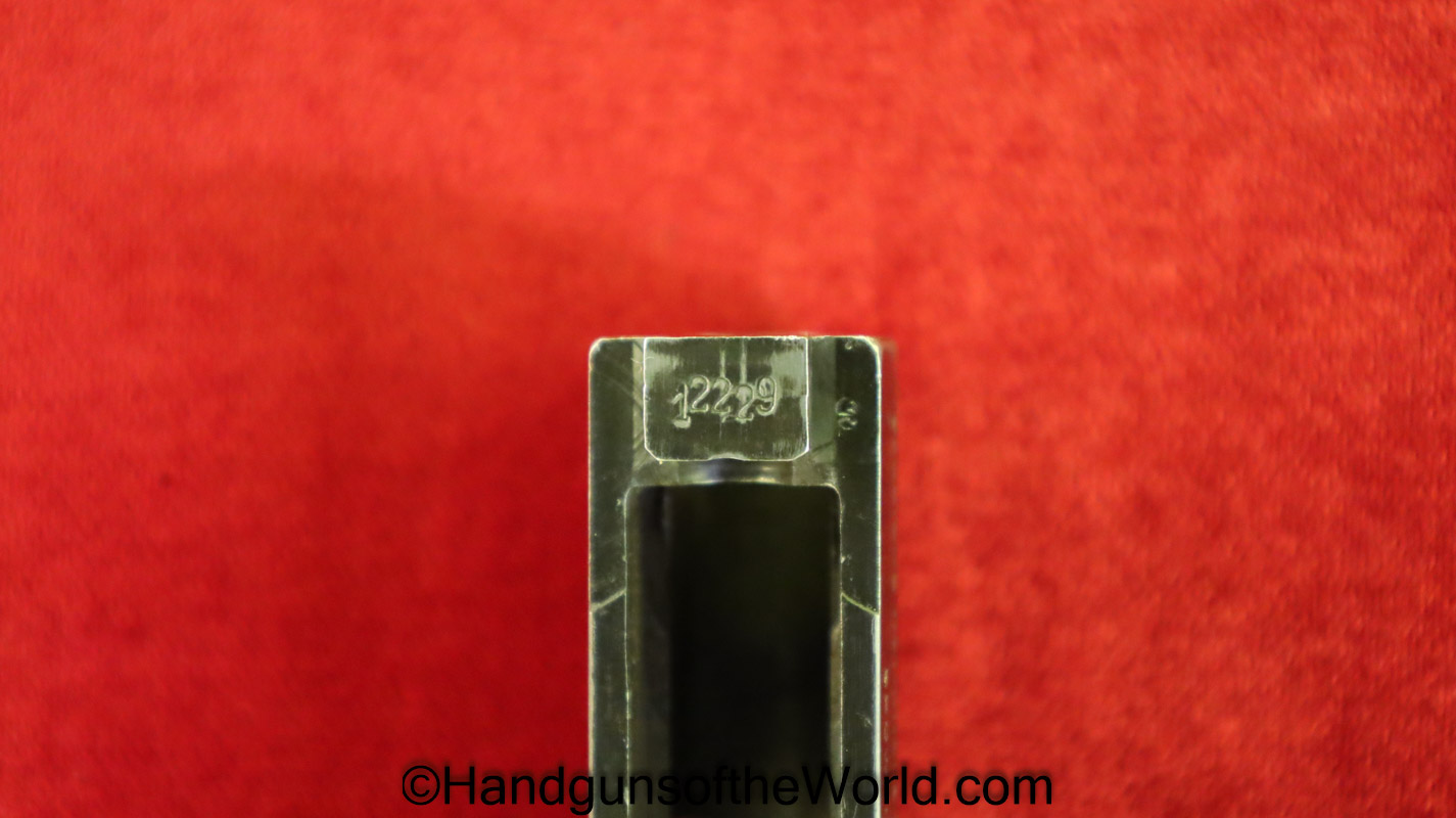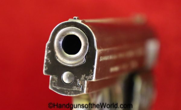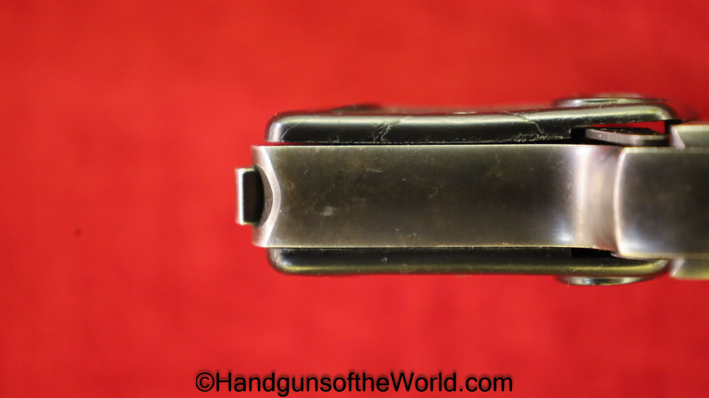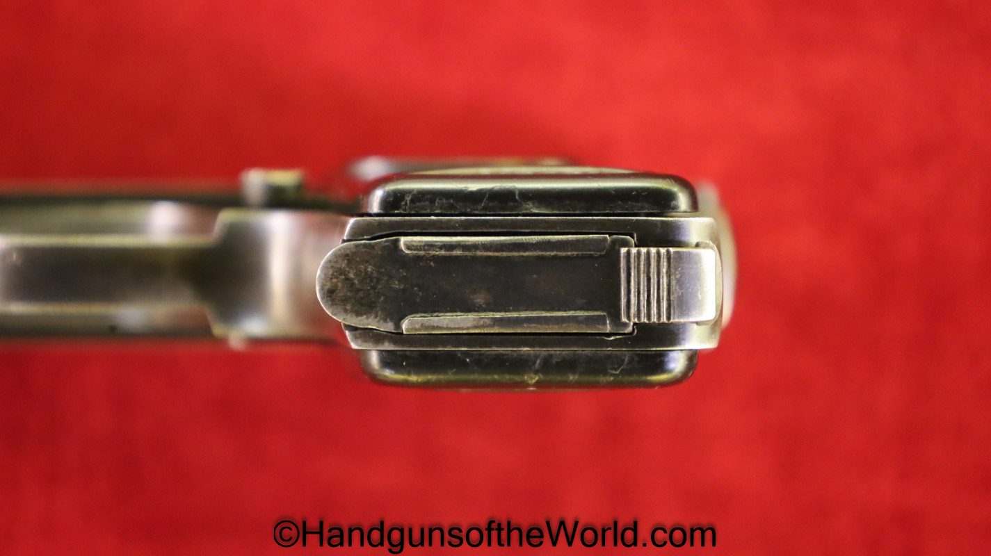 FN Baby Browning, 6.35mm. This has proper black Bakelite grips with Baby at the bottoms. This is one of about 50000 built pre-1940, prior to the German WWII invasion. This retains about 92% blue, and the bore is VG+.