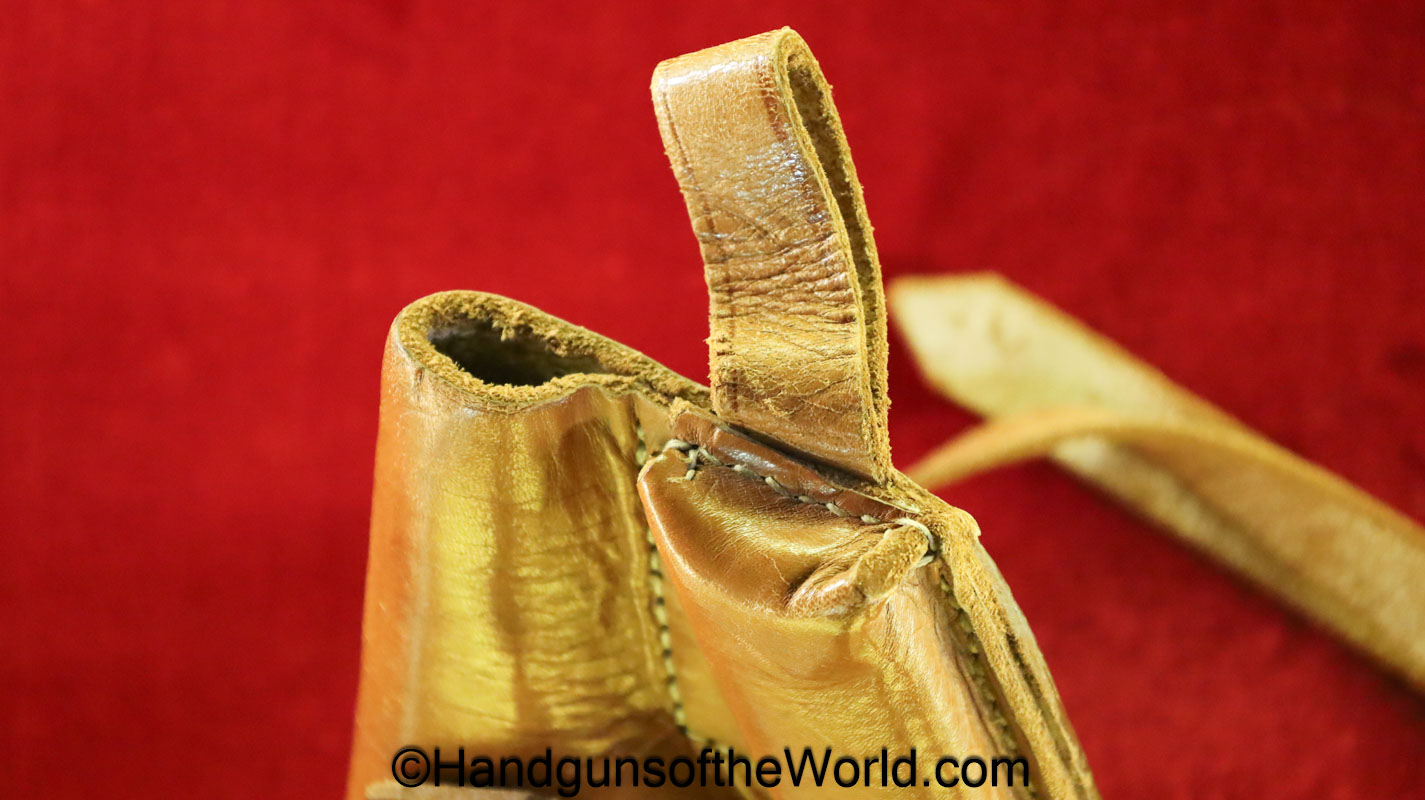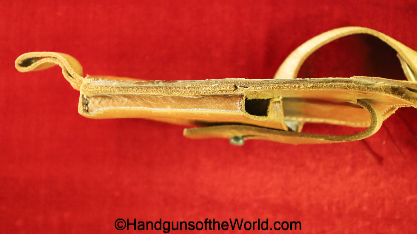 Original FN Browning Shoulder Holster. Tan leather with German WaA ink stamp on back of the tab, otherwise unmarked. Overall VG++. This will also fit the Kommer IV, Rheinmetall and Ortgies Pistols.