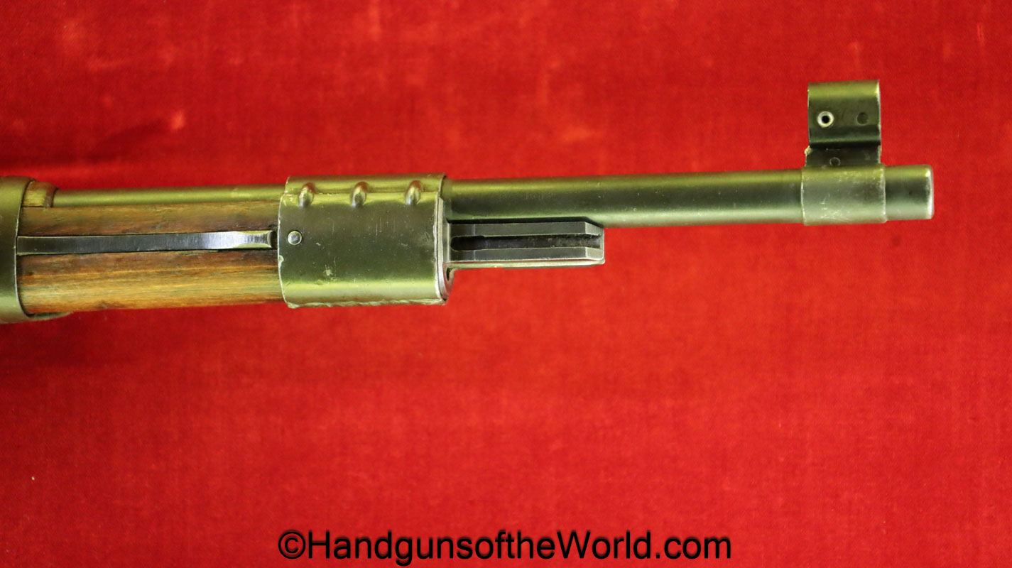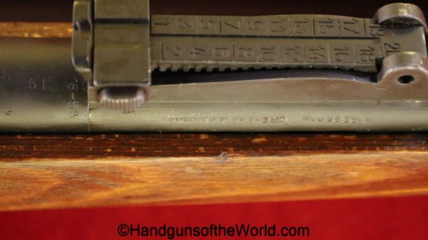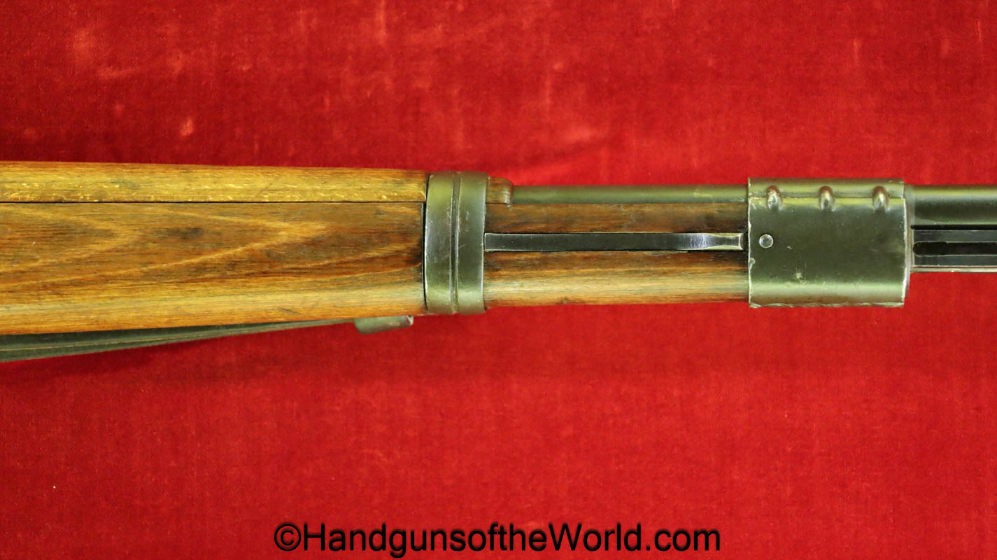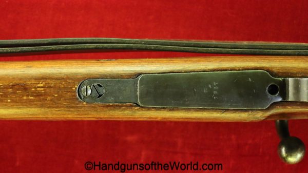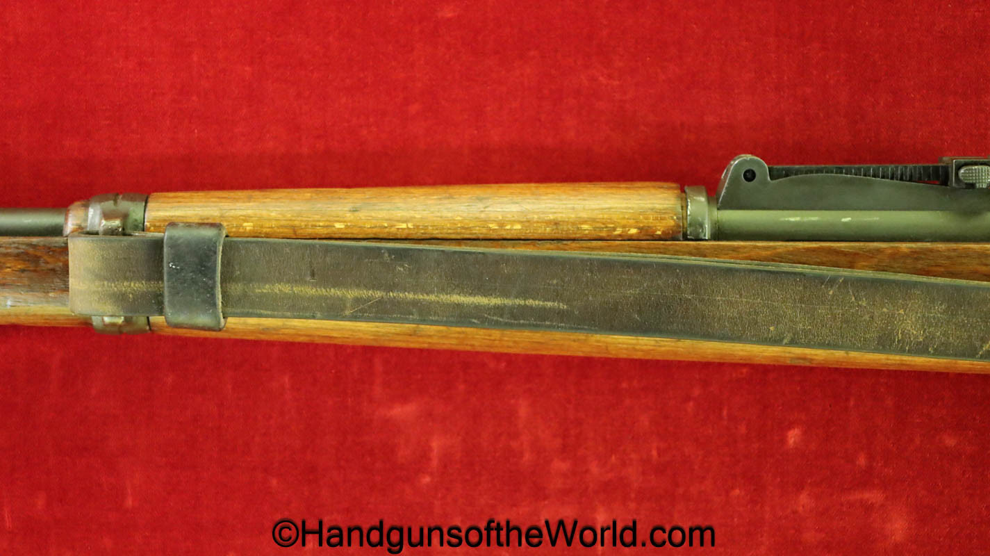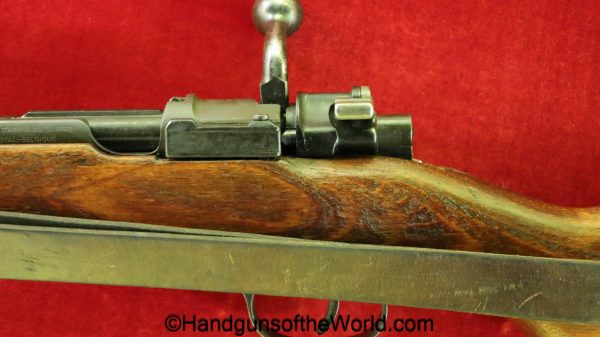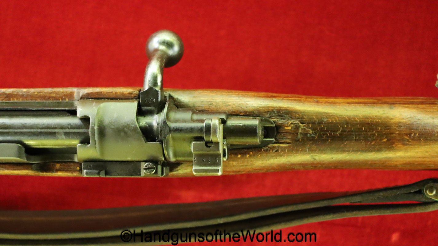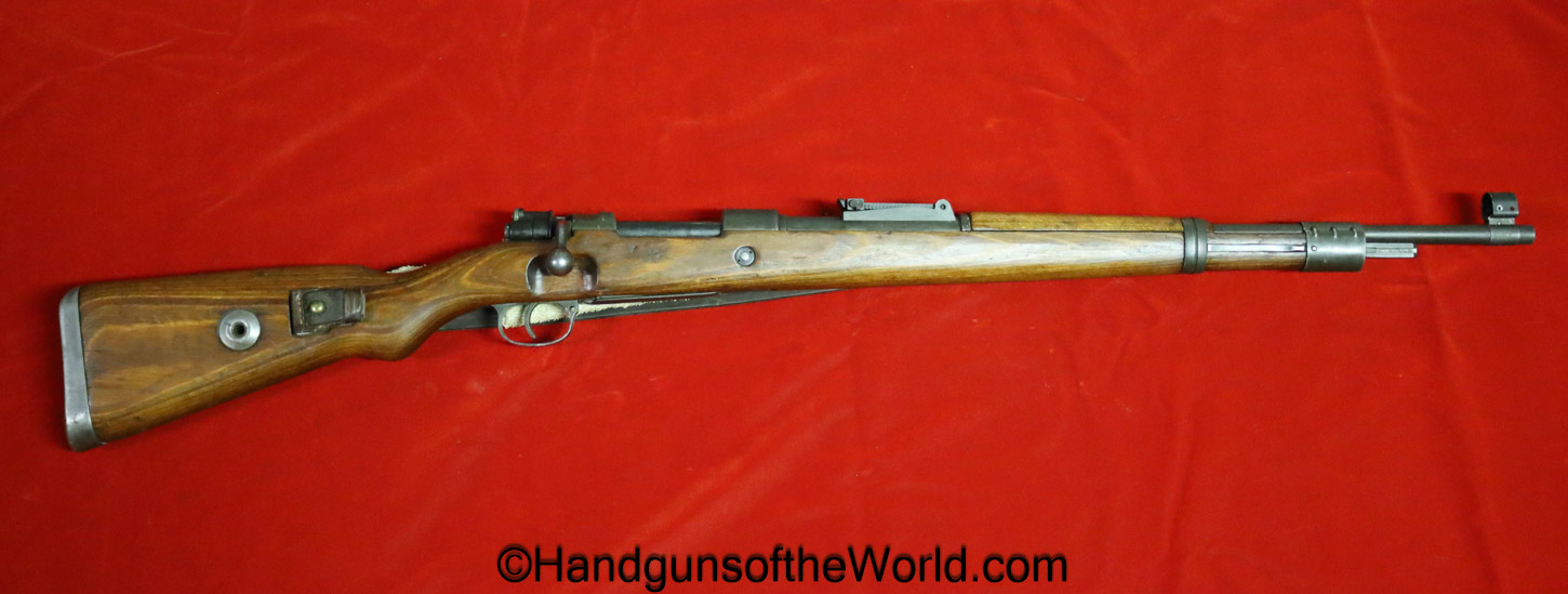 FN Israeli 98K, 7.62mm. This has the Israeli crest on the chamber, and the barrel is dated 6/58. This is post-war assembled and has parts from many different Rifles. The arsenal finish rates about 98% and the bore is excellent. There is an import mark on the receiver. This has a nice wooden stock and comes with a sling and sight hood.