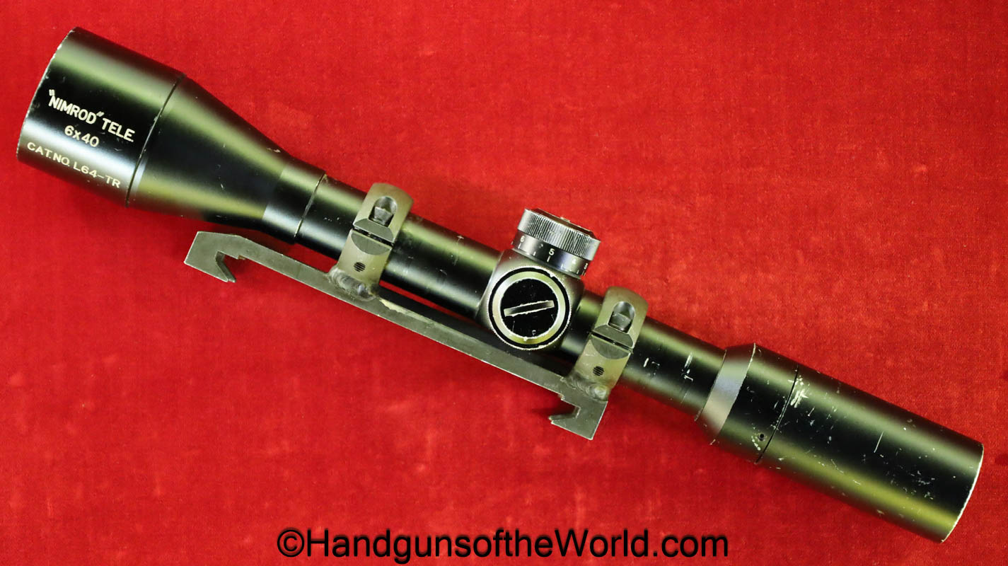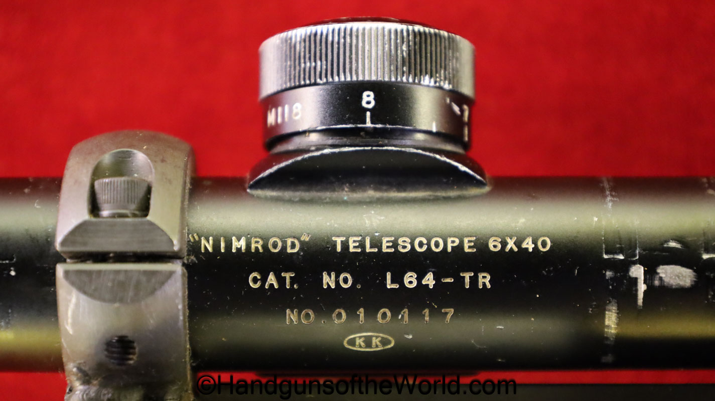 FN Israeli 98K, 7.62mm Sniper Rifle. This has a Rare Nimrod 6×40 power scope with matching scope mount. The barrel is dated 05/58. The bolt is from a different rifle, and this has been arsenal altered with an extended stock and a high cheek rest. This has about 95% finish and the bore is excellent. The wooden stock is VG-VG+. This was likely used during the 6-Day war in 1967. This will come with a sling and sight cover.
