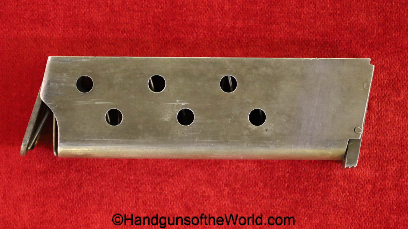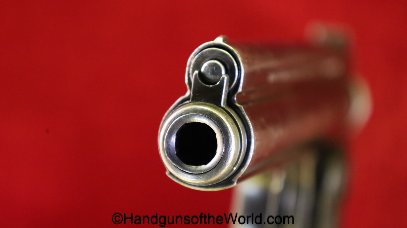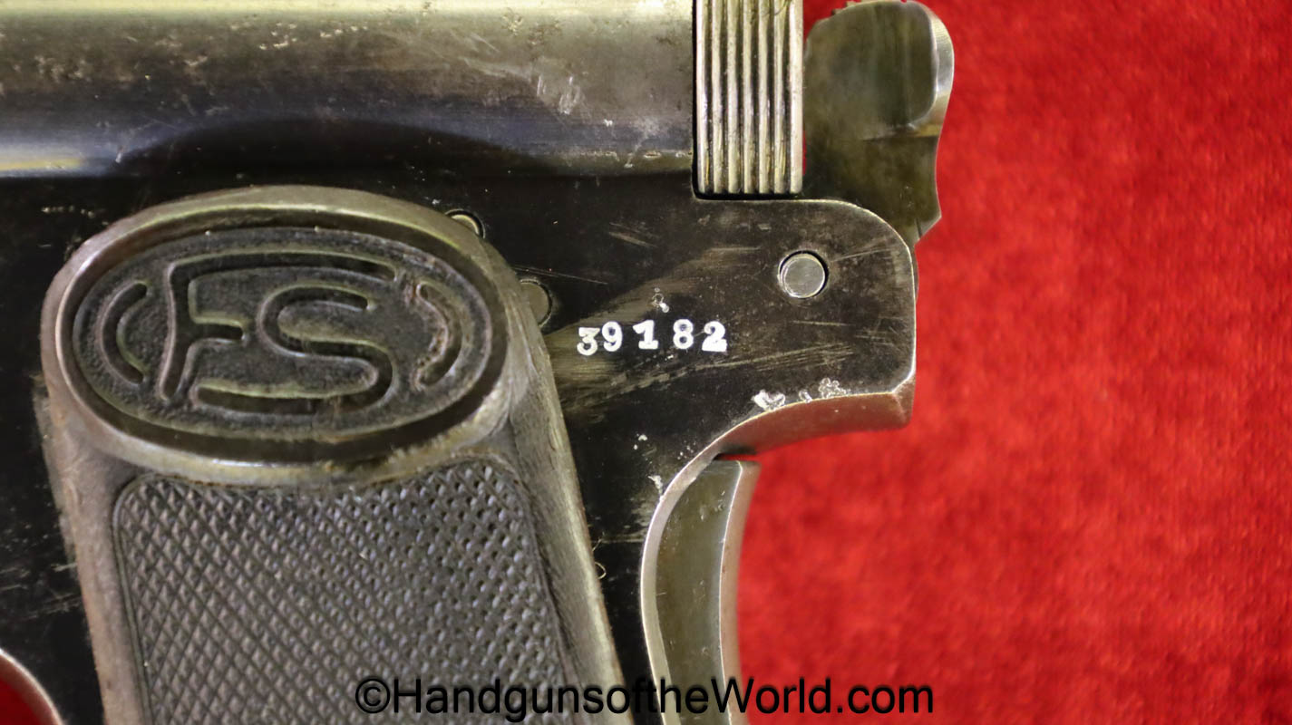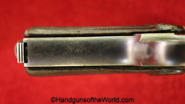 Frommer Stop, .380 caliber. This has the Hungarian Crown of St Stephen proofed on the left trigger guard. This has proper FS logo horn grips. The blue rates about 80% and the bore is VG-VG+.