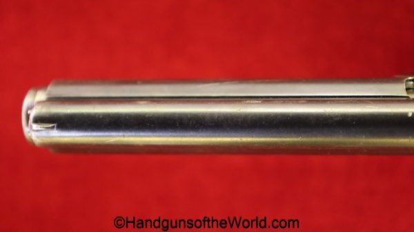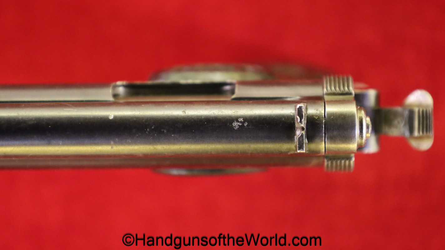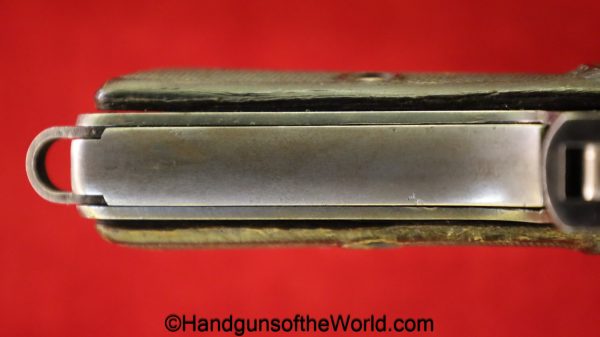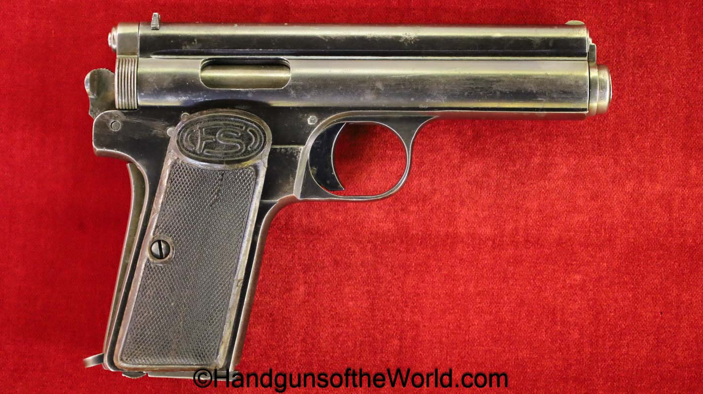 Frommer Stop, .380 caliber. This has the Hungarian Crown of St Stephen proofed on the left trigger guard. This has proper FS logo horn grips. The blue rates about 80% and the bore is VG-VG+.