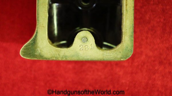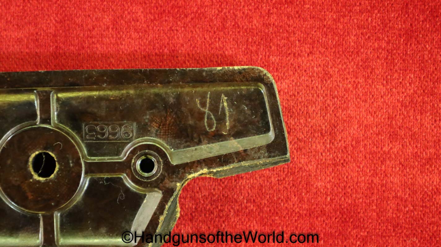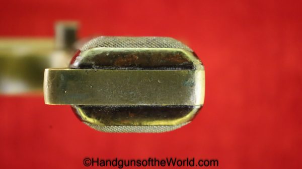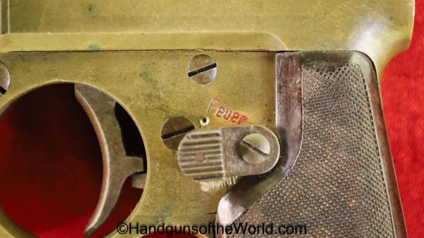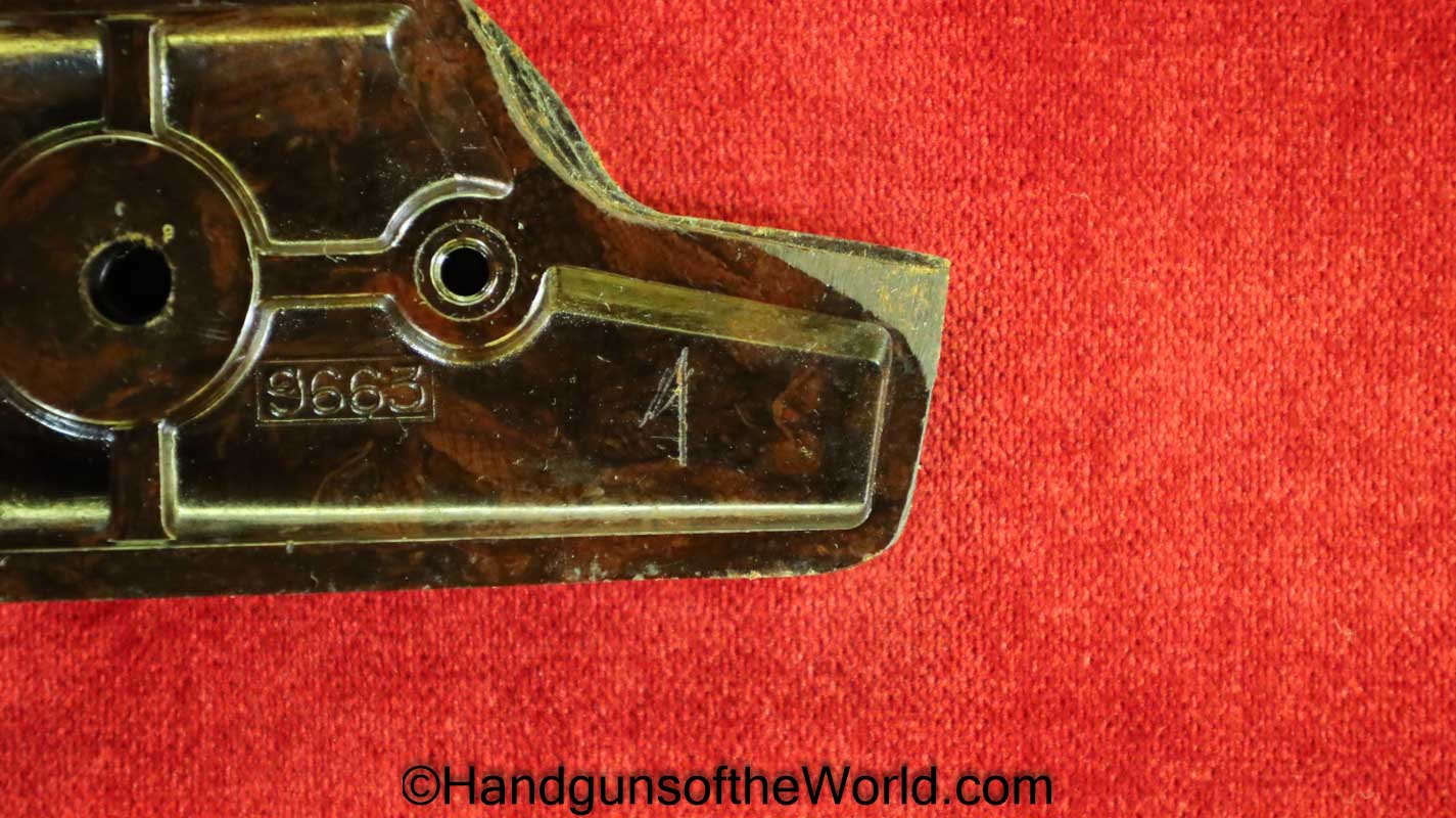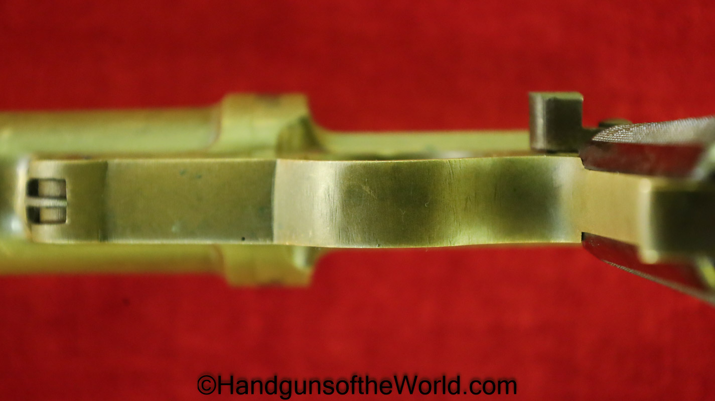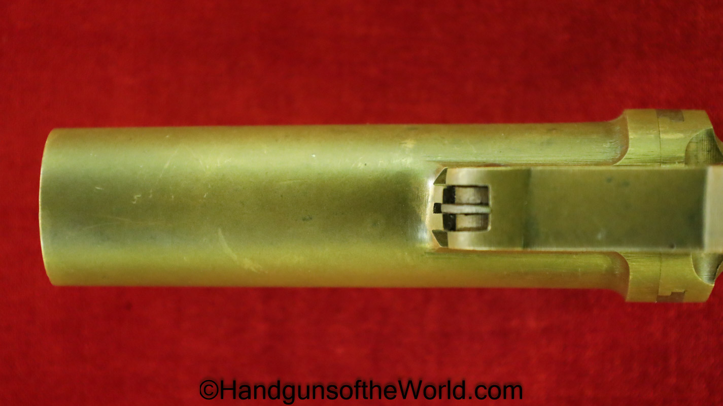 German AWW, 26.5mm Single Barrel Flare Pistol. This is brass with steel fittings and brown Bakelite grips. This is marked AWW 37-L.Nr22 & German Eagle M on the left side of the frame, and a German Eagle M on the right side of the frame. This also has an Eagle M on the top of the barrel. Overall Excellent. Non FFL.