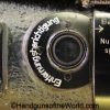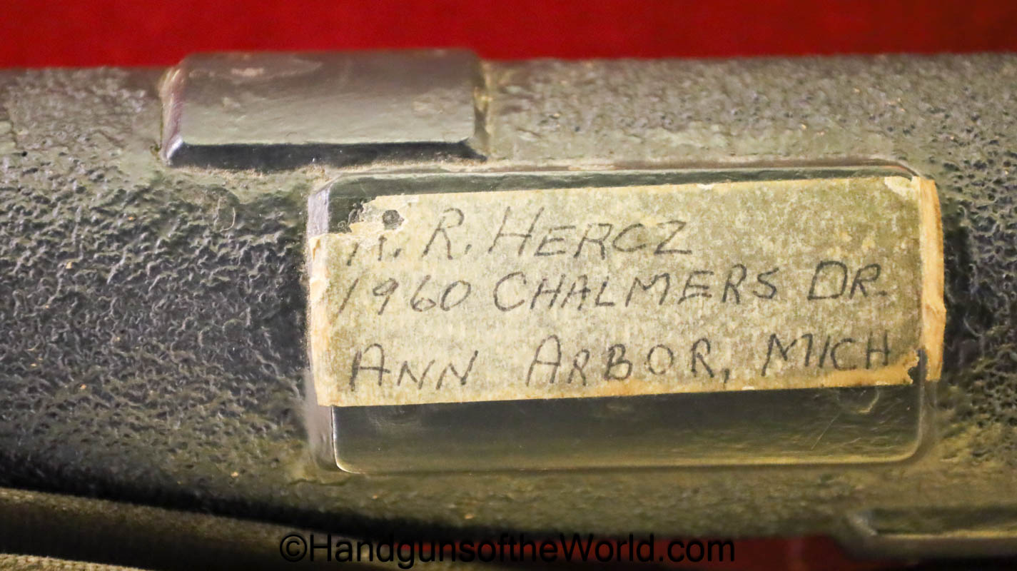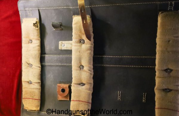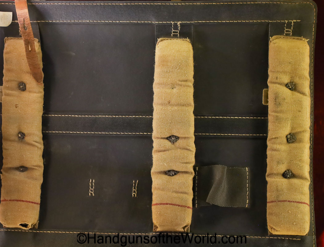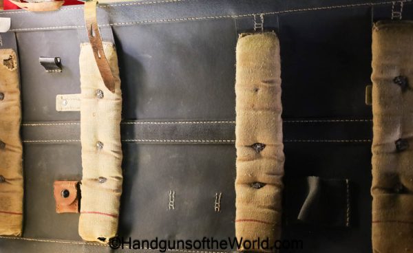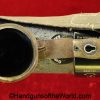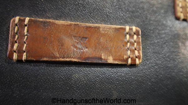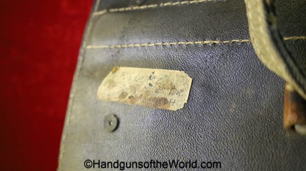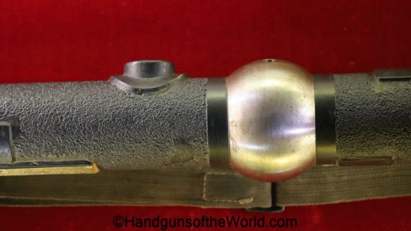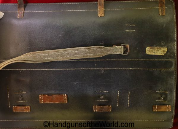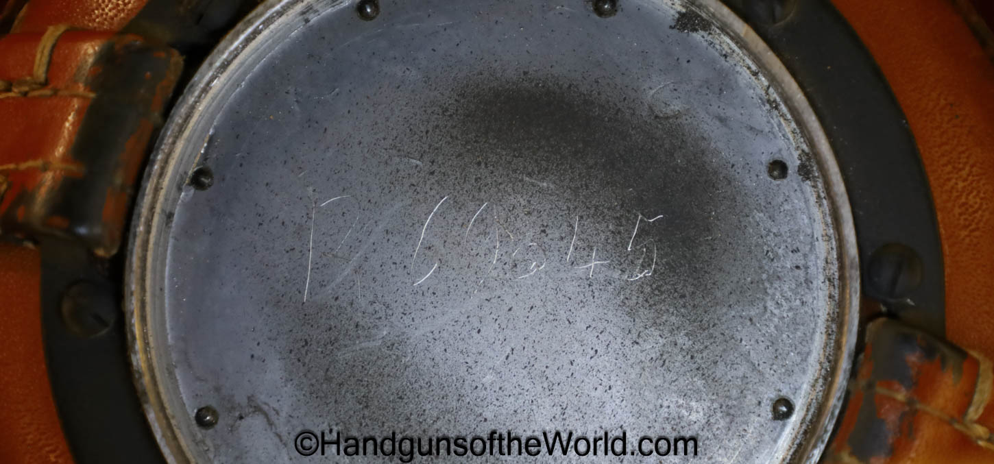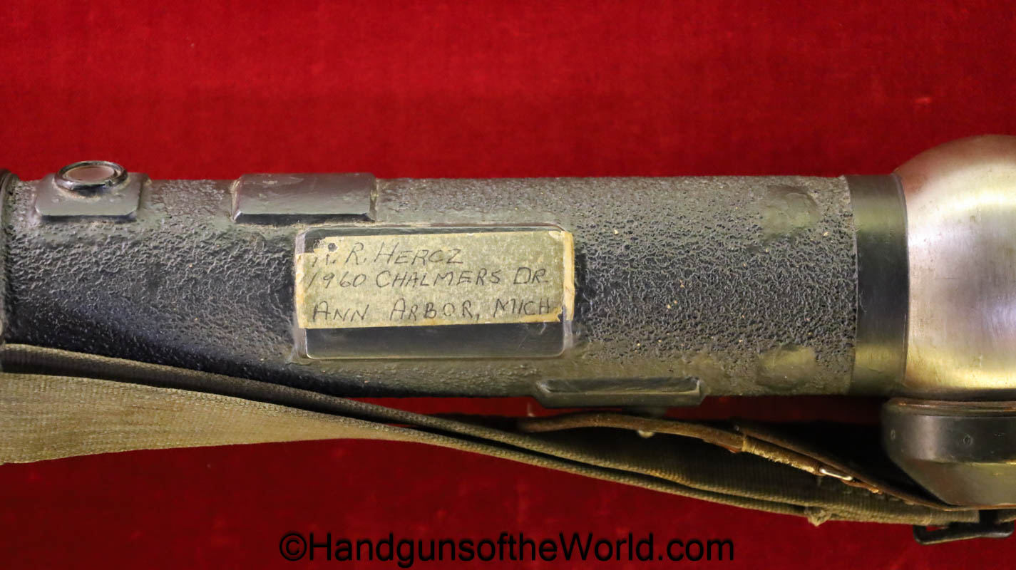 German EM34 Range Finder. This is marker marked CXN=Busch. This has a dark green steel body with all plaques intact. The leather end caps are nice as are the optics. This comes with its original dark green leather shoulder carrying case marked bmj 1943-WaA414. 2 of the leather straps have been lost, overall VG+.