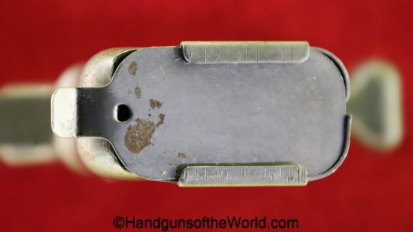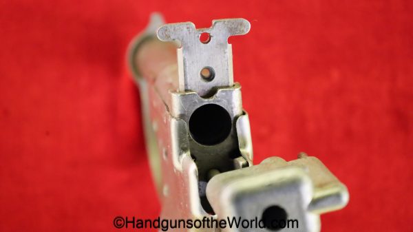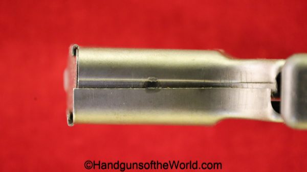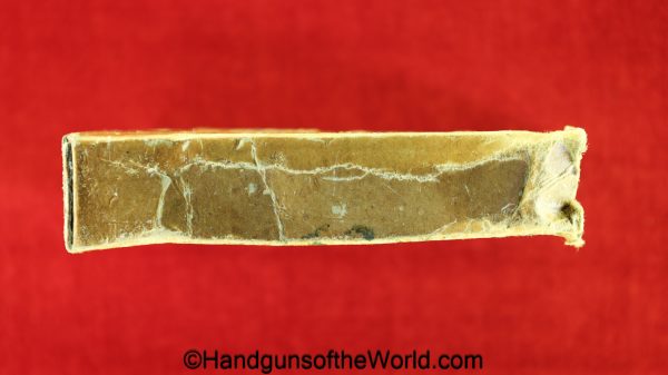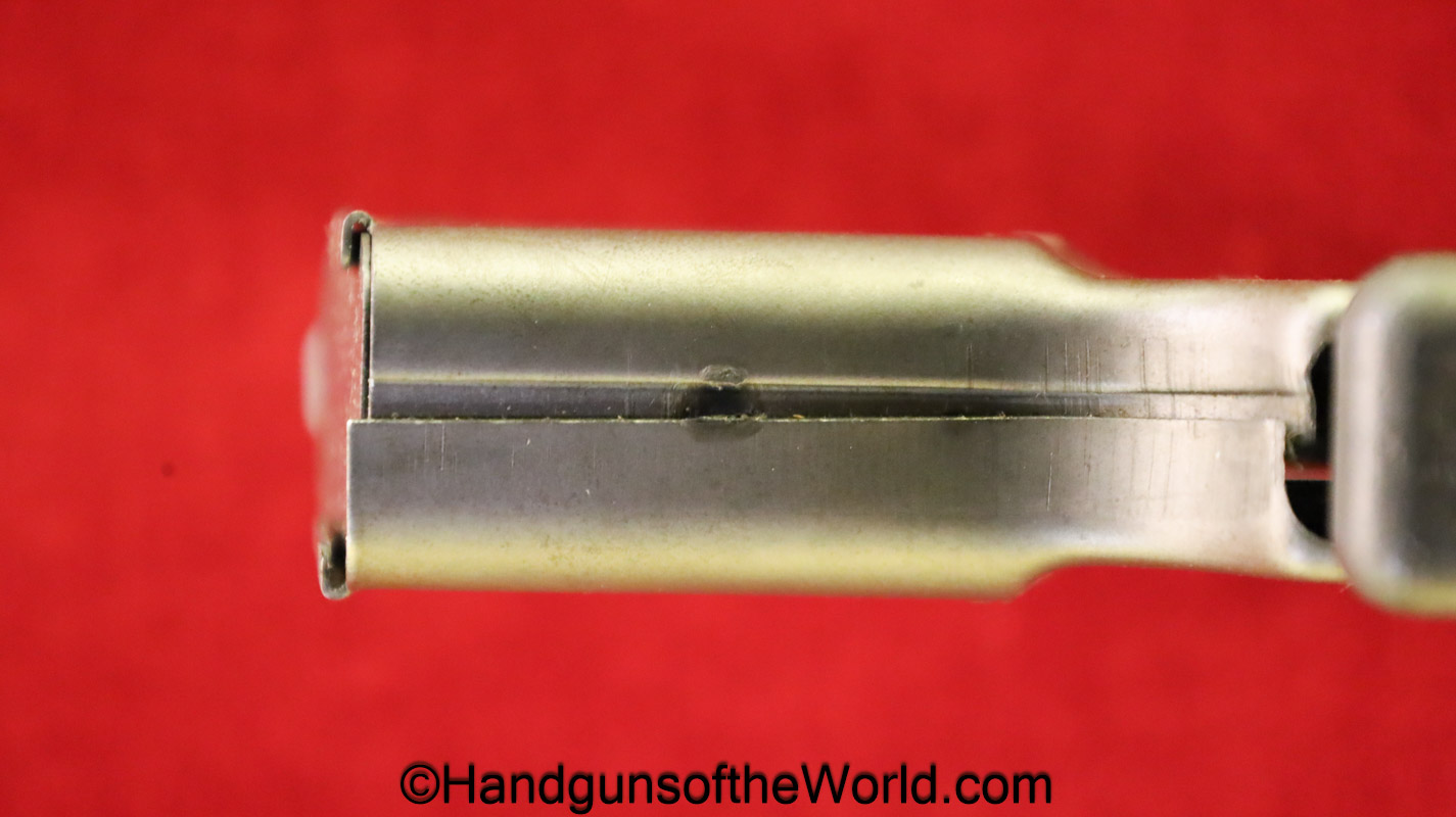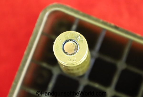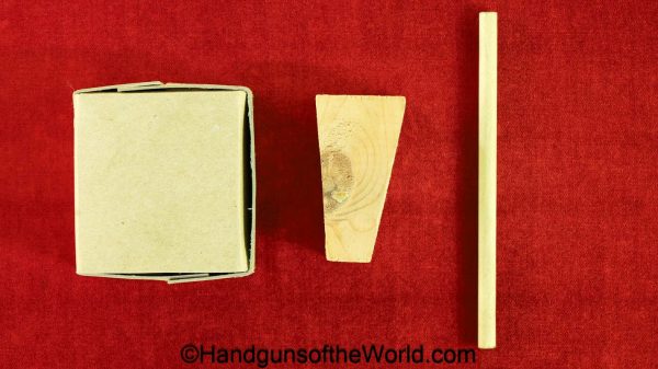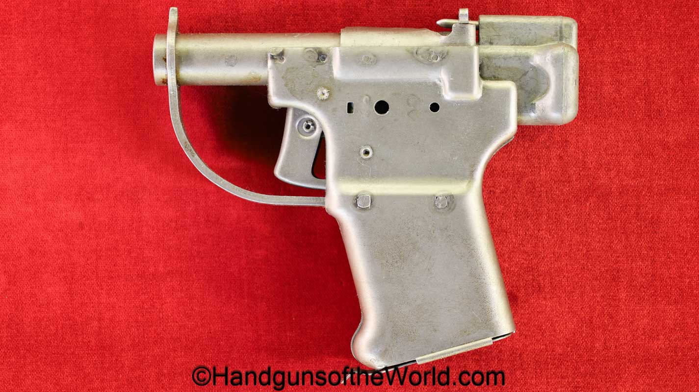 Guidelamp FP-45, .45acp Liberator. 1 of 1 Million built in 1942 by a division of General Motors to covertly arm the resistance fighters during WWII in France-so the story goes. This is excellent overall in the original waxed cardboard box-end piece detached, along with all accessories. The ammo box and wooden ejector dowel are modern replacements. 10 rounds of proper FA 42 marked ammo is included.