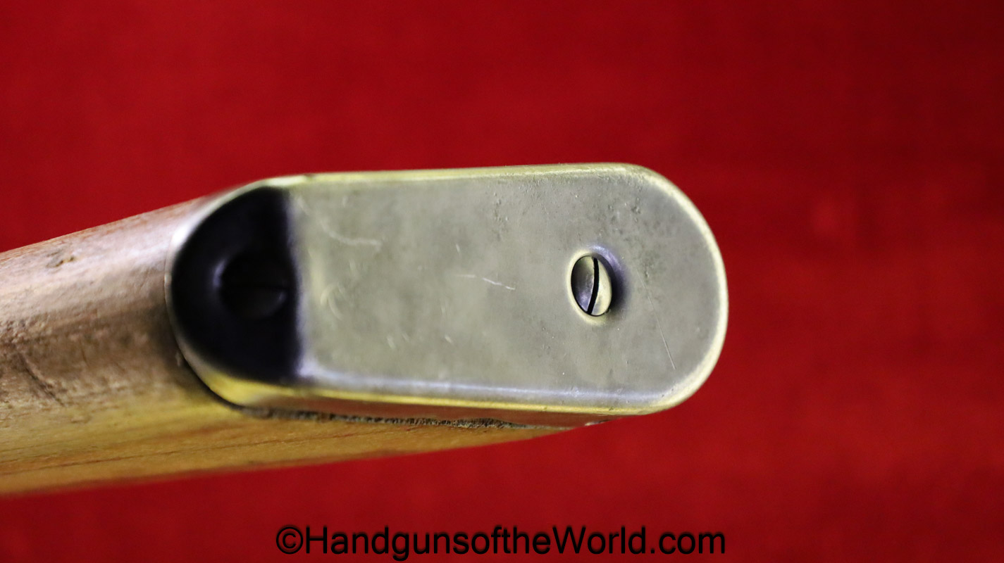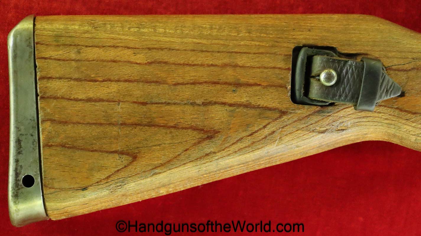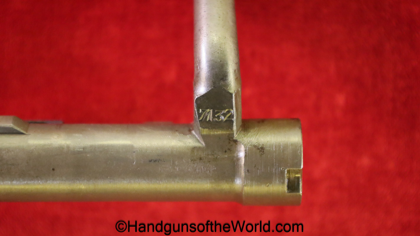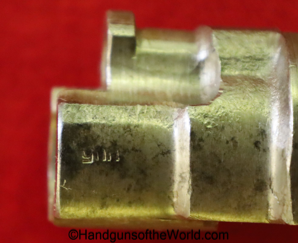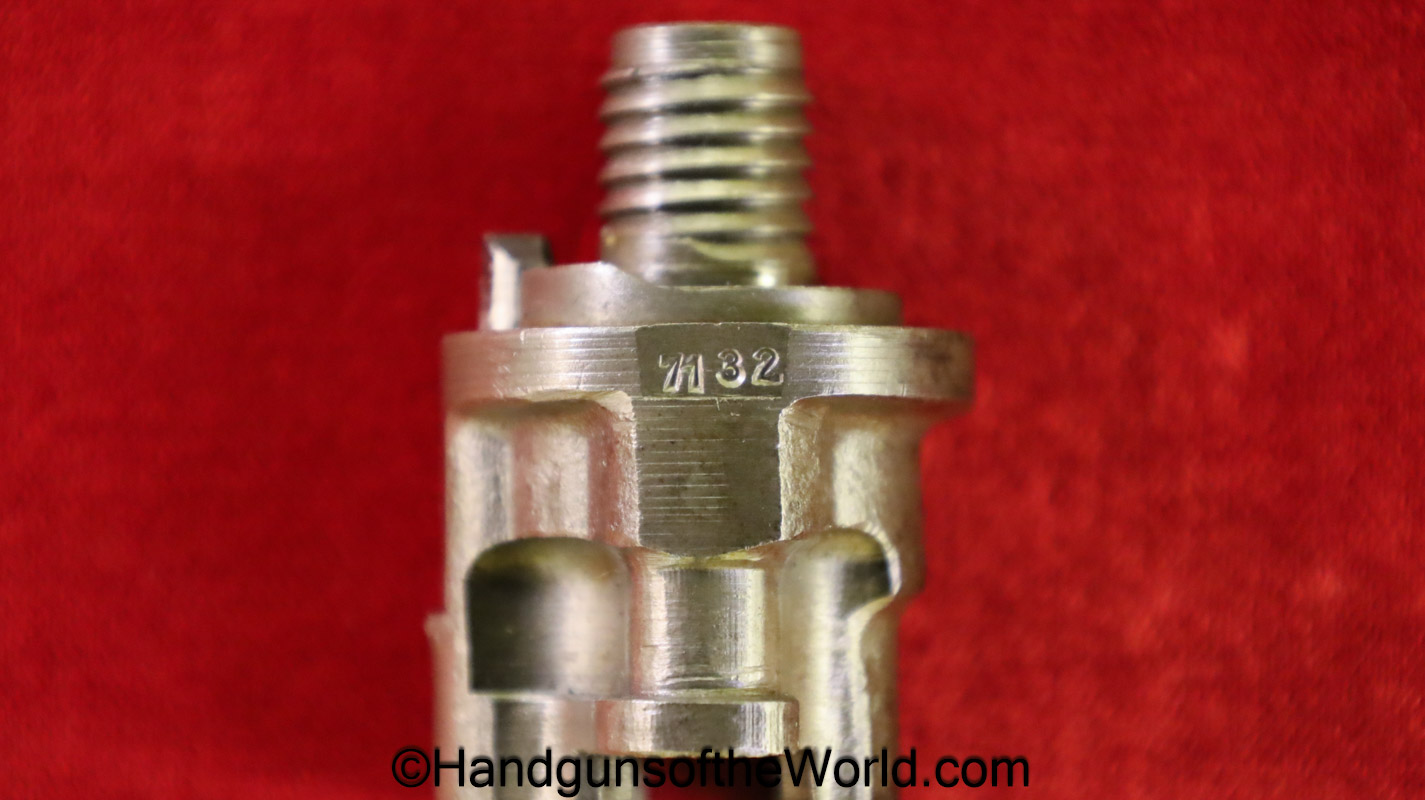 Gustloff-Werke 98K, BCD-4 on the chamber. This is lightly Waa Eagle H, German WWII proofed on the late war laminate stock. This has all matching serial numbers, and no importer markings. This has all phosphate parts but for the proper blue trigger guard housing. This retains about 95% phosphate with some browning showing on the chamber area. This has nice wood and an excellent bore.